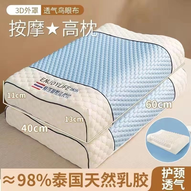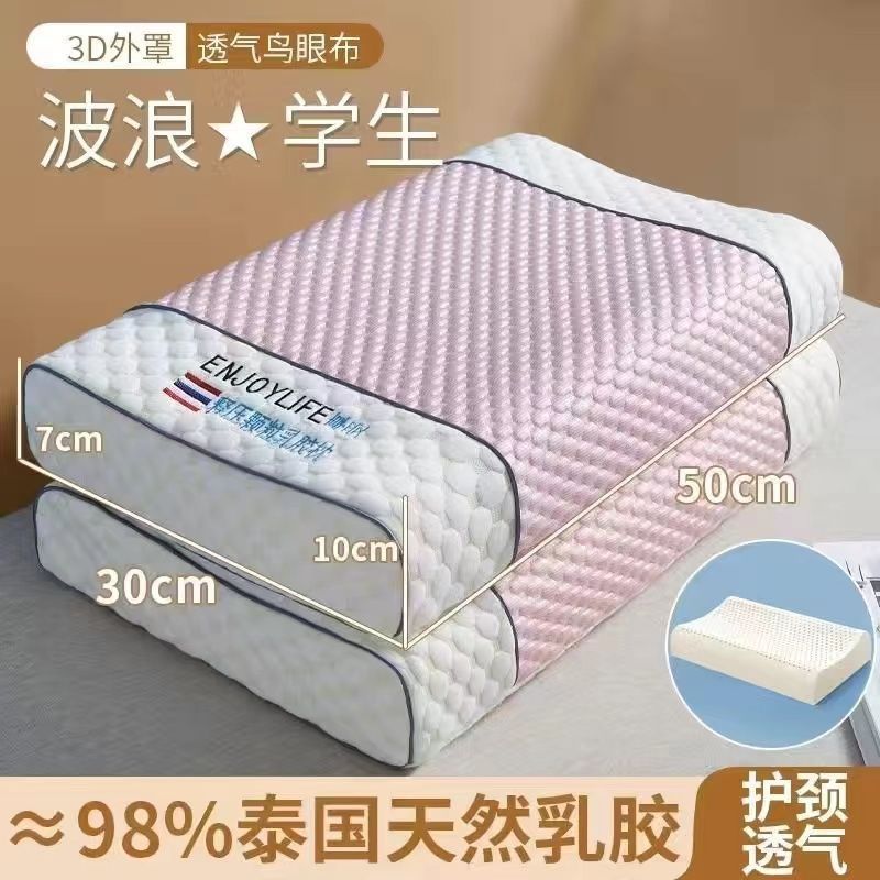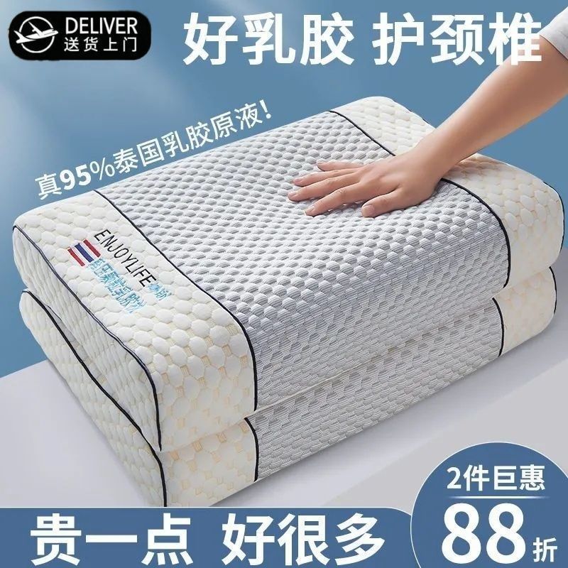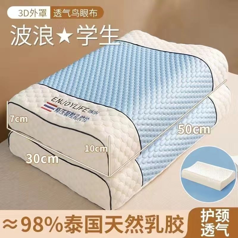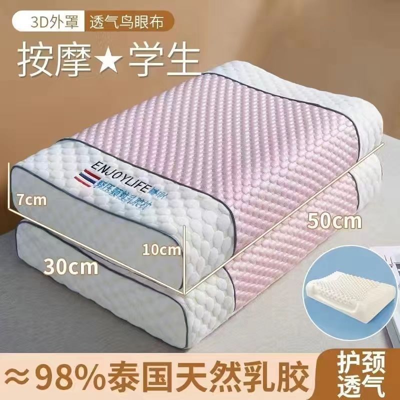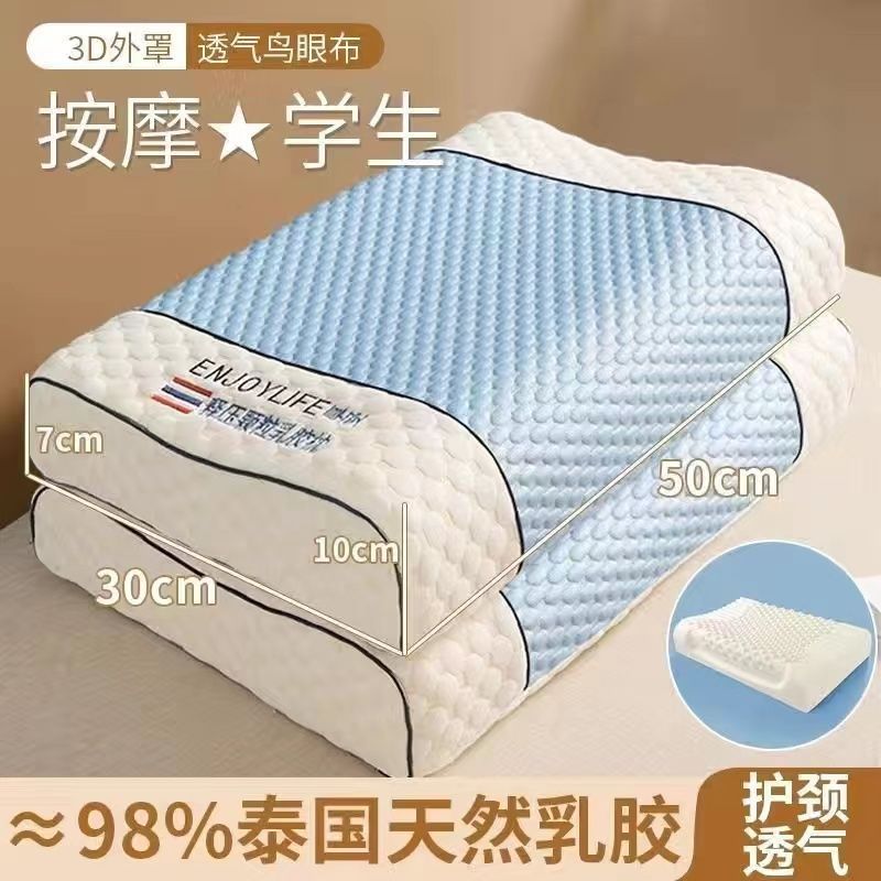 라텍스 베개, 정통 태국 천연 라텍스 베개, 베개 코어가 무너지지 않음, 가정용 목 베개 한 쌍