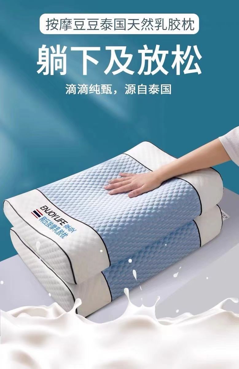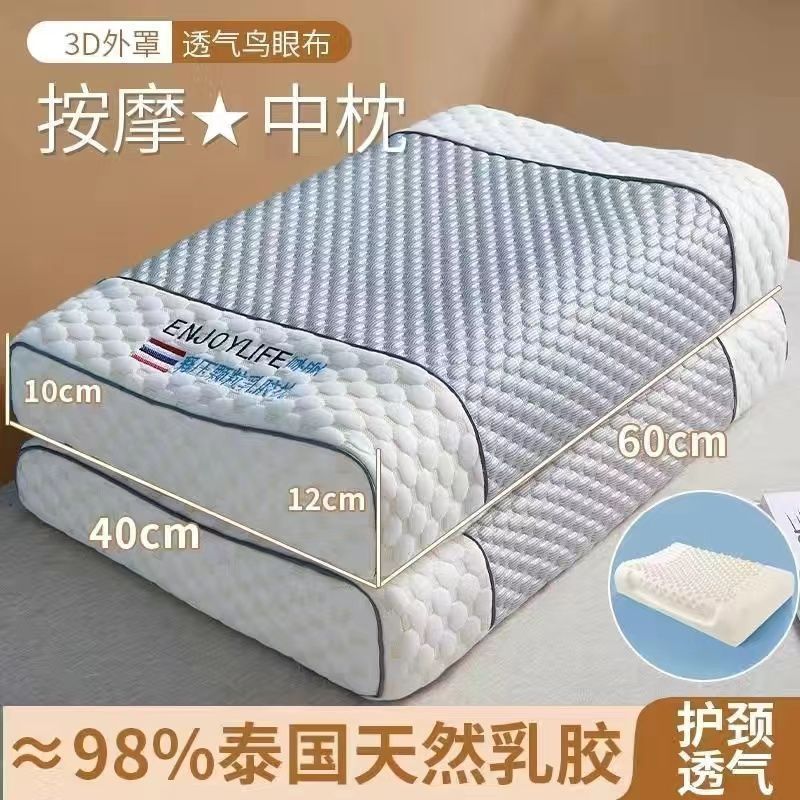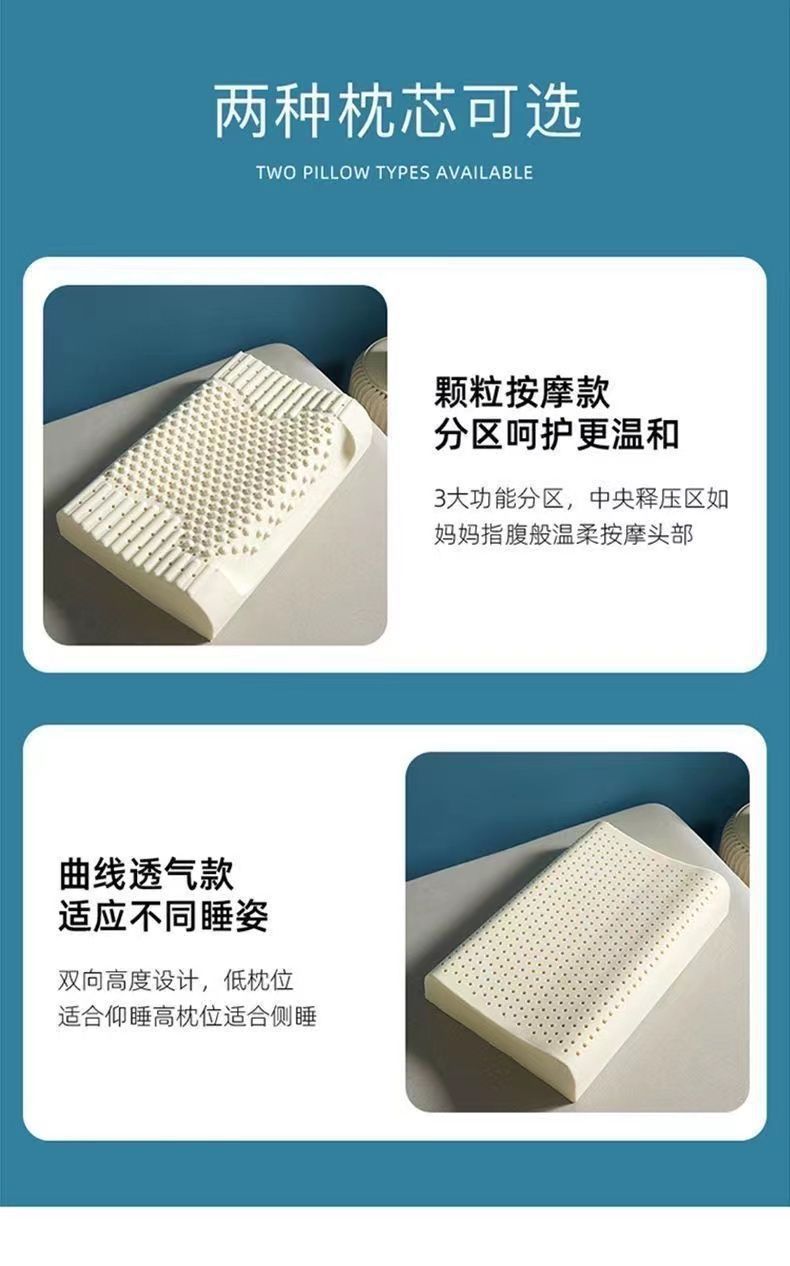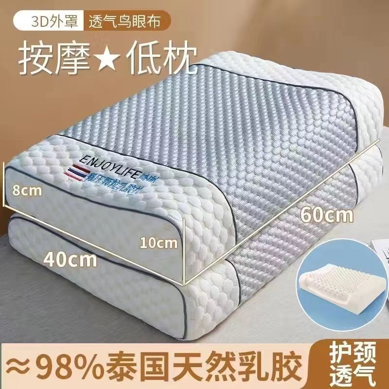 라텍스 베개, 정통 태국 천연 라텍스 베개, 베개 코어가 무너지지 않음, 가정용 목 베개 한 쌍