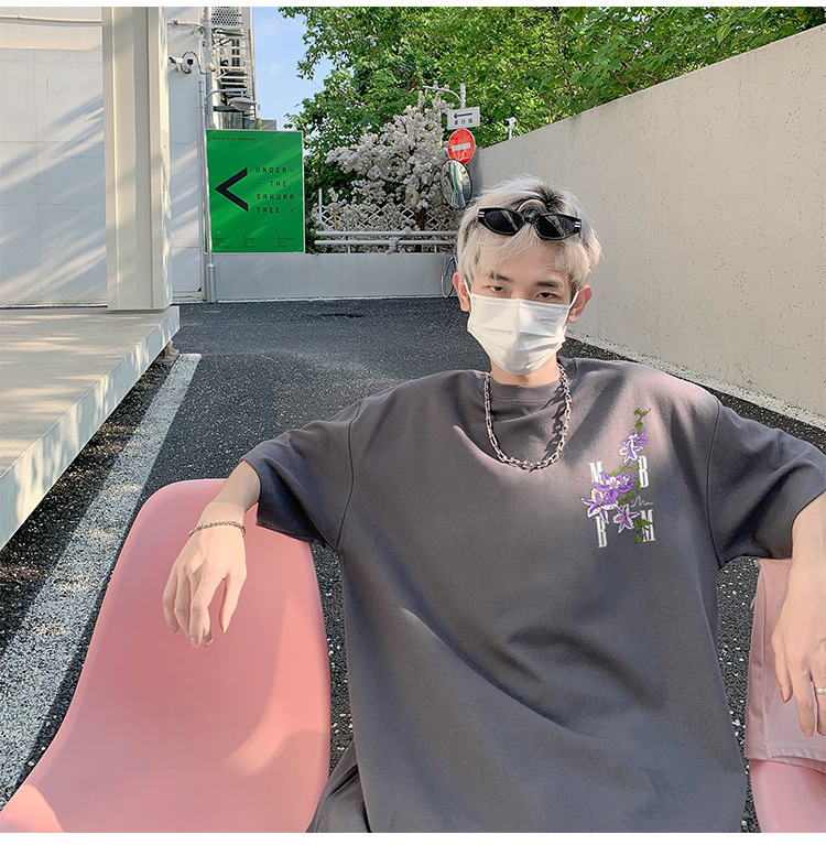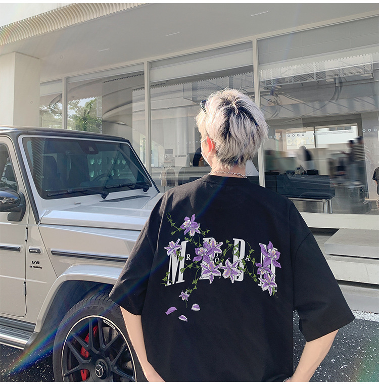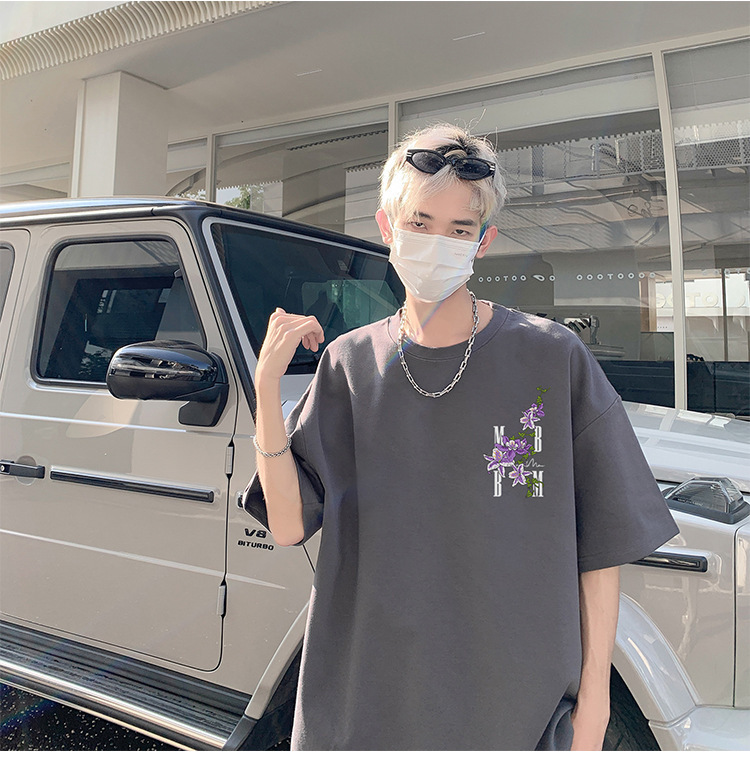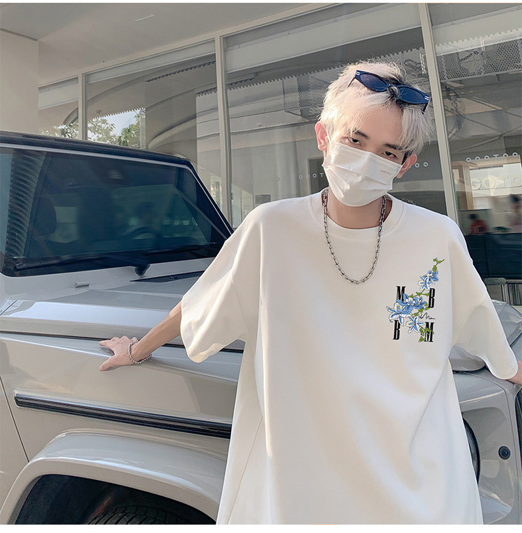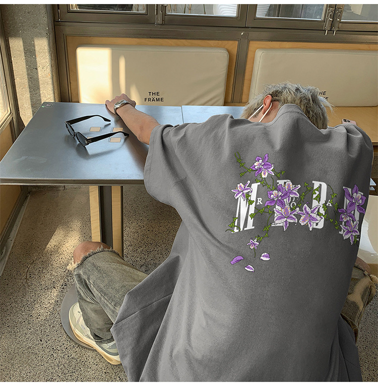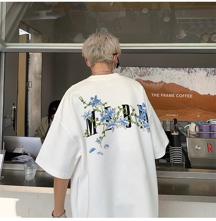 재고 있음 도매 여름 통기성 헤비급 순수 코튼 남성용 반팔 티셔츠 아메리칸 레트로 하이 스트리트 루즈 반소매 탑스토어 가기