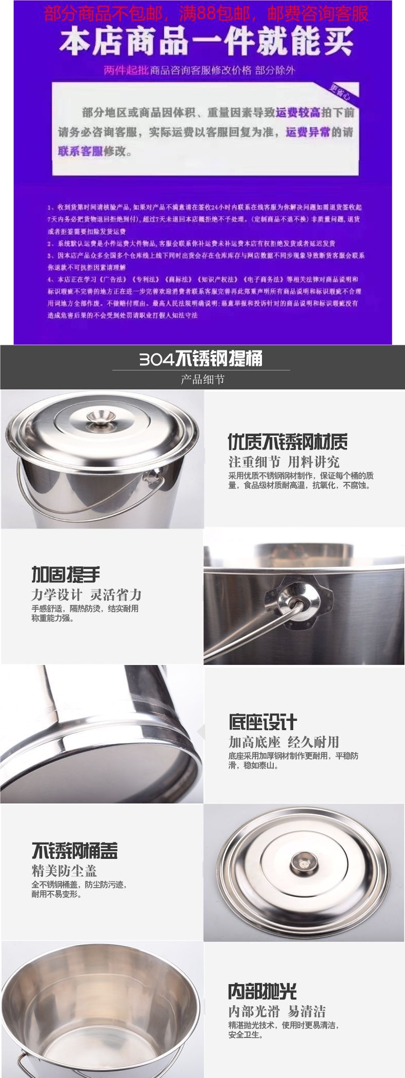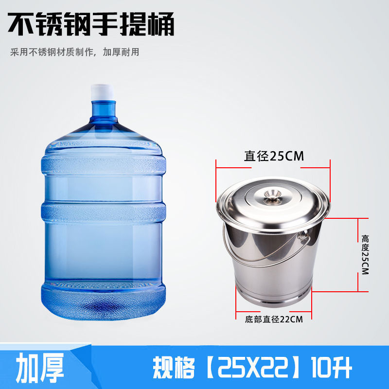 뚜껑이 있는 스테인레스 스틸 양동이 가정용 유치원 휴대용 원형 양동이 주방 레스토랑 대용량 특수 두꺼운 양동이 없음스토어 가기
