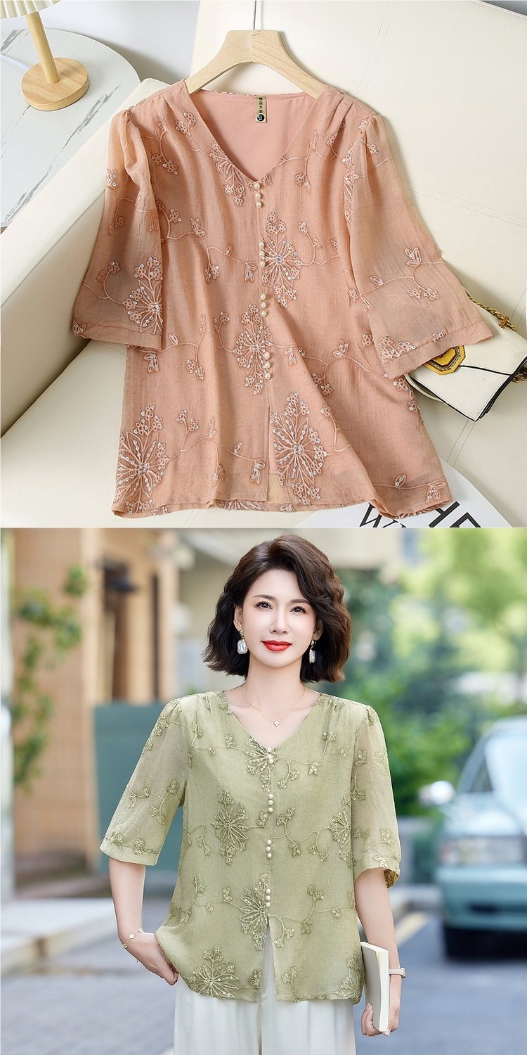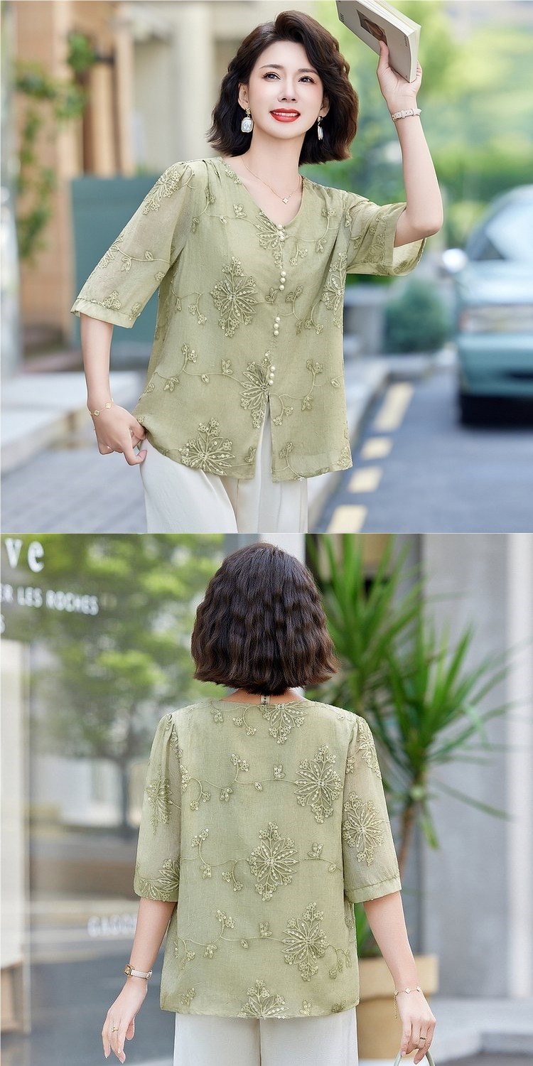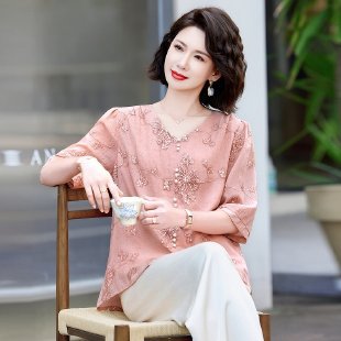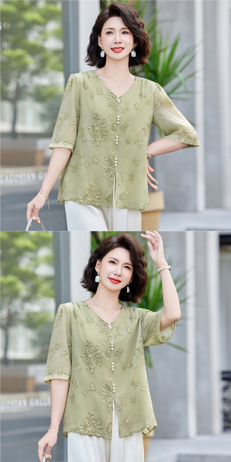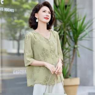 새로운 중국 스타일 어머니 여름 옷 2025 새로운 쉬폰 셔츠 중국 스타일 셔츠 중년 및 노인 여름 겸손하고 우아한 반팔 여성스토어 가기