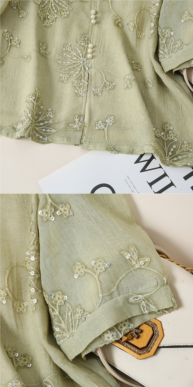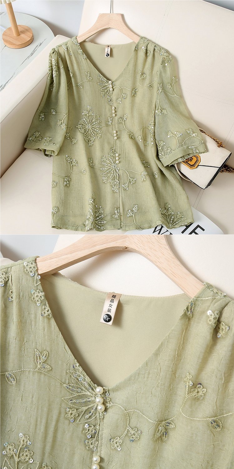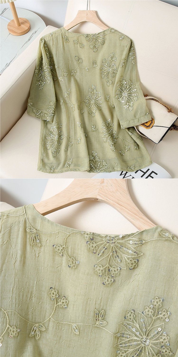 새로운 중국 스타일 어머니 여름 옷 2025 새로운 쉬폰 셔츠 중국 스타일 셔츠 중년 및 노인 여름 겸손하고 우아한 반팔 여성