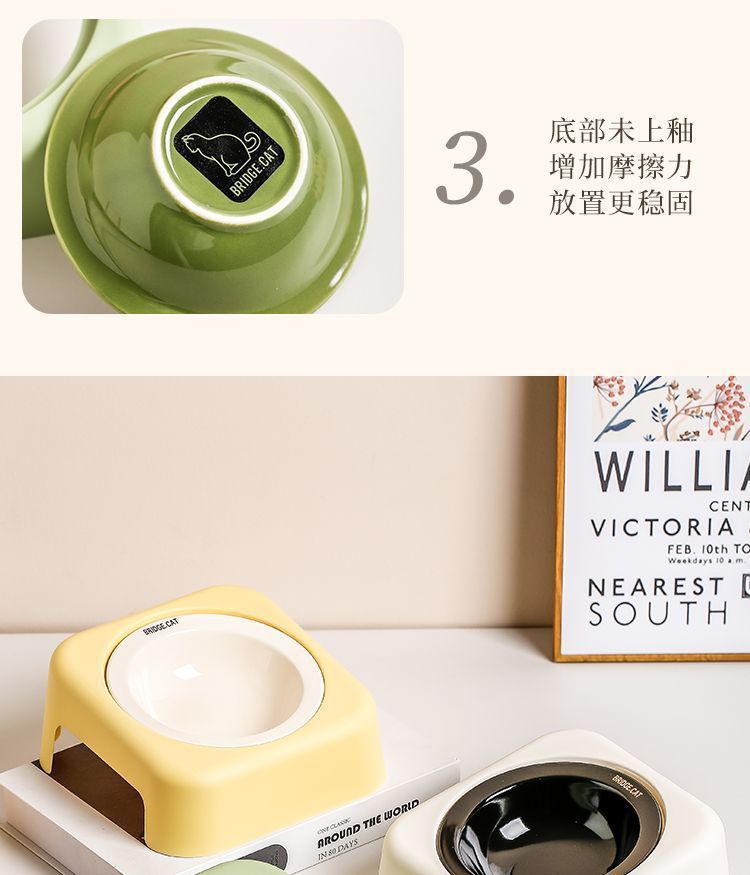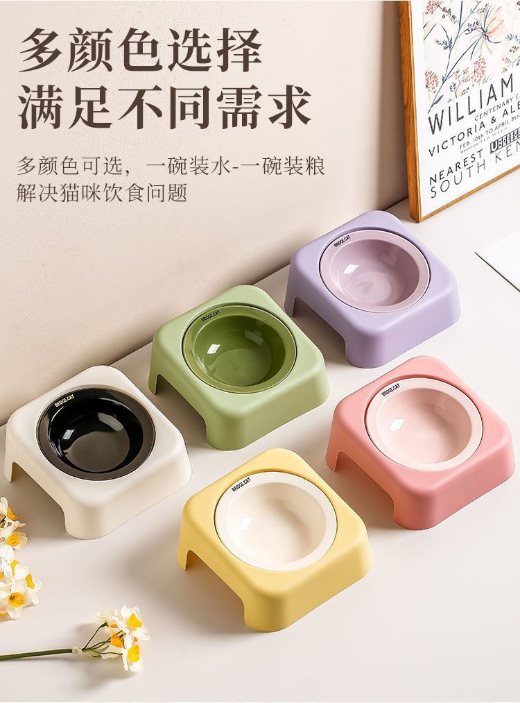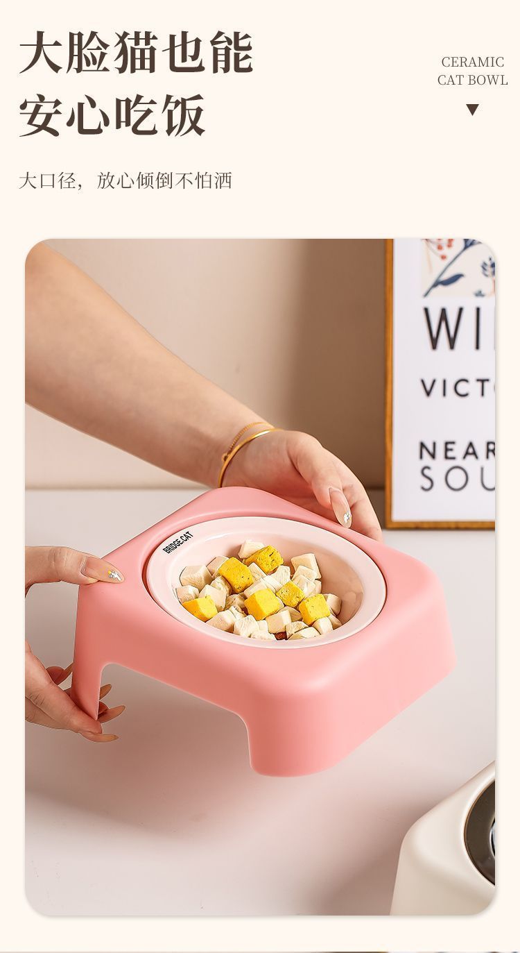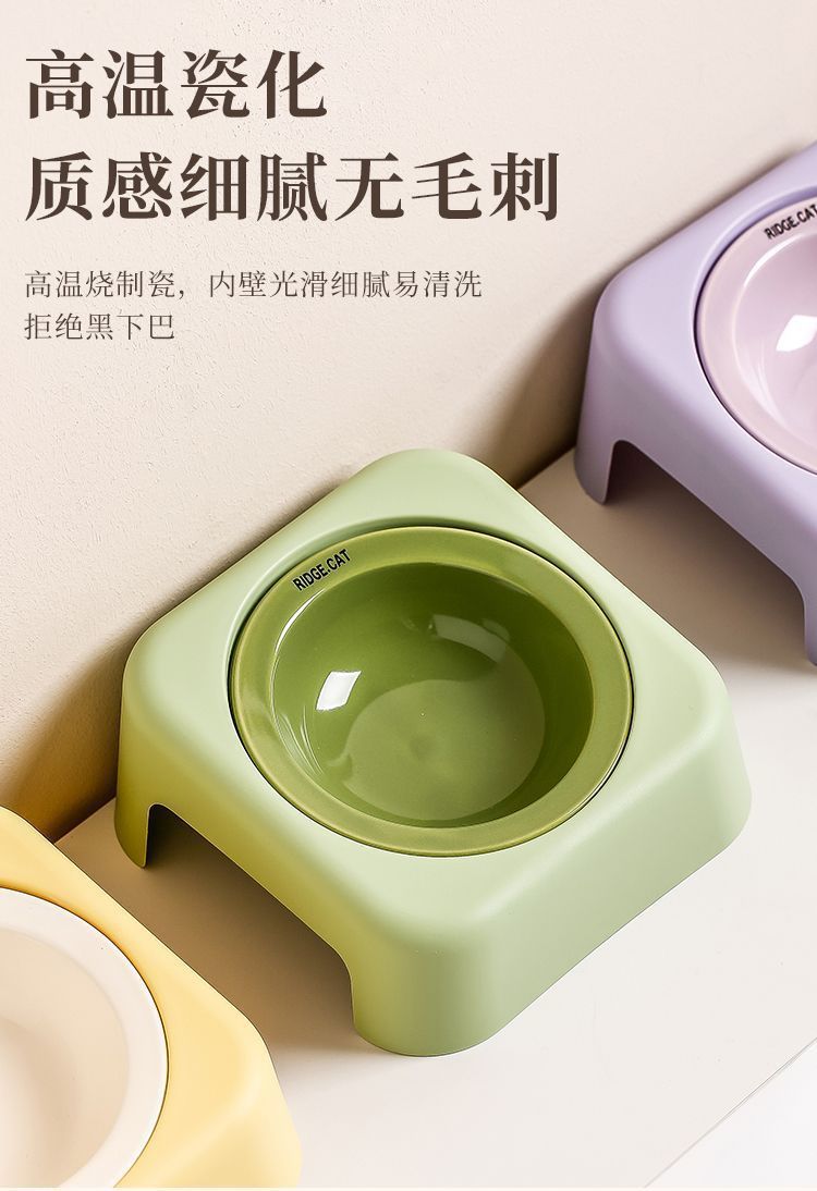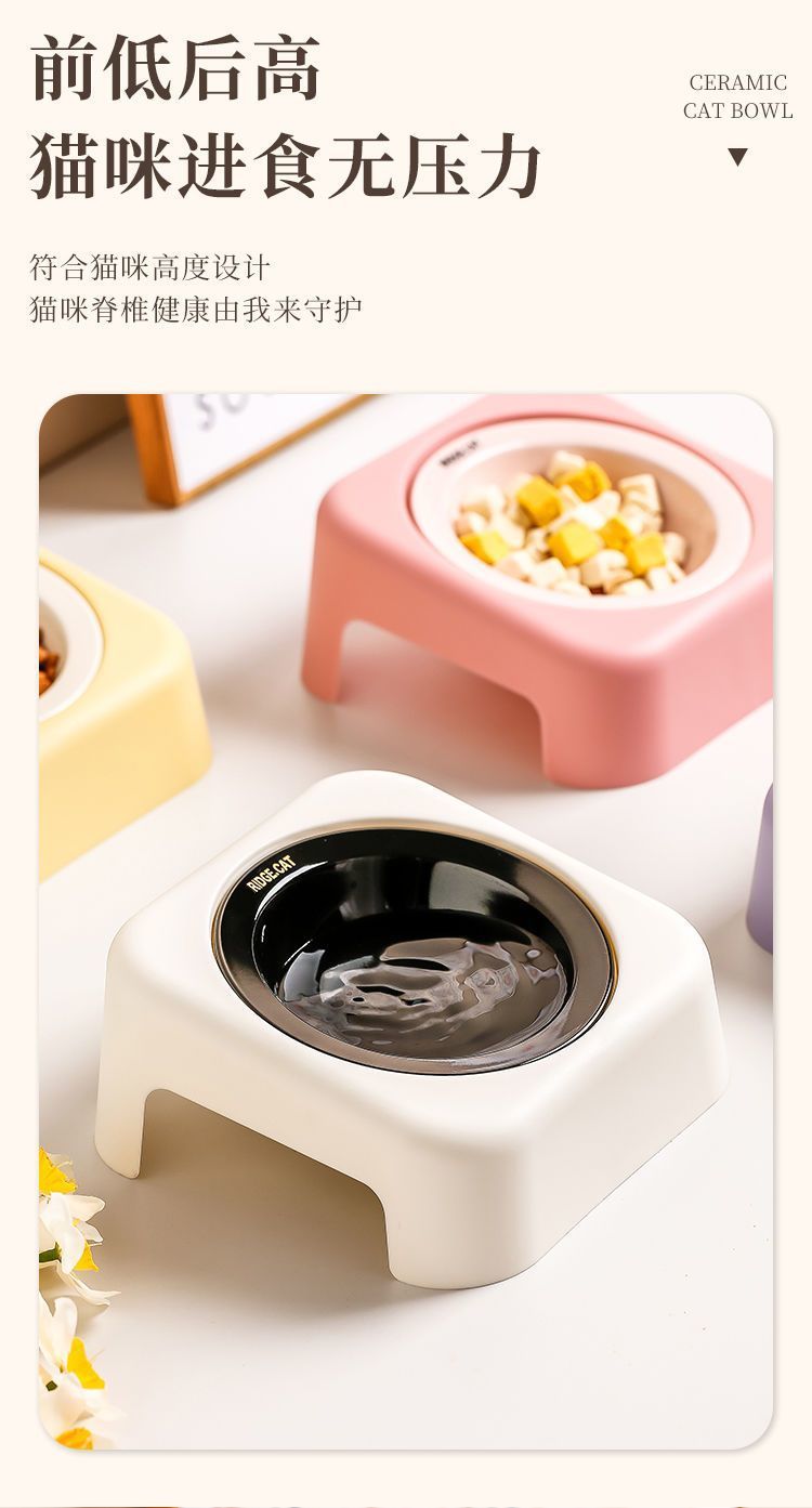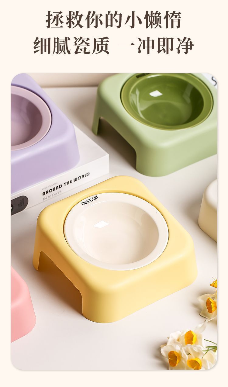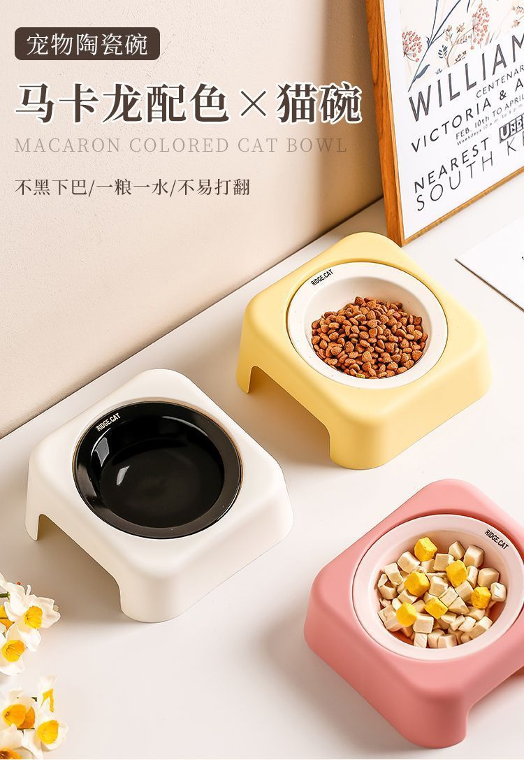 마카롱 고급 UFO 고양이 그릇 세라믹 밥 그릇 고양이 밥 그릇 철제 프레임 목 보호대 개밥 그릇 개스토어 가기