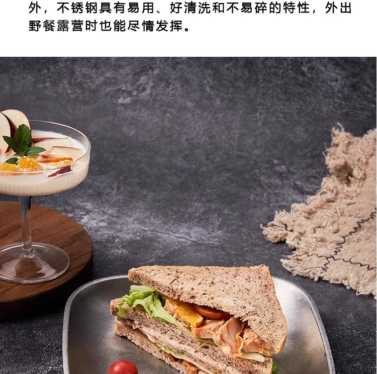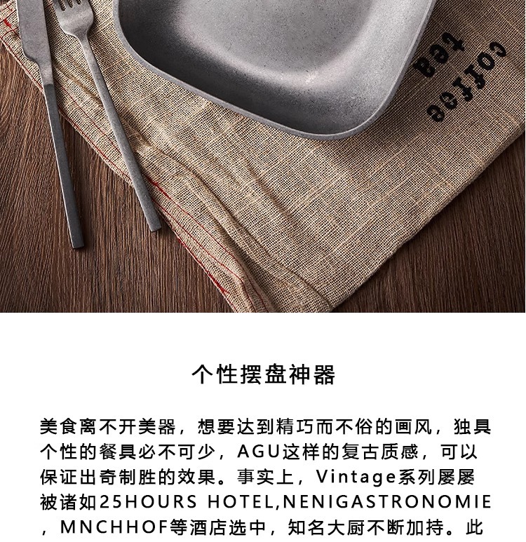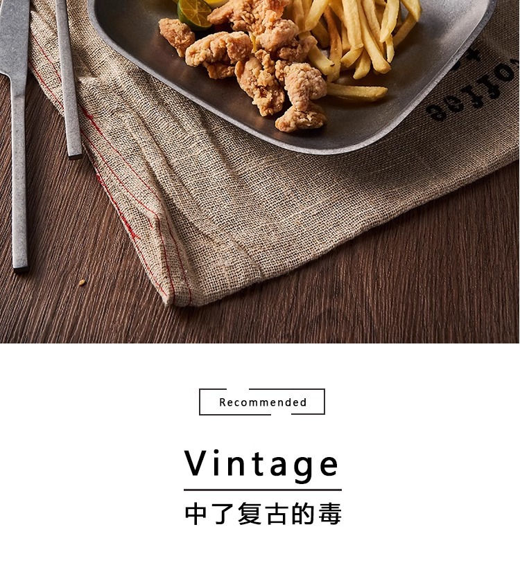 맞춤형 레트로 원형 접시, 얕은 접시, 스테이크 접시, 빈티지 눈꽃 회색 디저트 접시, 304 스테인리스 사각 접시 식기스토어 가기