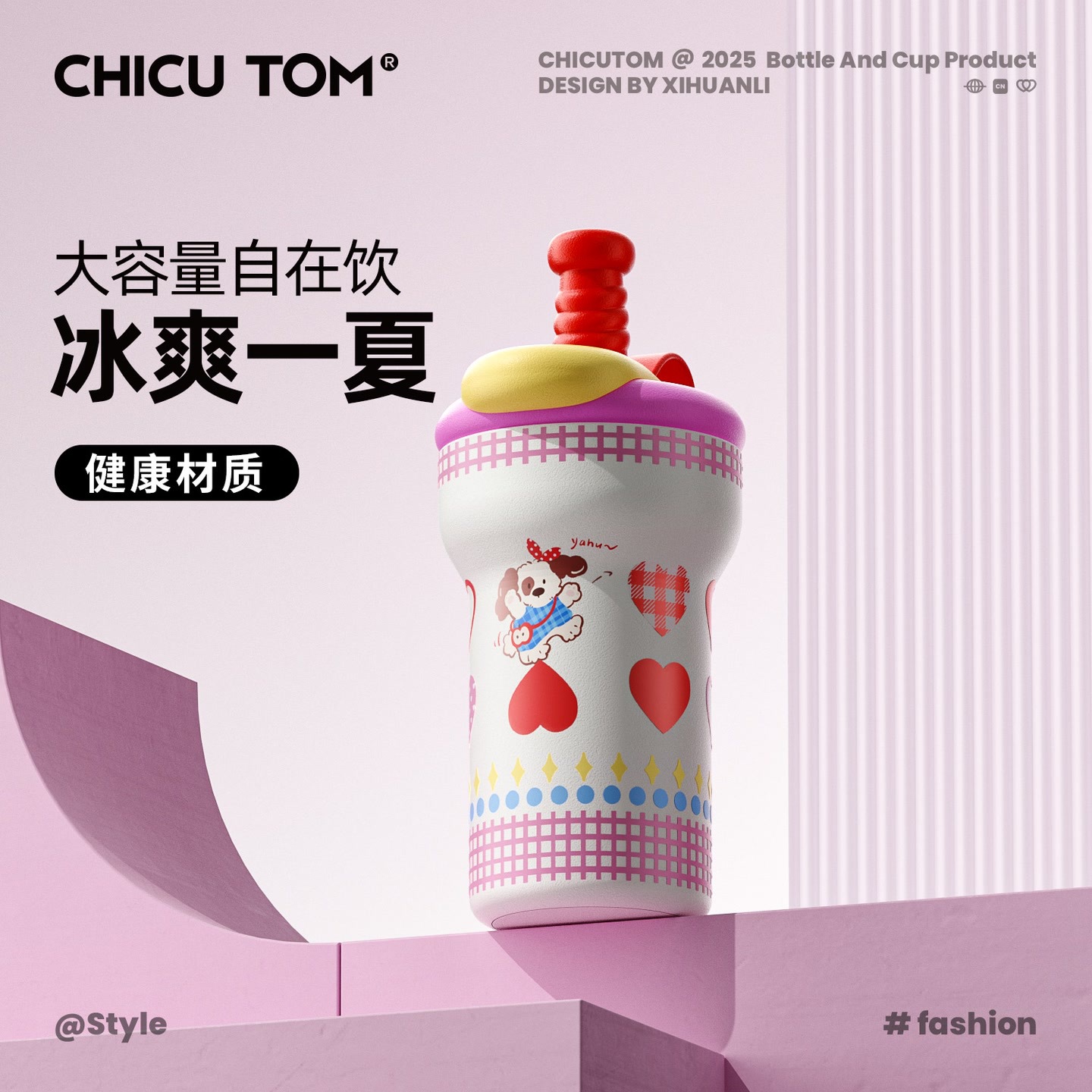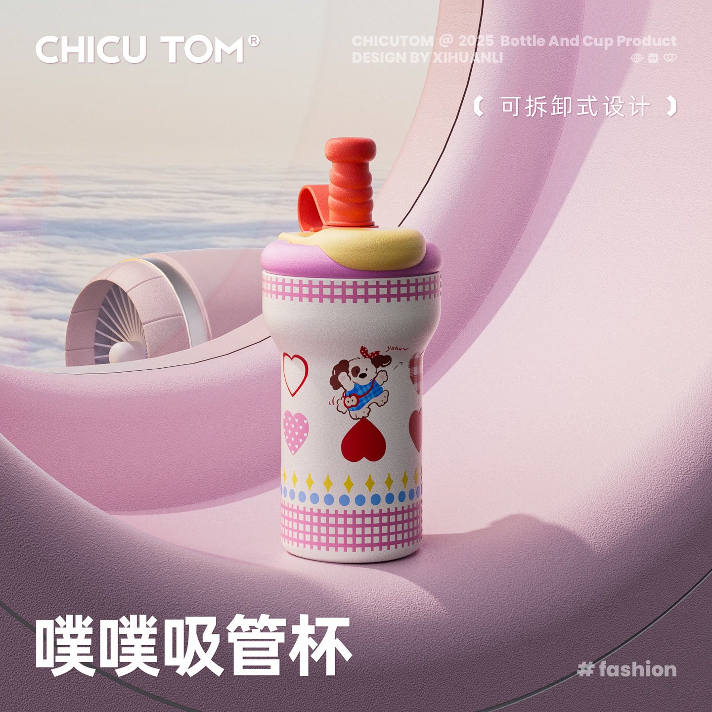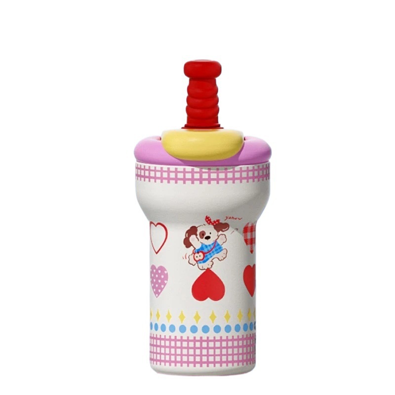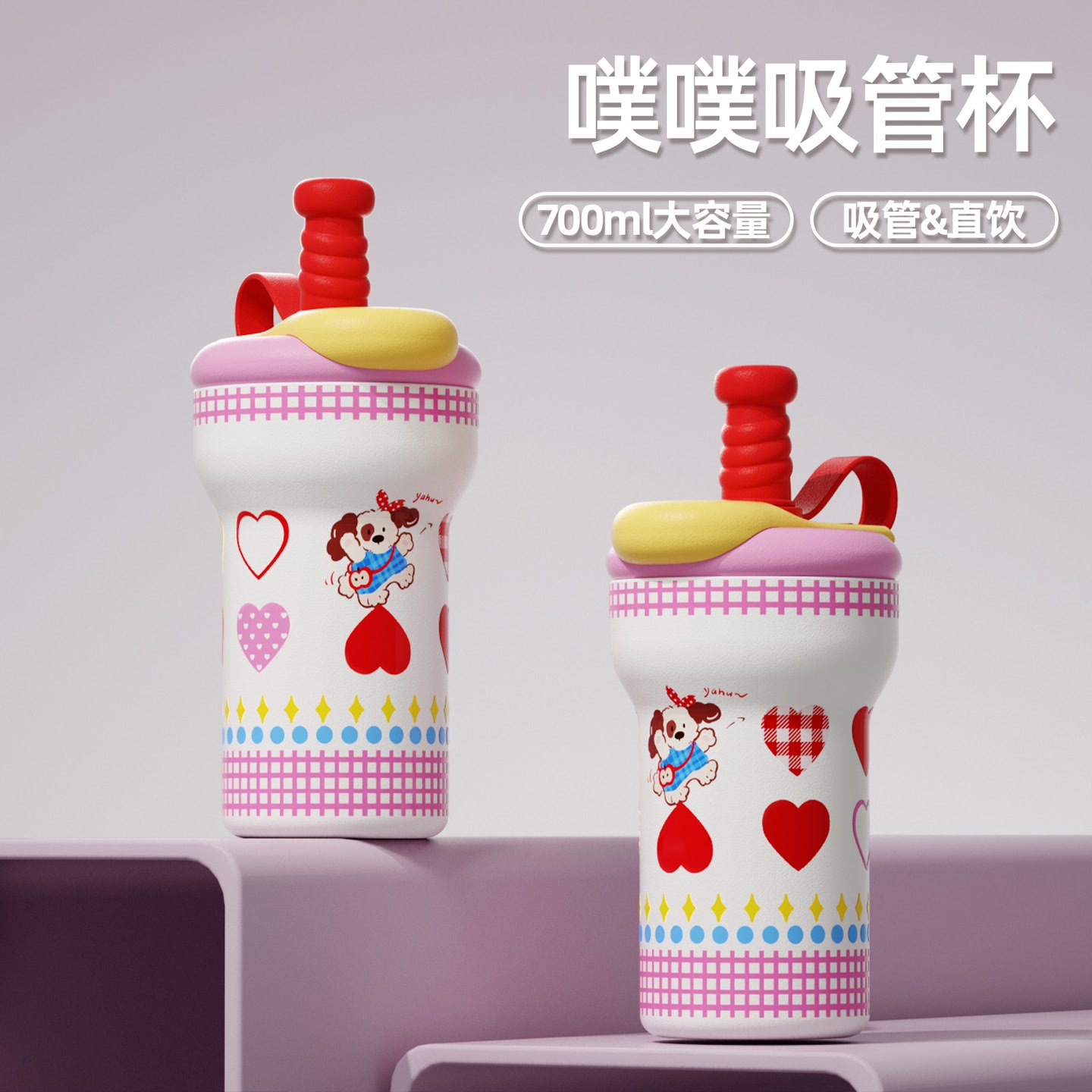 Qigutang Pupu 소녀용 보온병 컵, 고급스러운 물컵, 빨대, 대용량 만화 세라믹 학생 아이스 컵
