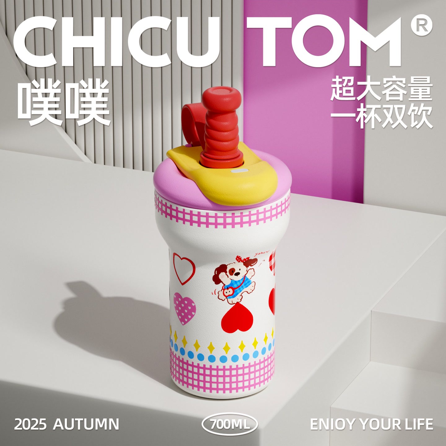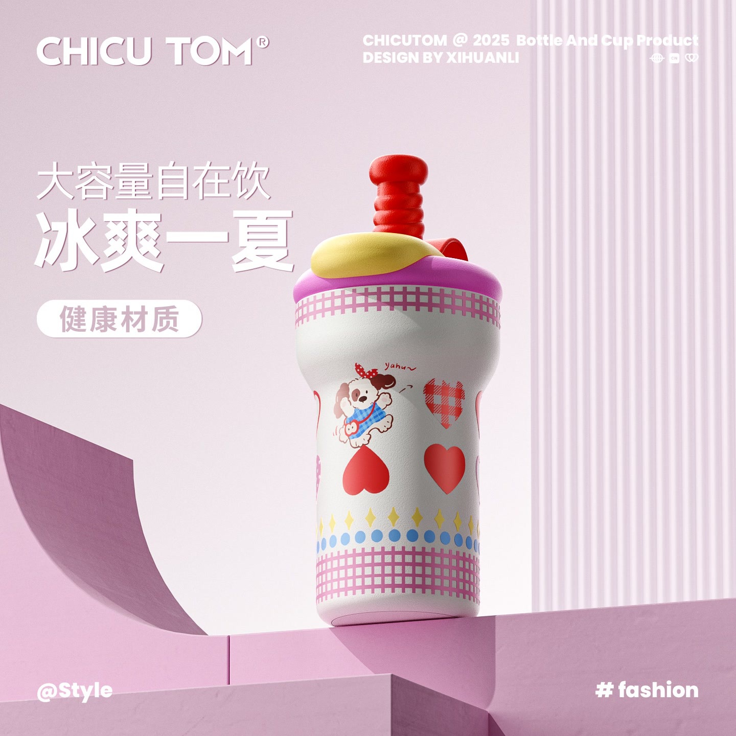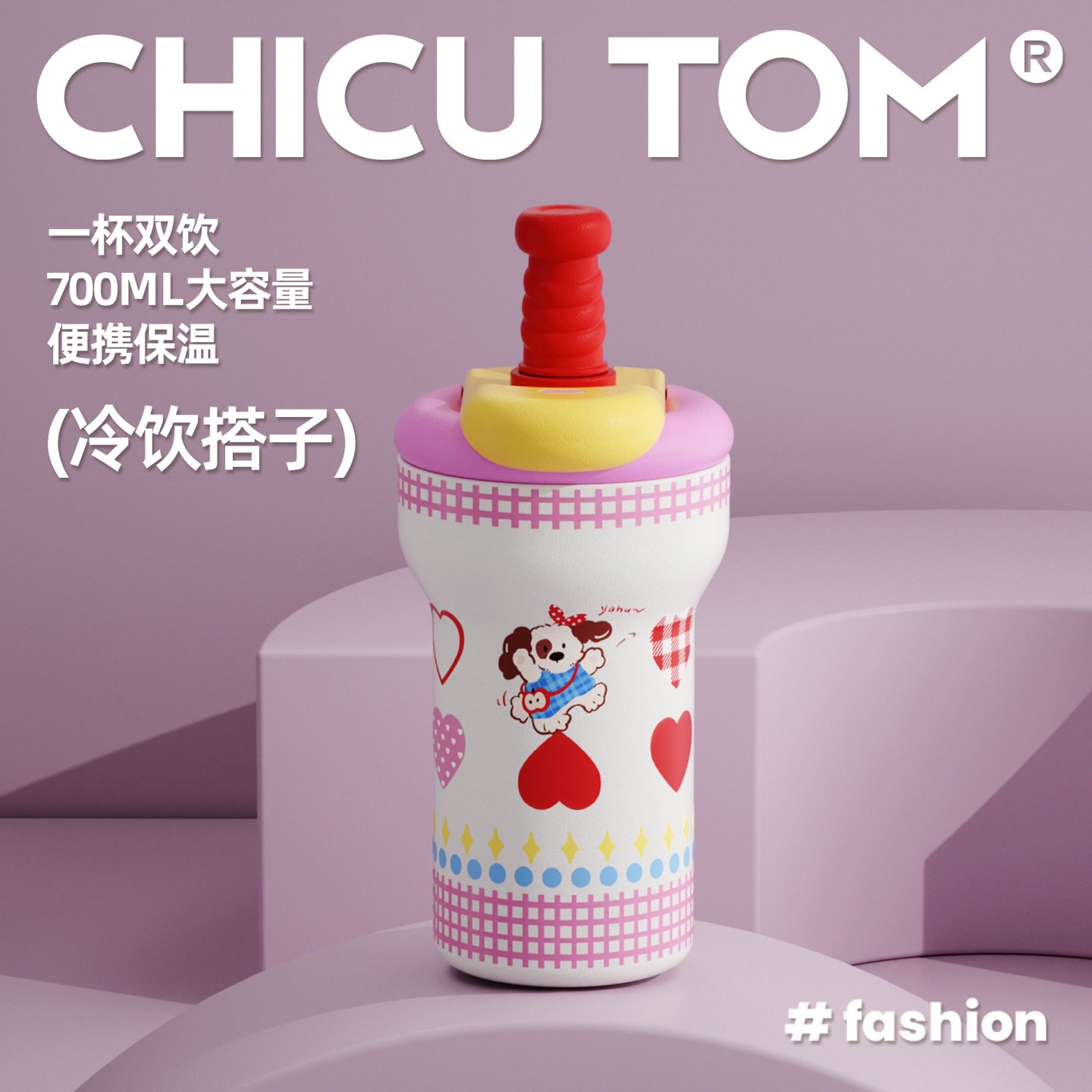 Qigutang Pupu 소녀용 보온병 컵, 고급스러운 물컵, 빨대, 대용량 만화 세라믹 학생 아이스 컵