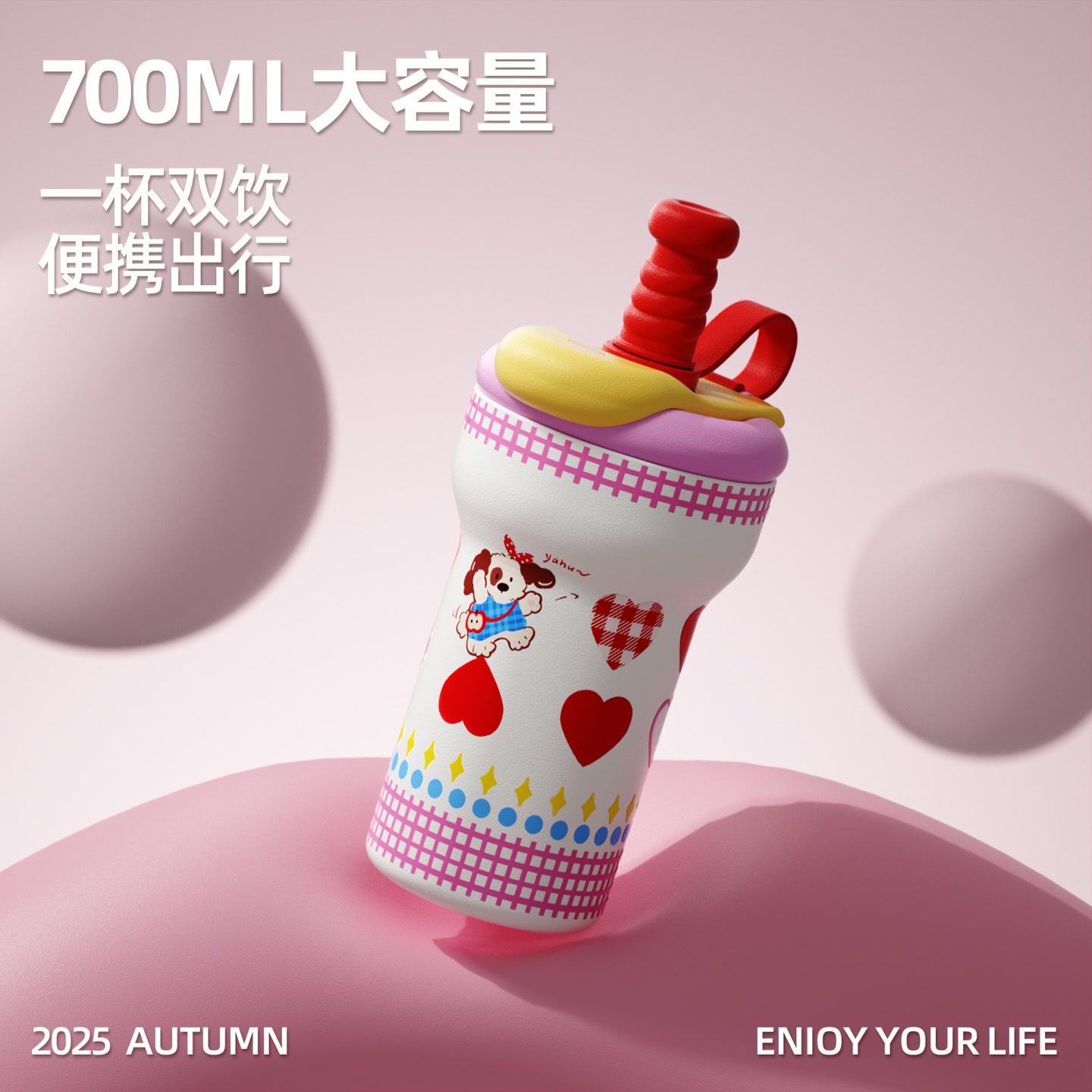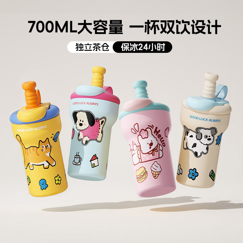 Qigutang Pupu 소녀용 보온병 컵, 고급스러운 물컵, 빨대, 대용량 만화 세라믹 학생 아이스 컵스토어 가기