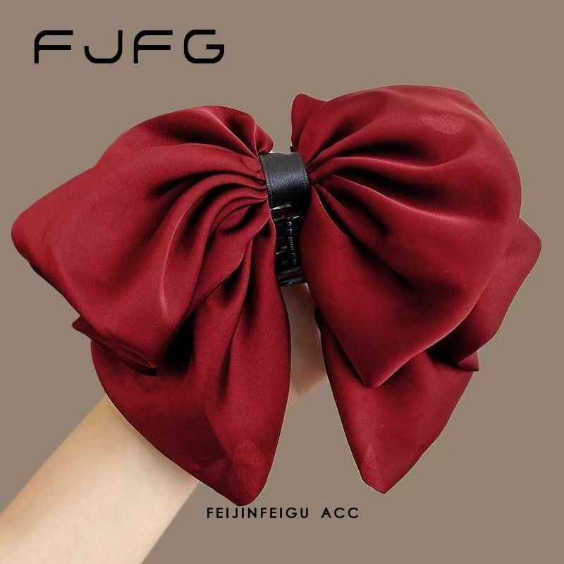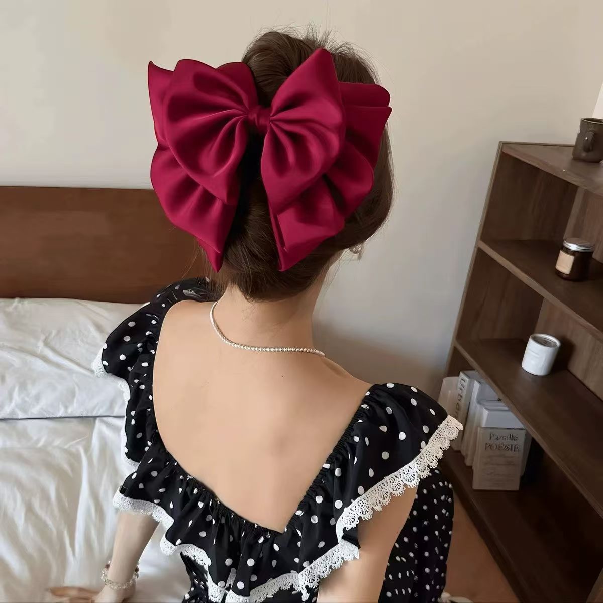 • 빨간 꽃봉오리 리본 빅사이즈 집게핀 6cm