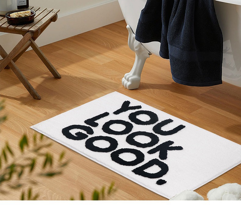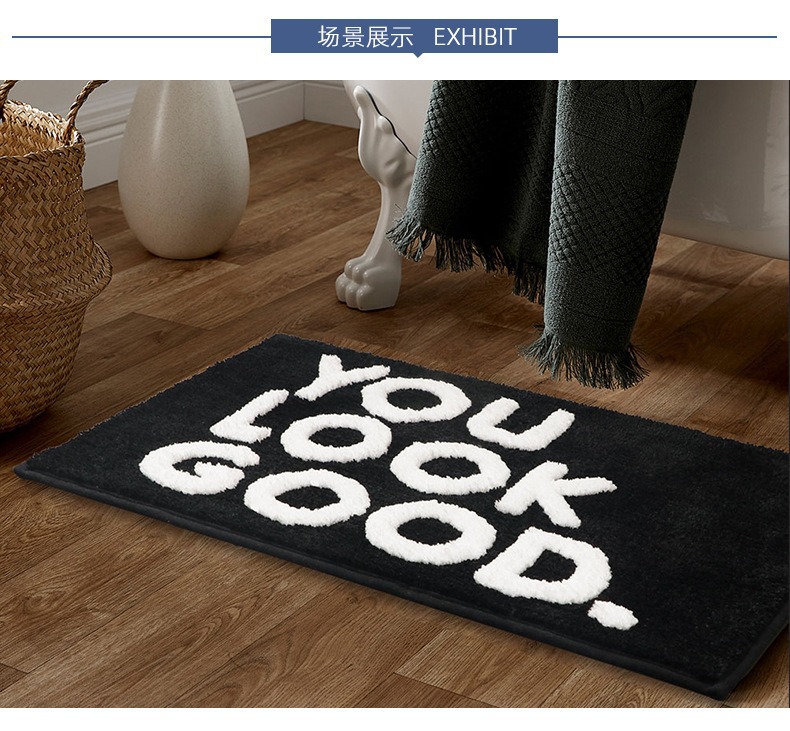 만화 영어 인쇄 문자 모조 캐시미어 카펫 흡수성 및 먼지 방지 욕실 문 주방 화장실 홈 카펫스토어 가기