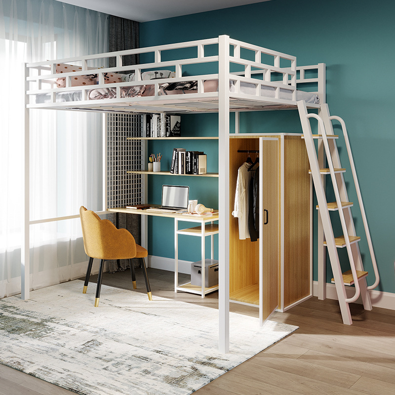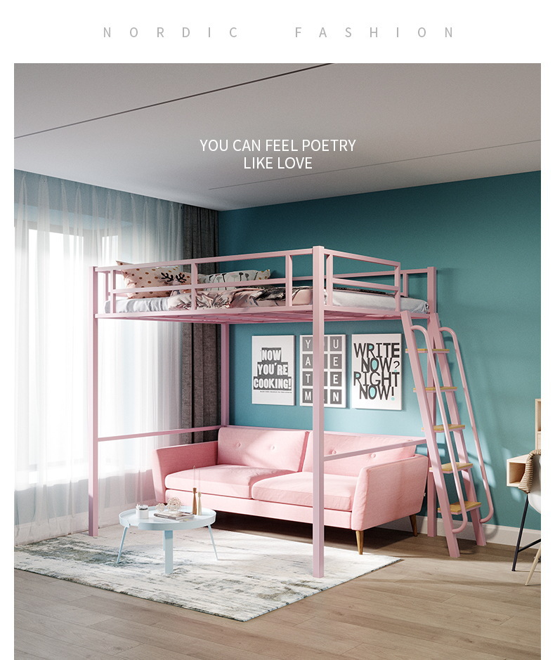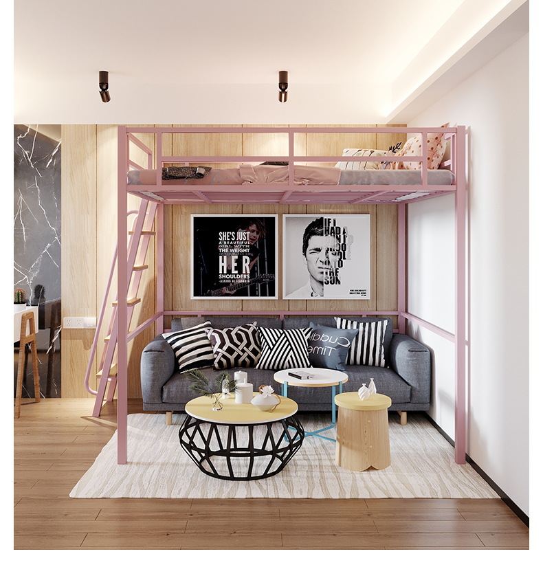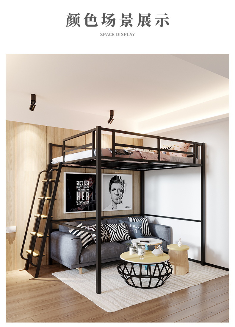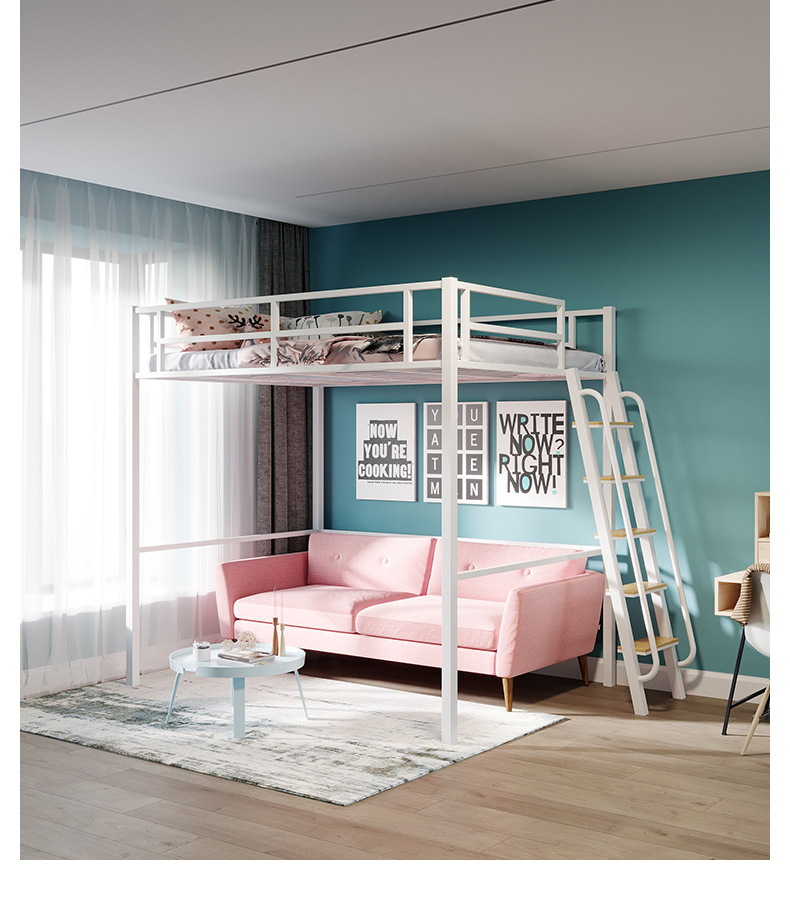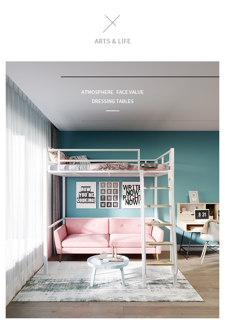 [가구 공장 가공 및 맞춤형] 북유럽 심플한 철제 로프트 침대 홈 침실 상단 침대 및 하단 테이블 철제 프레임 침대
