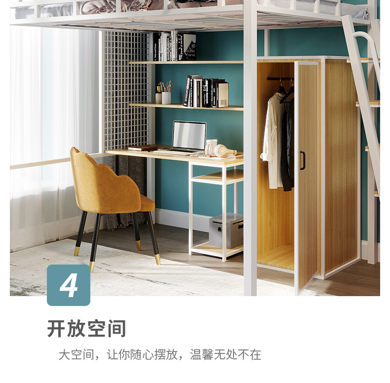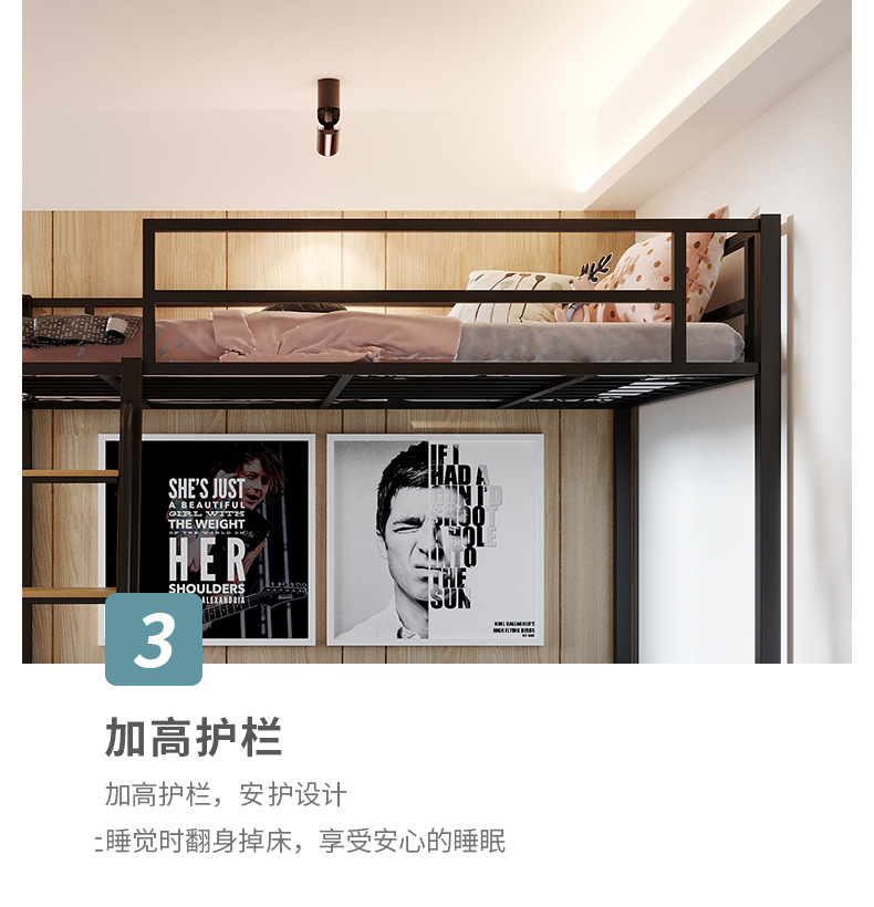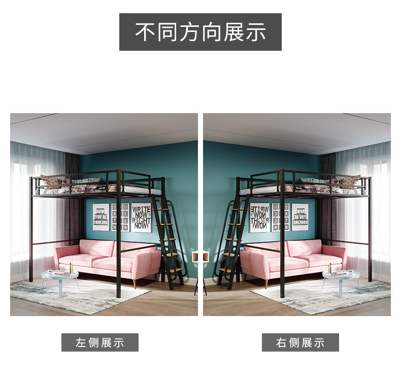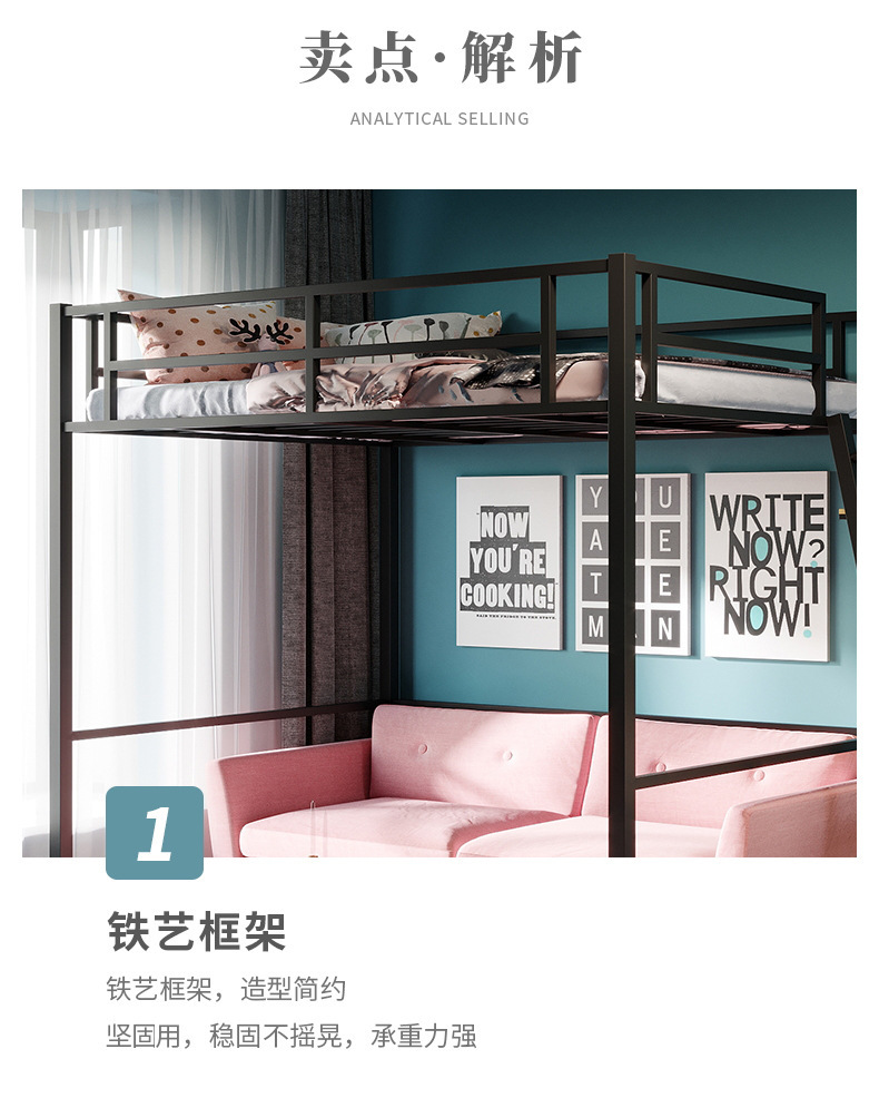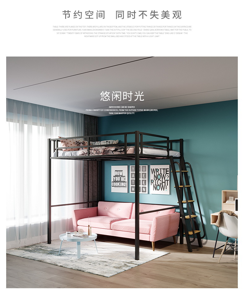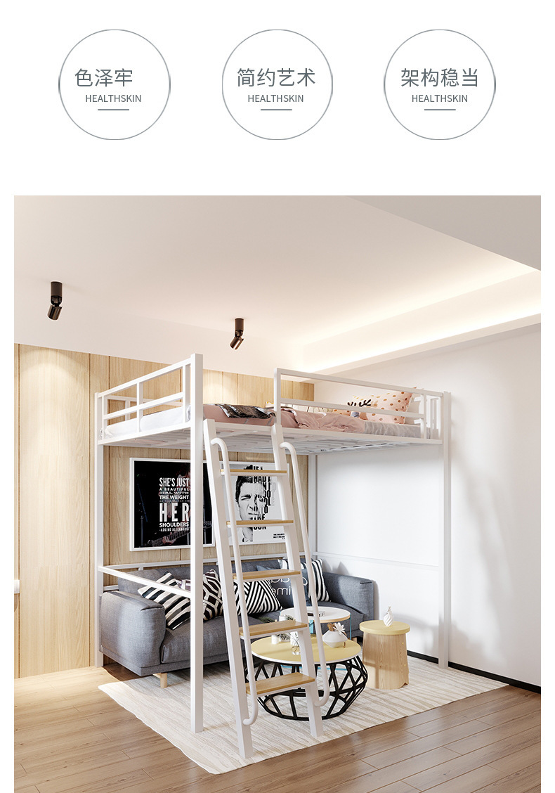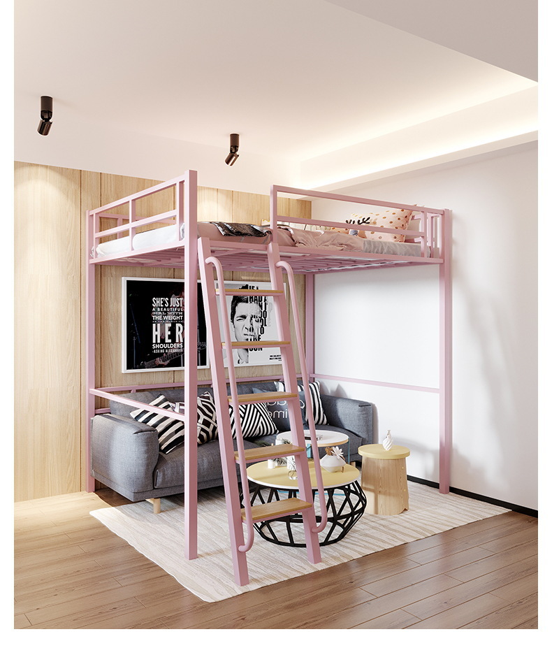 [가구 공장 가공 및 맞춤형] 북유럽 심플한 철제 로프트 침대 홈 침실 상단 침대 및 하단 테이블 철제 프레임 침대