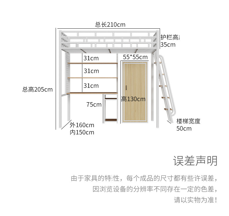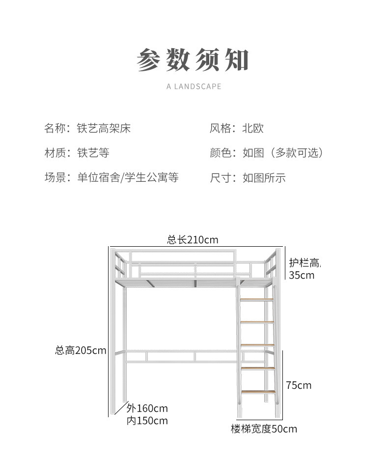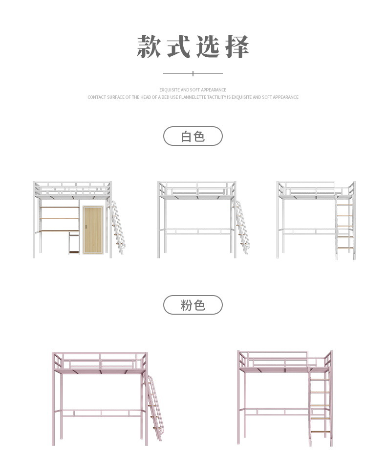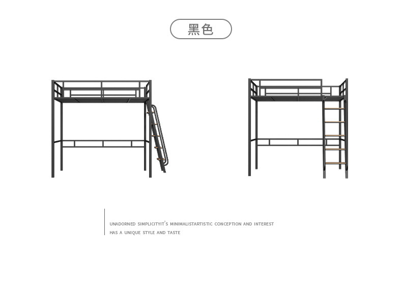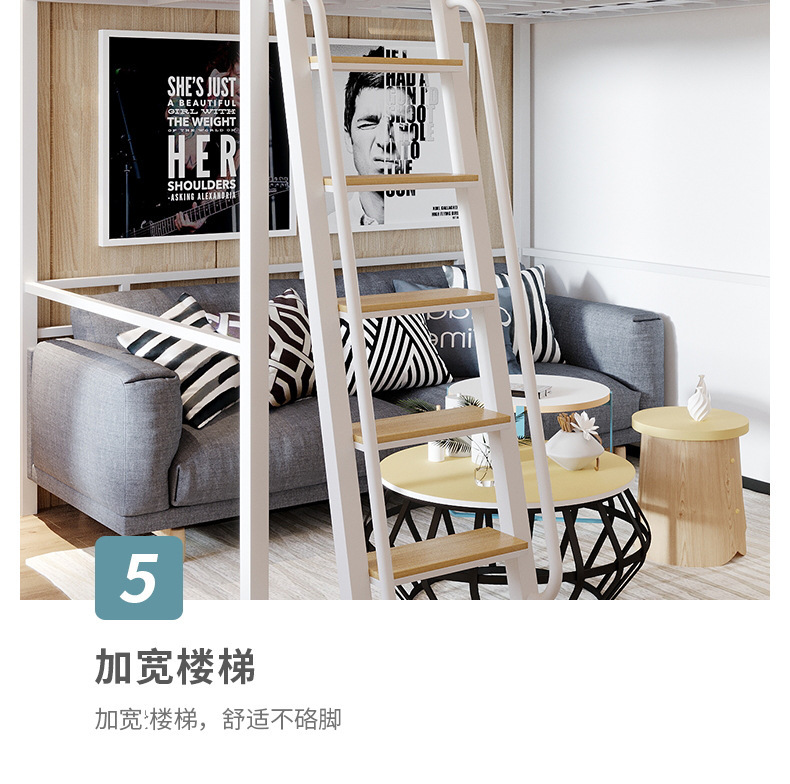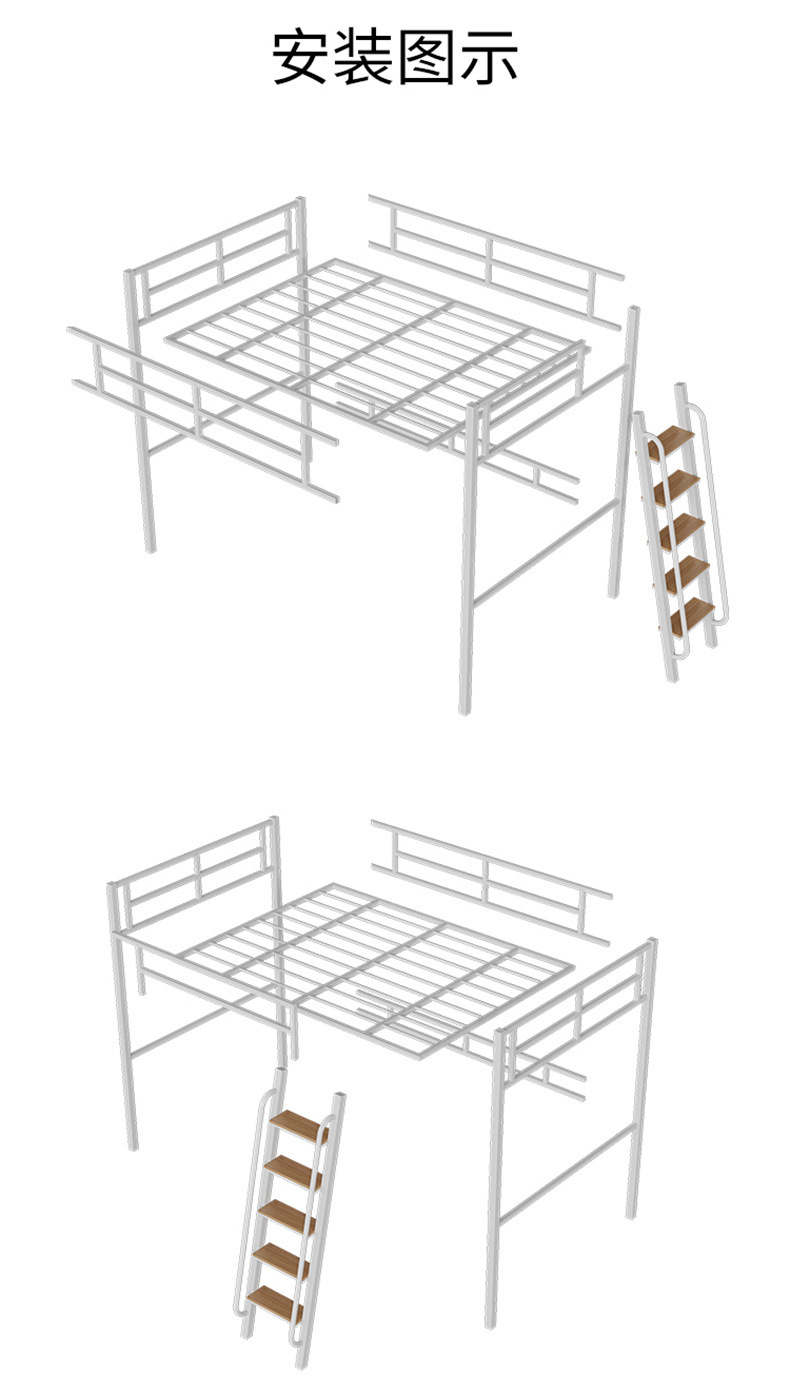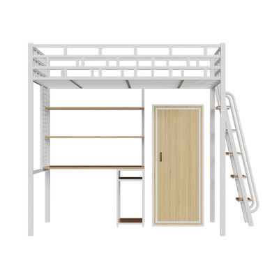 [가구 공장 가공 및 맞춤형] 북유럽 심플한 철제 로프트 침대 홈 침실 상단 침대 및 하단 테이블 철제 프레임 침대