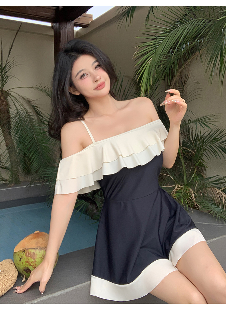 뚱뚱한 여자를 위한 수영복, 스커트 스타일 원숄더 섹시 슬리밍 플러스 사이즈 뚱뚱한 mm 살을 커버하는 온천 휴가 수영복