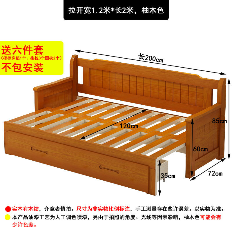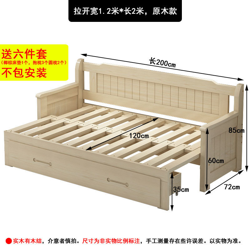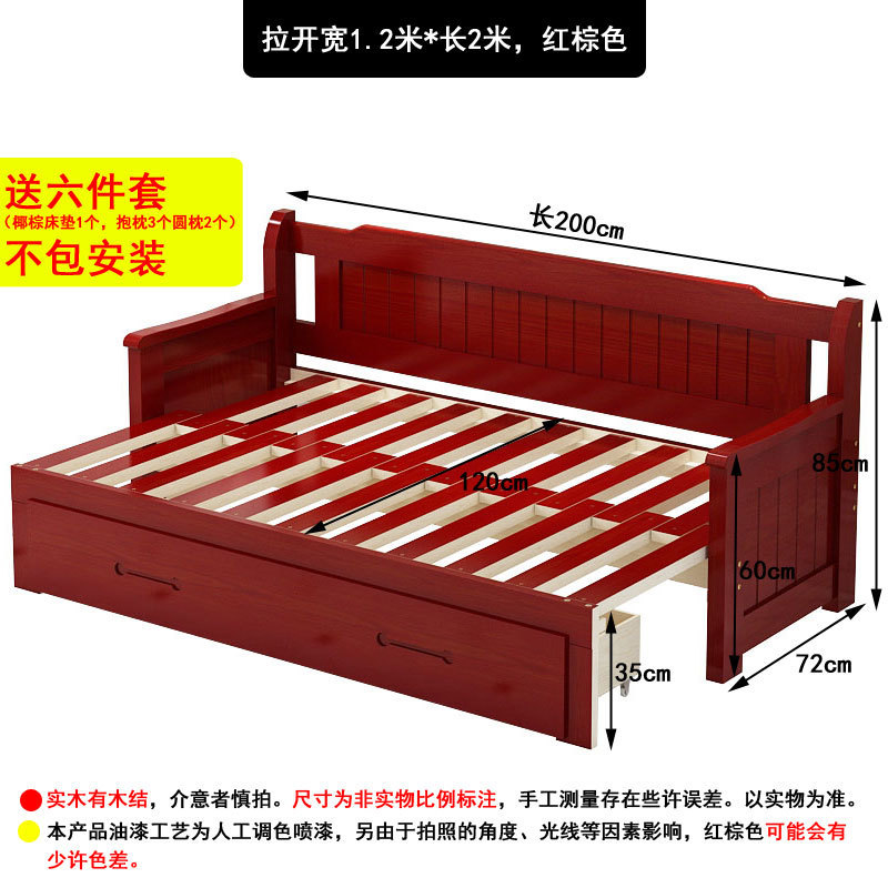 작은 아파트 더블 소파 침대 폭 1.5 거실 가정용 3인용 단단한 나무 접이식 이중 용도 1.2m 무료 배송