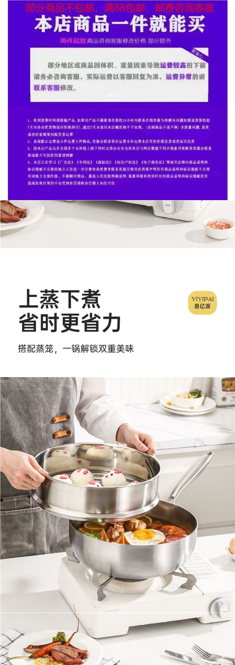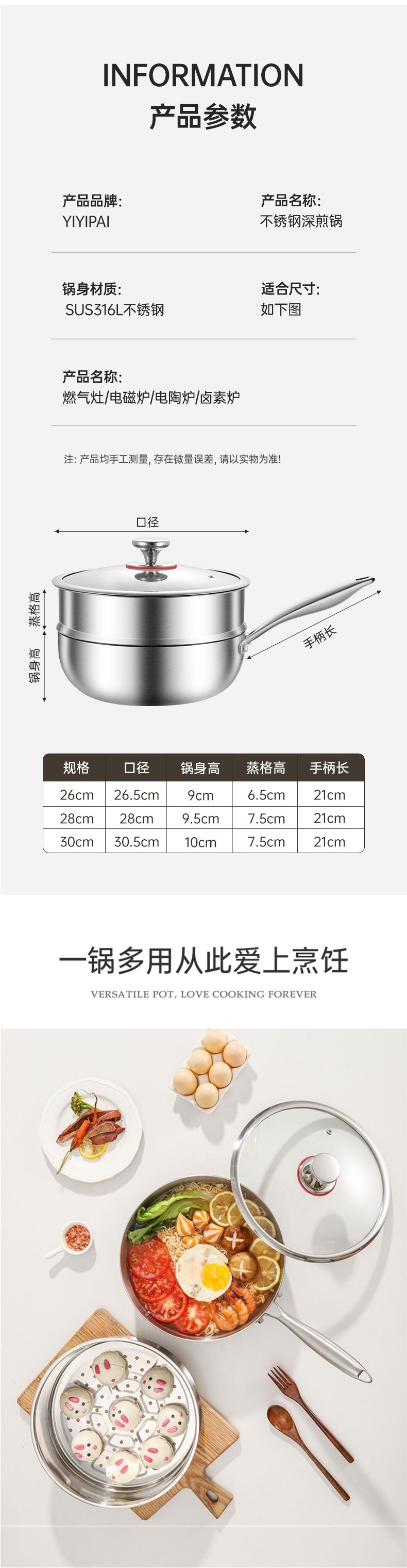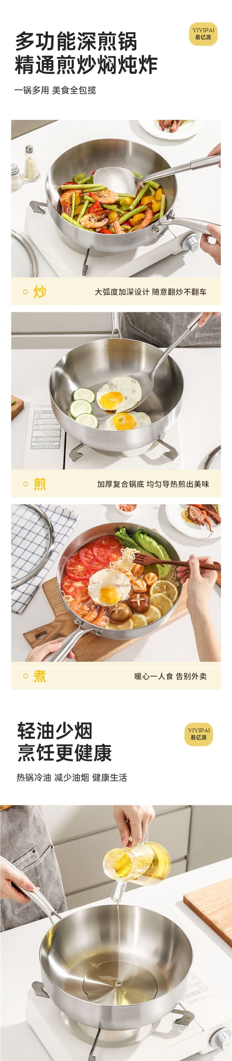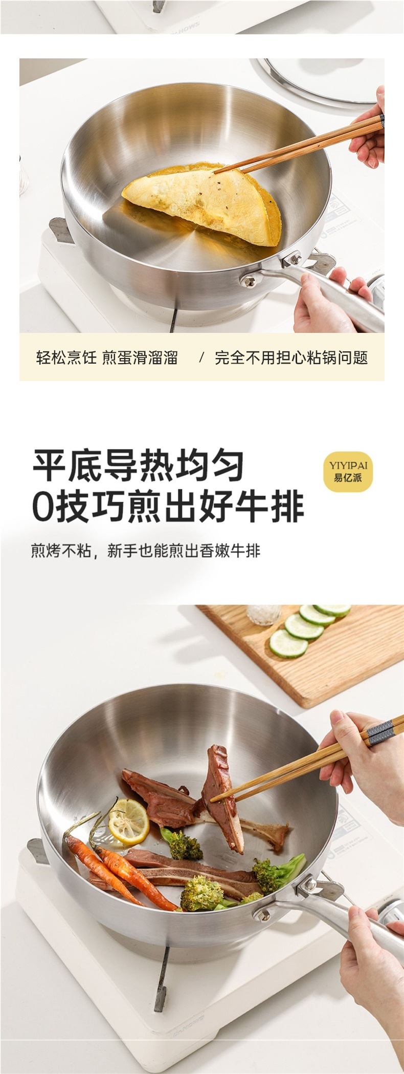 식품 등급 두꺼운 316 스테인레스 스틸 평평한 바닥 냄비 붙지 않는 가정용 전자레인지 코팅되지 않은 깊은 요리 냄비