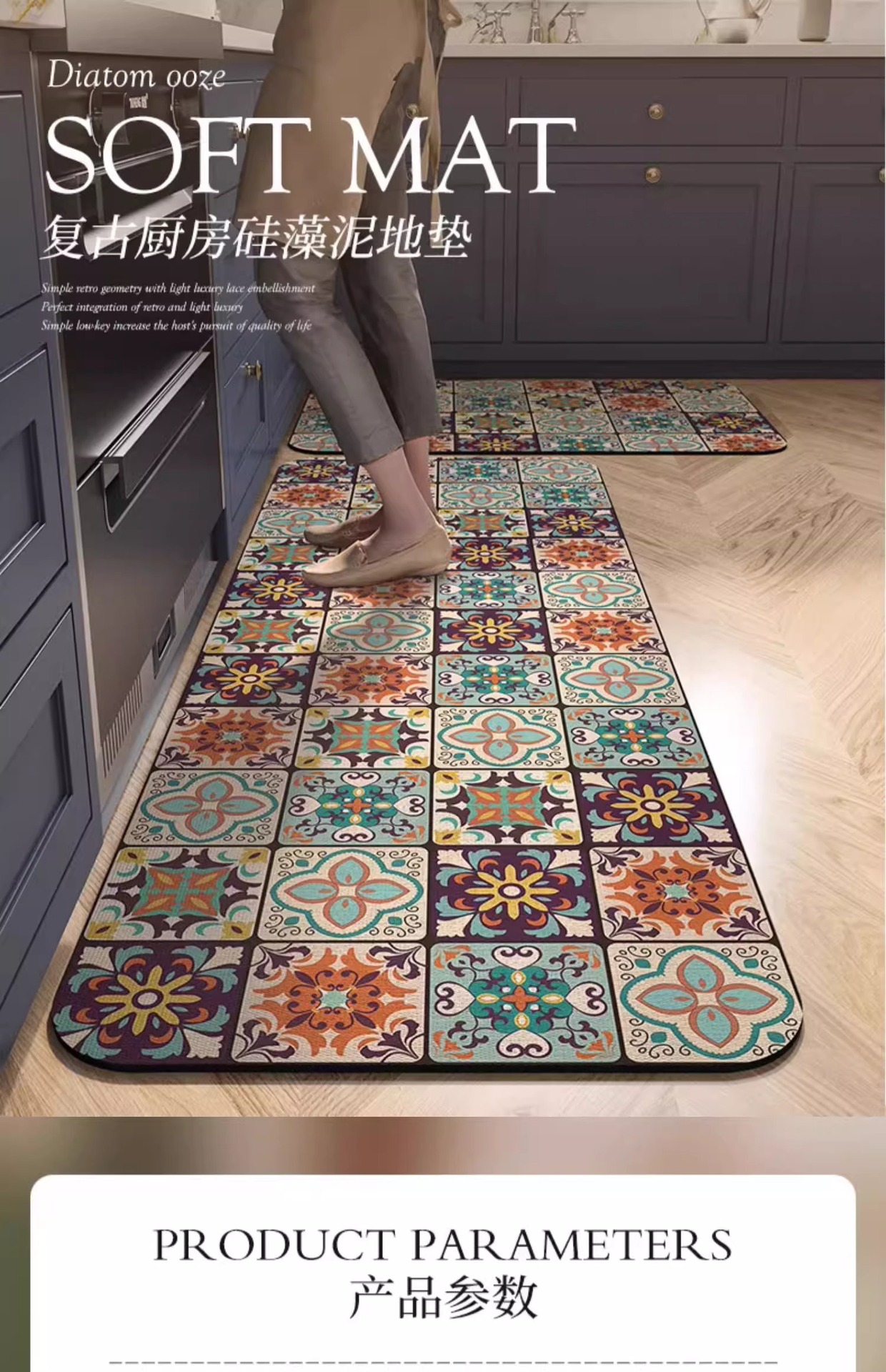 주방 바닥 매트는 흡수성 및 내유성, 두꺼운 규조토 진흙 바닥 매트, 얼룩 방지 및 미끄럼 방지, 복고풍 주방 카펫, 욕실 바닥 매트입니다.스토어 가기
