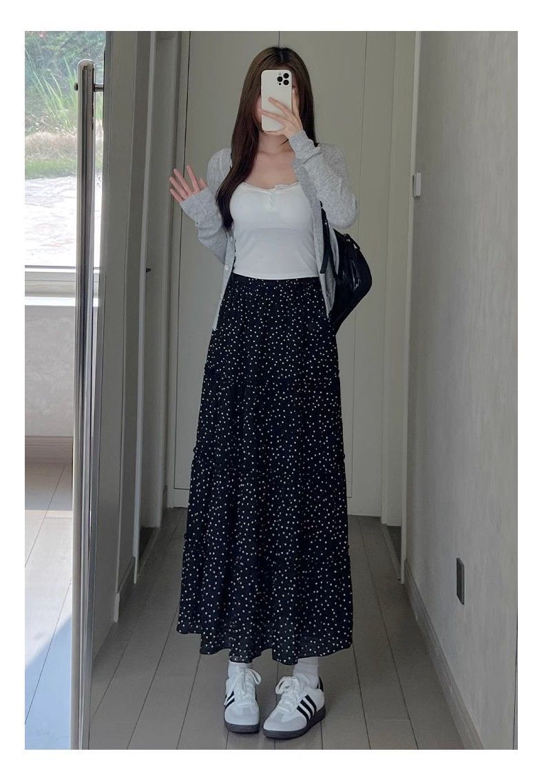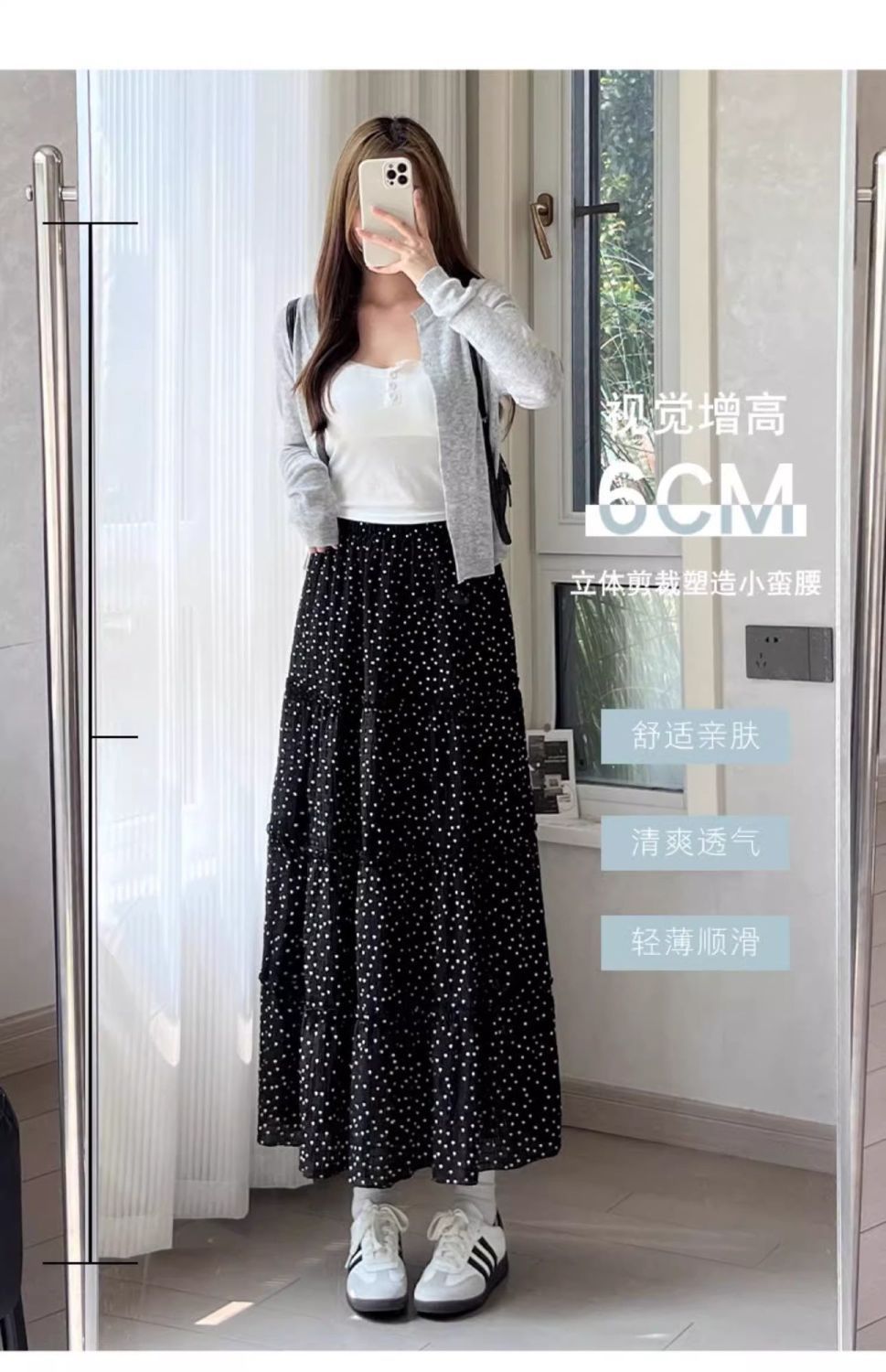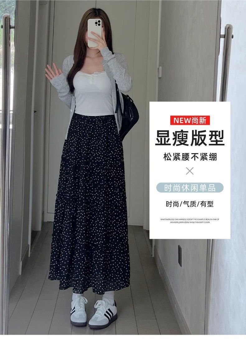 폴카 도트 케이크 스커트 여성 여름 2025 새로운 하이 웨이스트 a 라인 슬리밍 우산 스커트 화이트 스커트스토어 가기