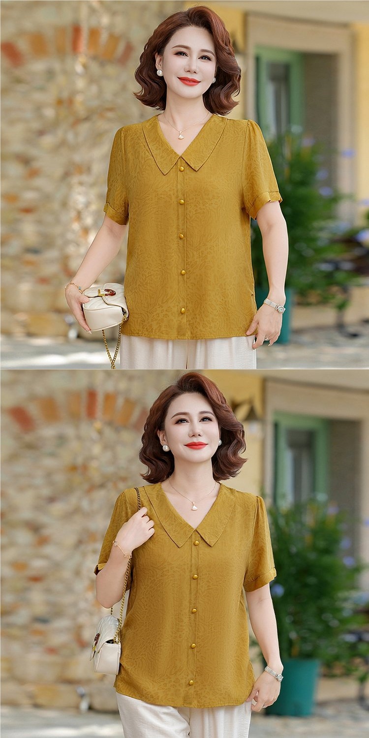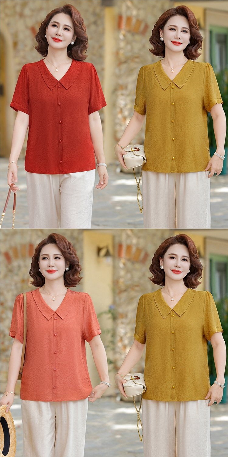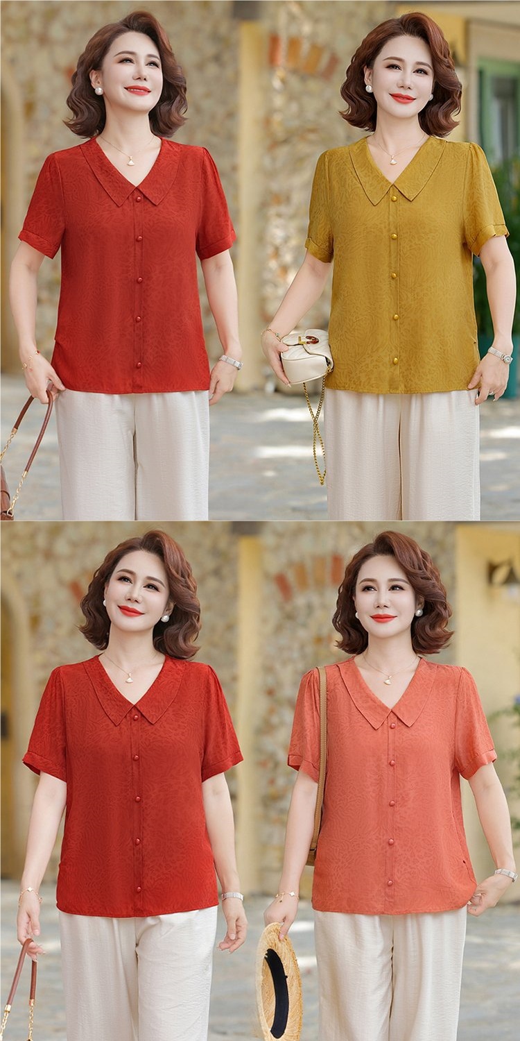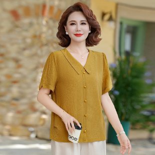 중년 어머니 여름 쉬폰 셔츠 2025 새로운 스타일의 와이드 숙녀 스타일 고귀한 셔츠 중년 여성 여름 반팔