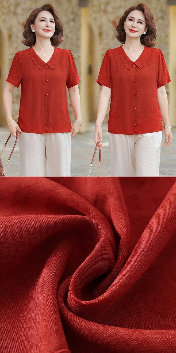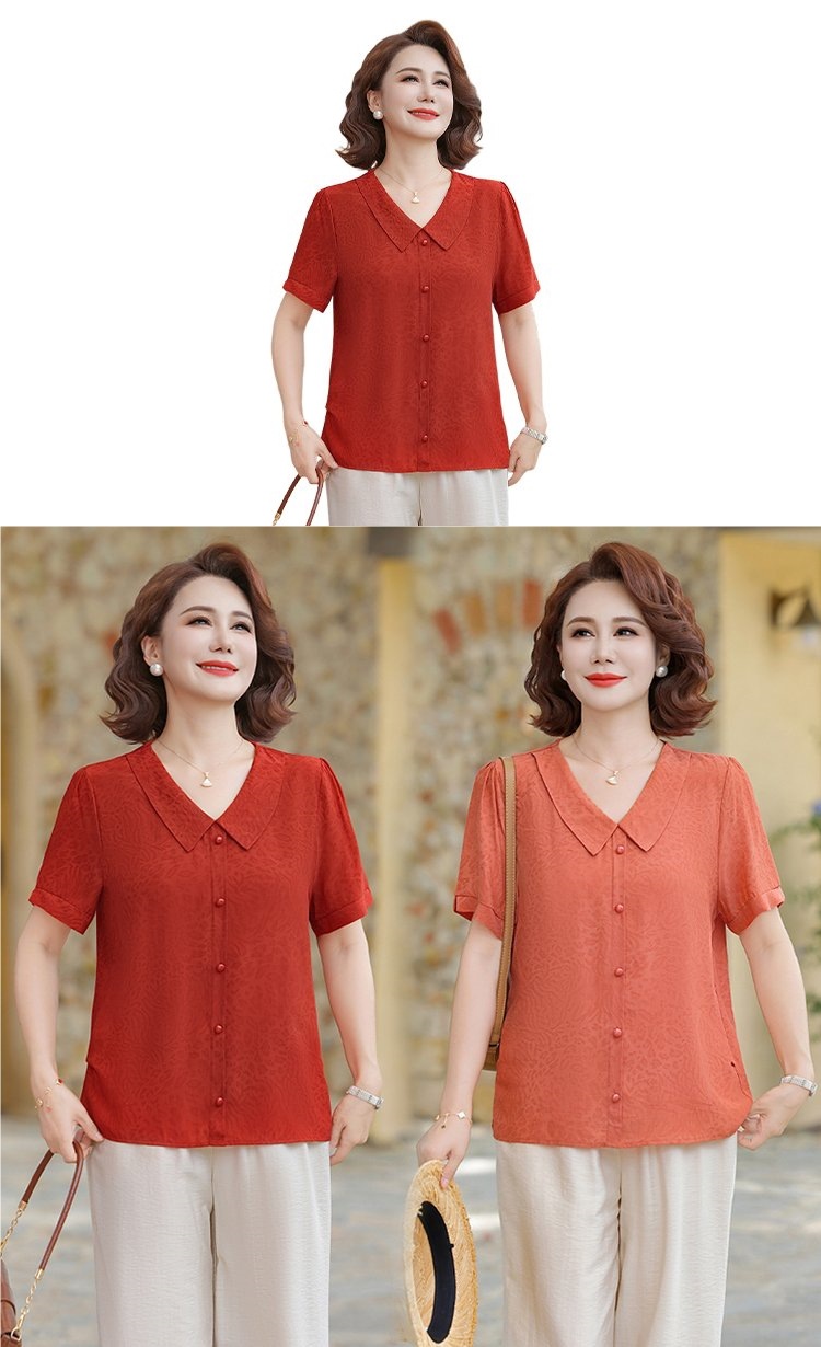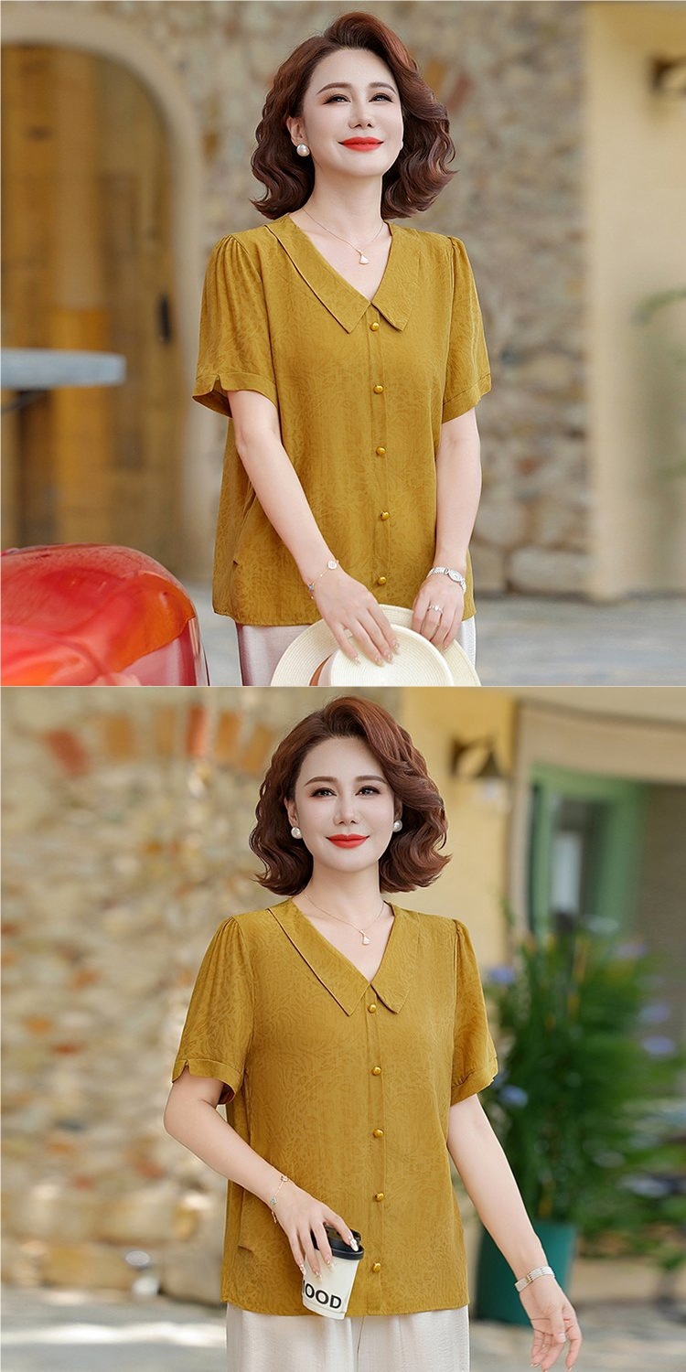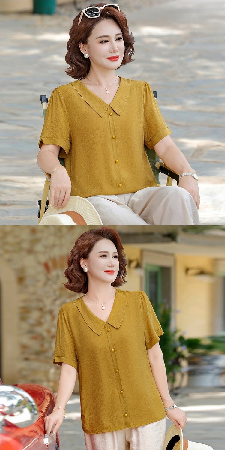 중년 어머니 여름 쉬폰 셔츠 2025 새로운 스타일의 와이드 숙녀 스타일 고귀한 셔츠 중년 여성 여름 반팔
