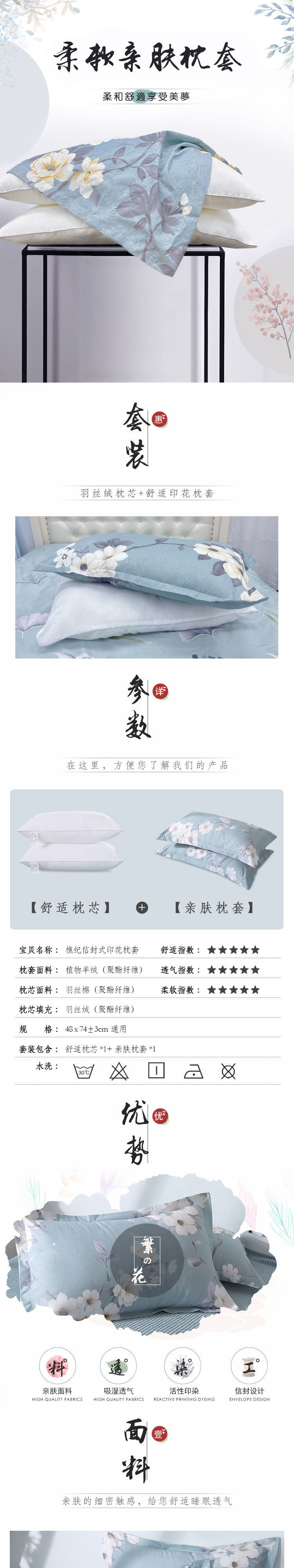 성인용 싱글 베개 커버 2개, 목가적 기숙사, 어린이 및 학생용 세탁 가능한 베개 커버, 베개 세트, 한 쌍스토어 가기