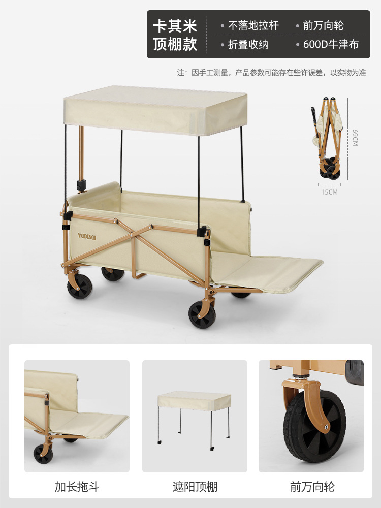• [확장형 드래그 버킷 모델] 카키 + 프리 개폐 드래그 버킷 + 선쉐이드 + 전면 유니버설 휠 - 600D 옥스포드 천