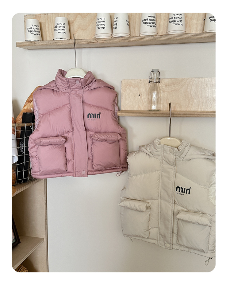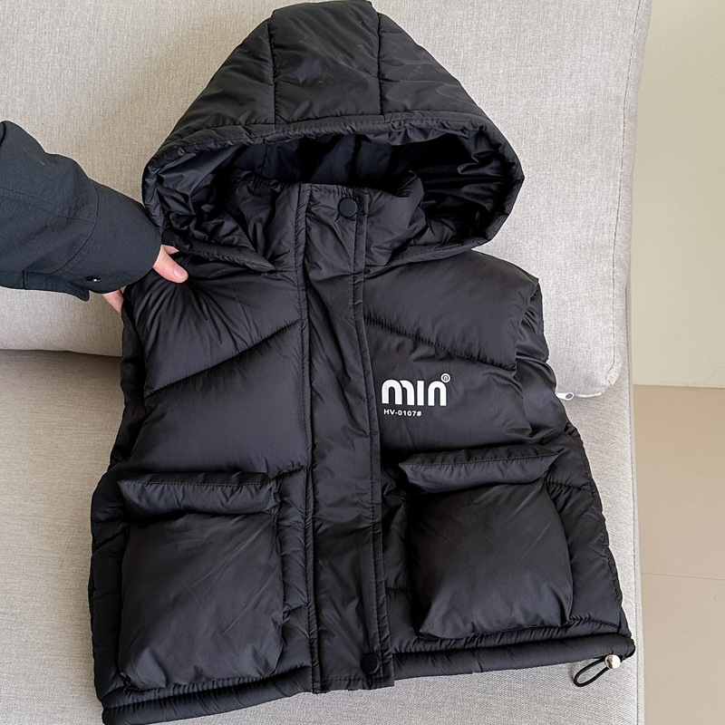 국경 간 어린이 다운 코튼 조끼 2025 가을, 겨울 소년과 소녀 짧은 두꺼운 따뜻한 양복 조끼 서양식 후드 조끼스토어 가기