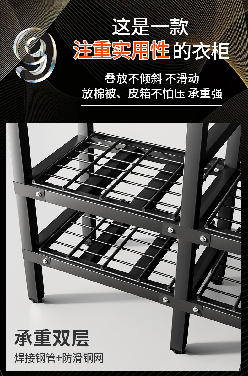 설치가 필요 없는 간단한 천 옷장 임대 주택 가정용 침실 강철 파이프 강화 강력한 접이식 소형 올 행 옷장