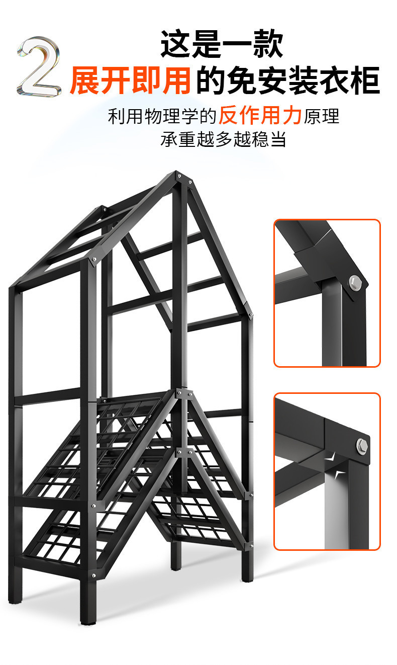 설치가 필요 없는 간단한 천 옷장 임대 주택 가정용 침실 강철 파이프 강화 강력한 접이식 소형 올 행 옷장스토어 가기