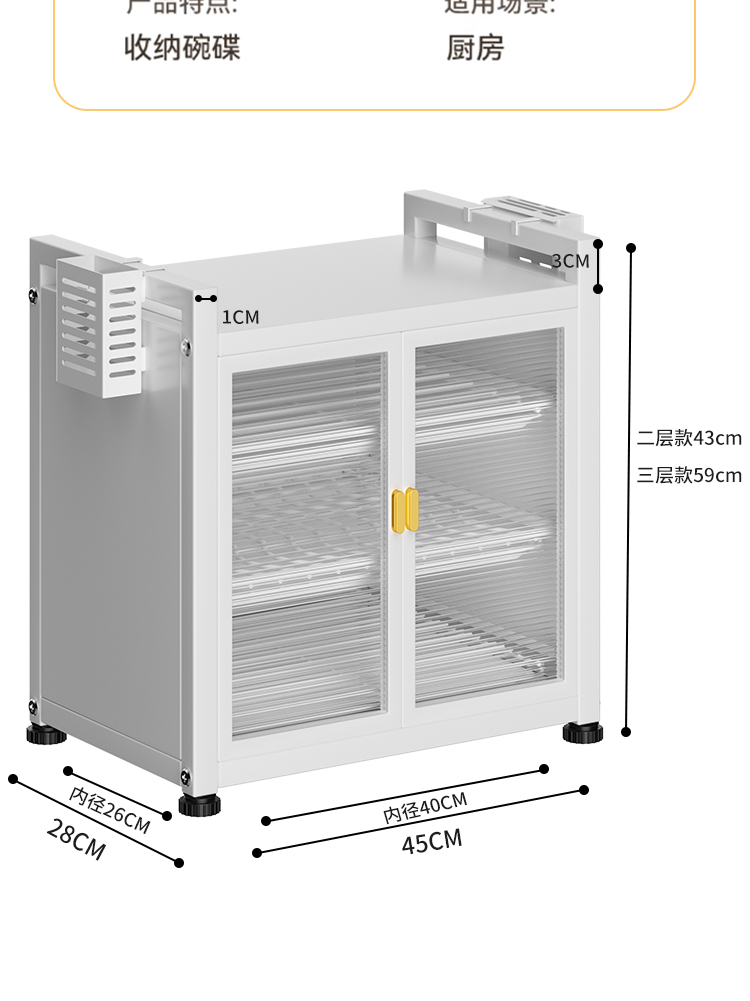 • ✷☽☽升级上翻柜门款白色双层【套装】 碗碟立放防潮通风✷☽☽