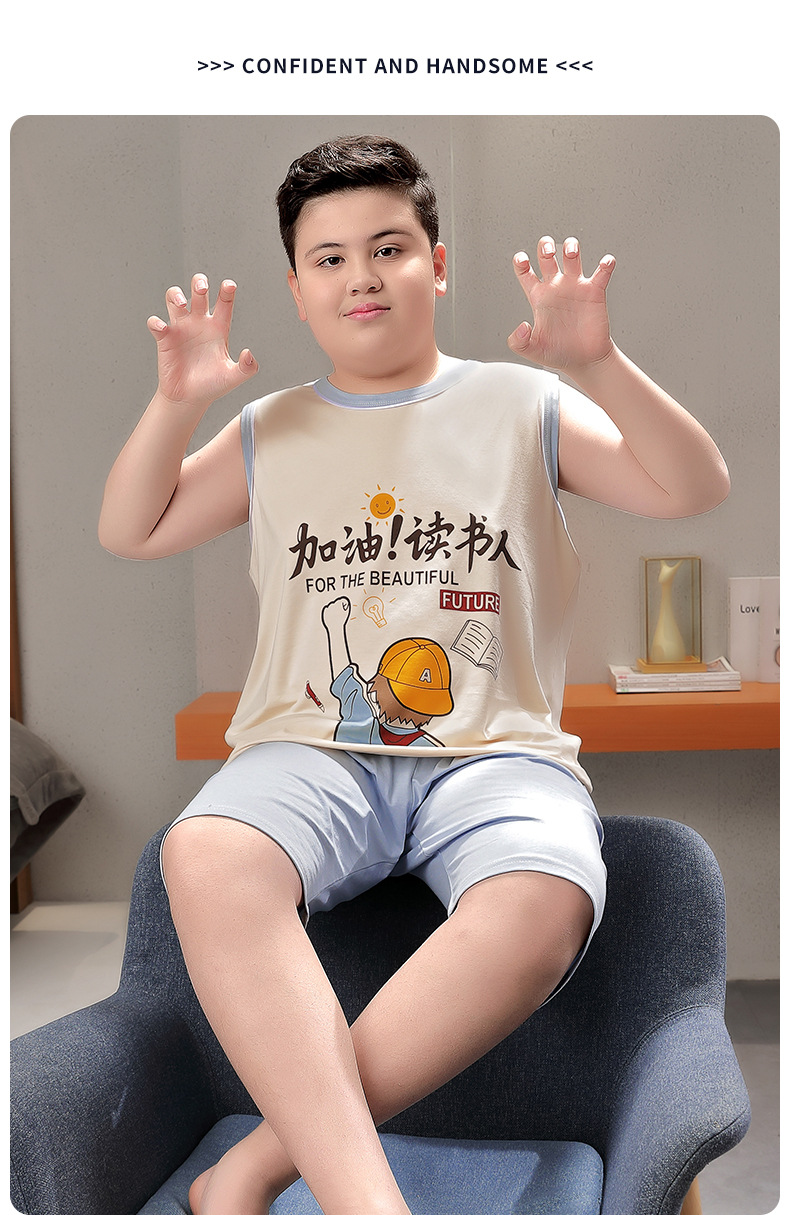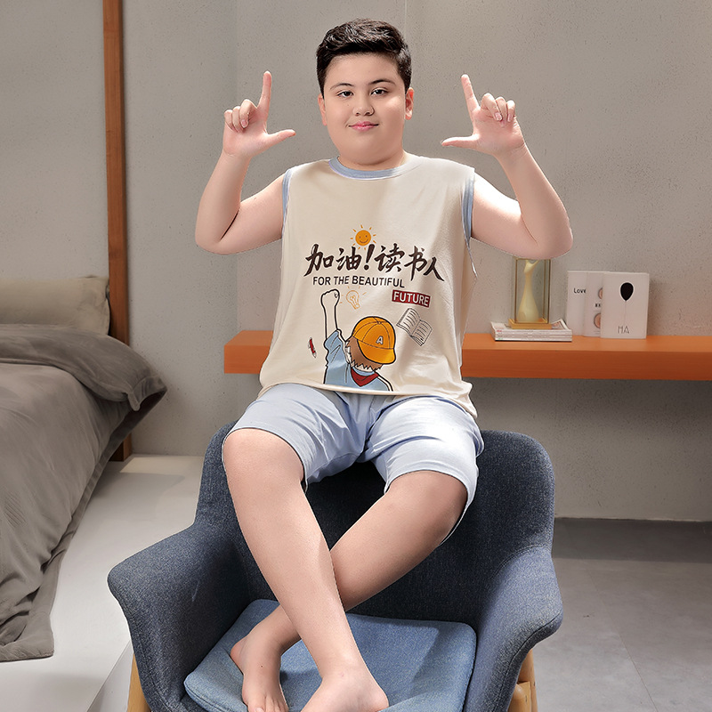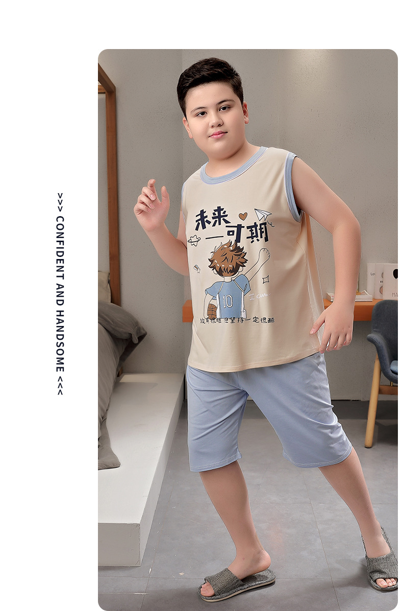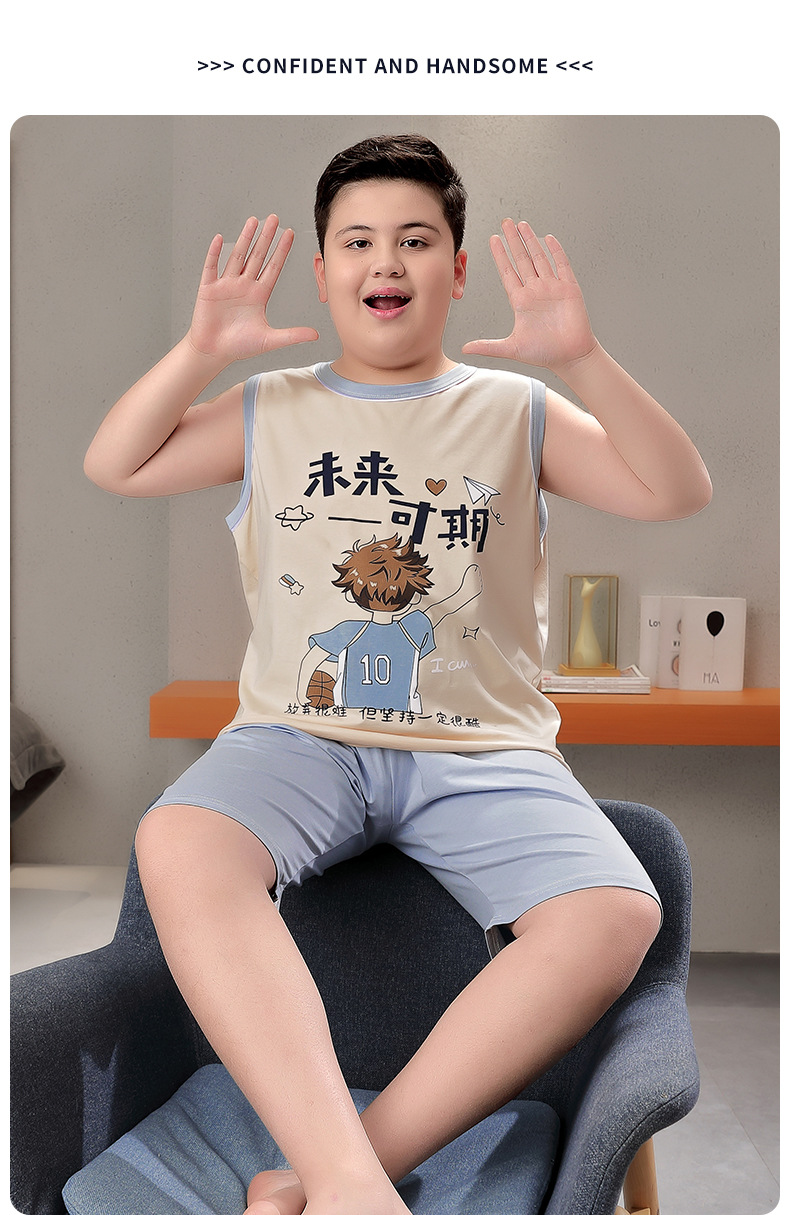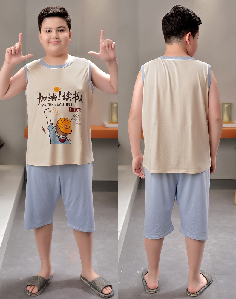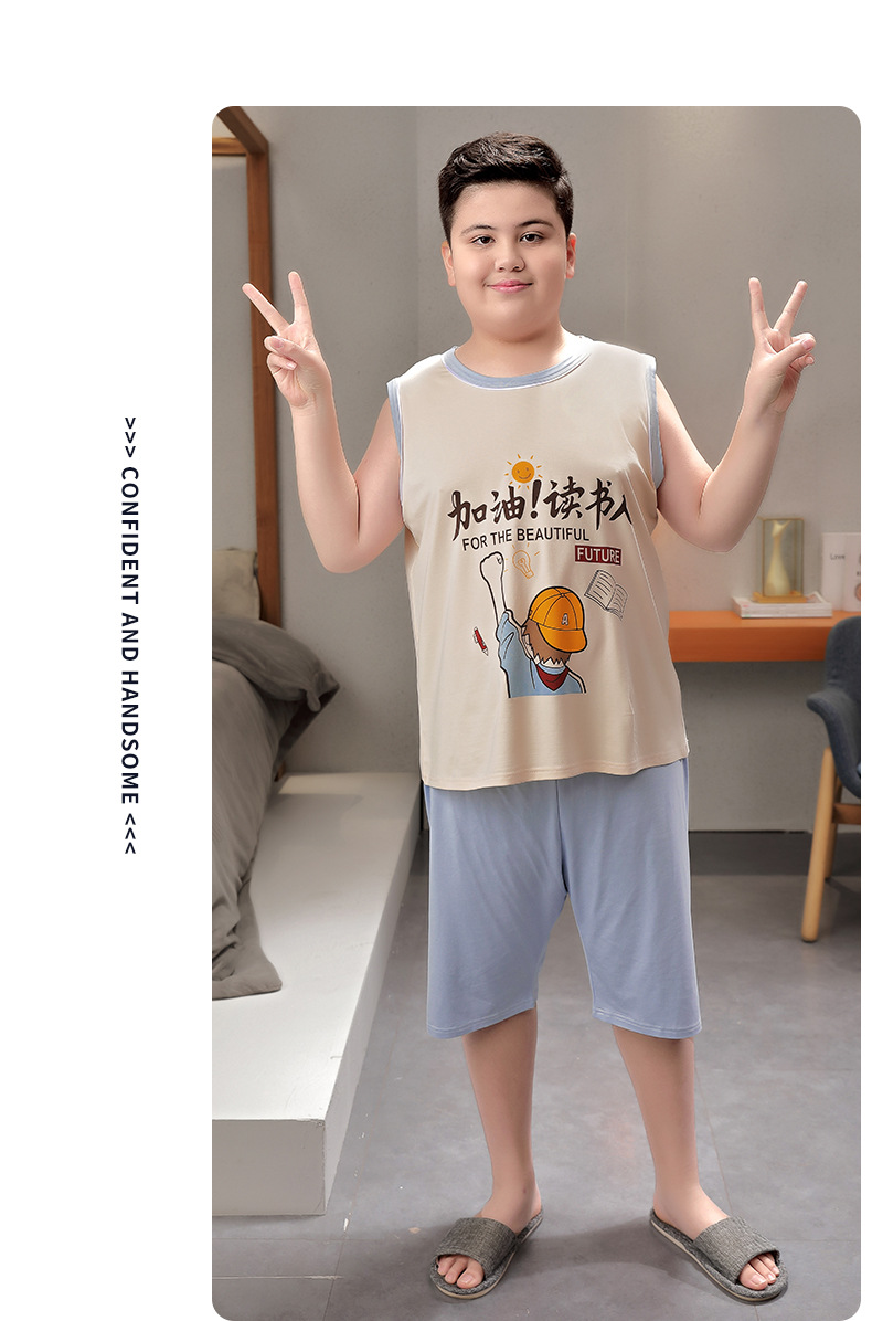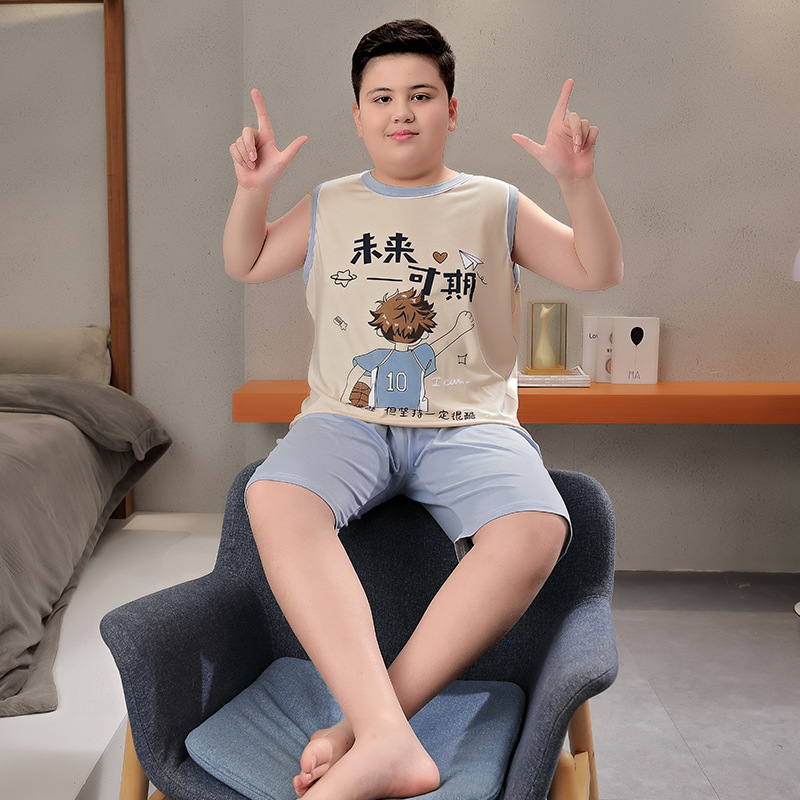 어린이 모달 잠옷 2025 새로운 조끼 반바지 플러스 사이즈 소년 여름 느슨한 에어컨 양복스토어 가기