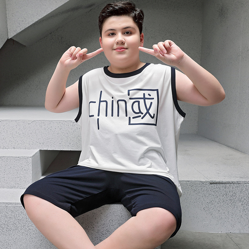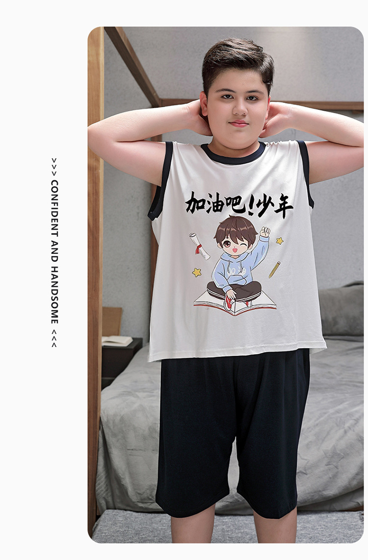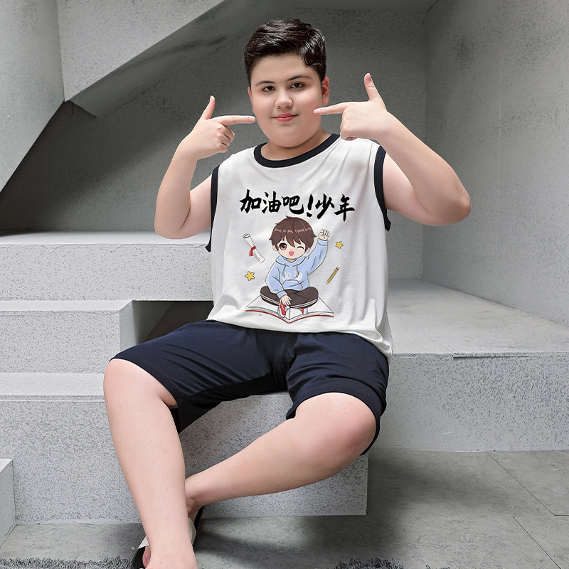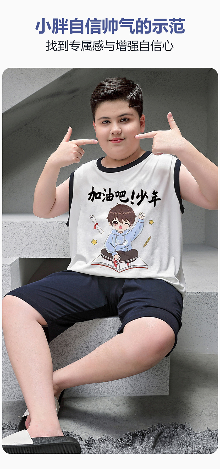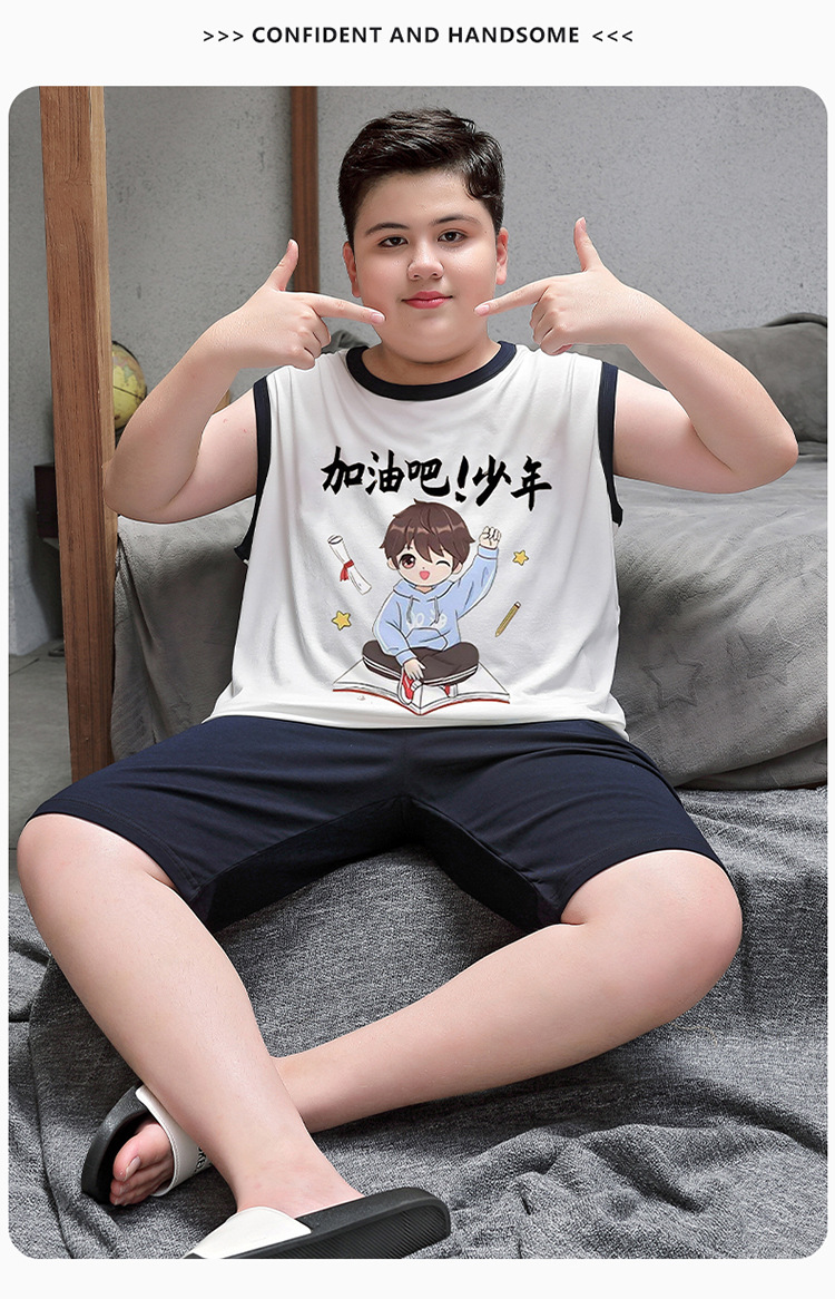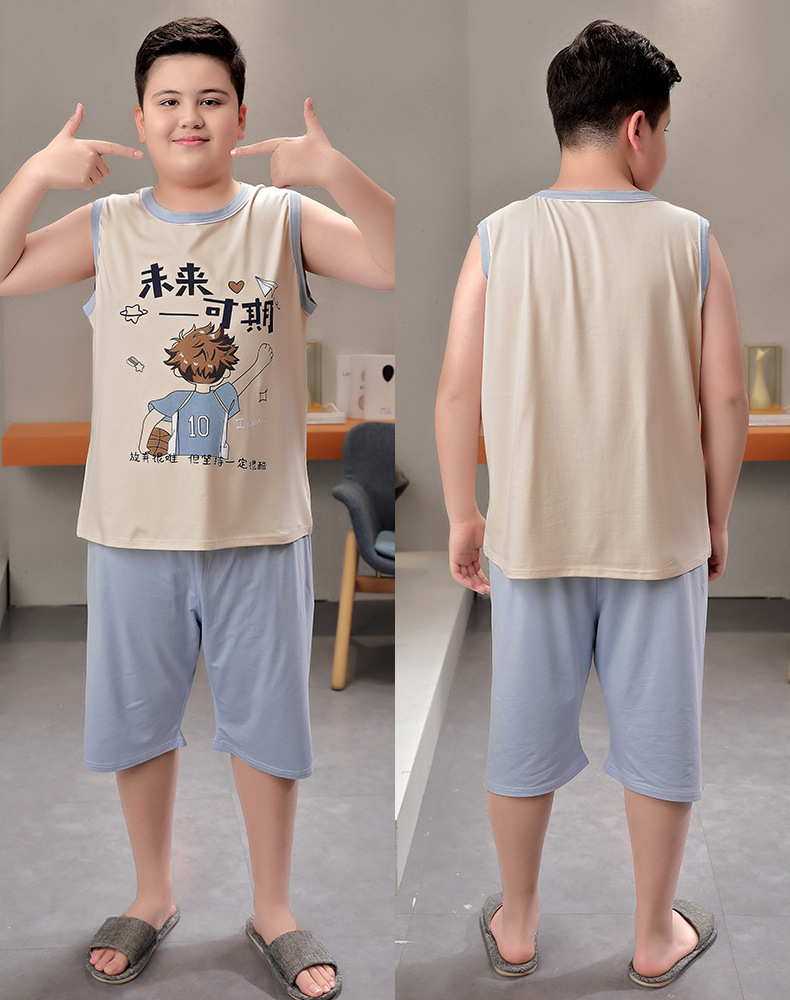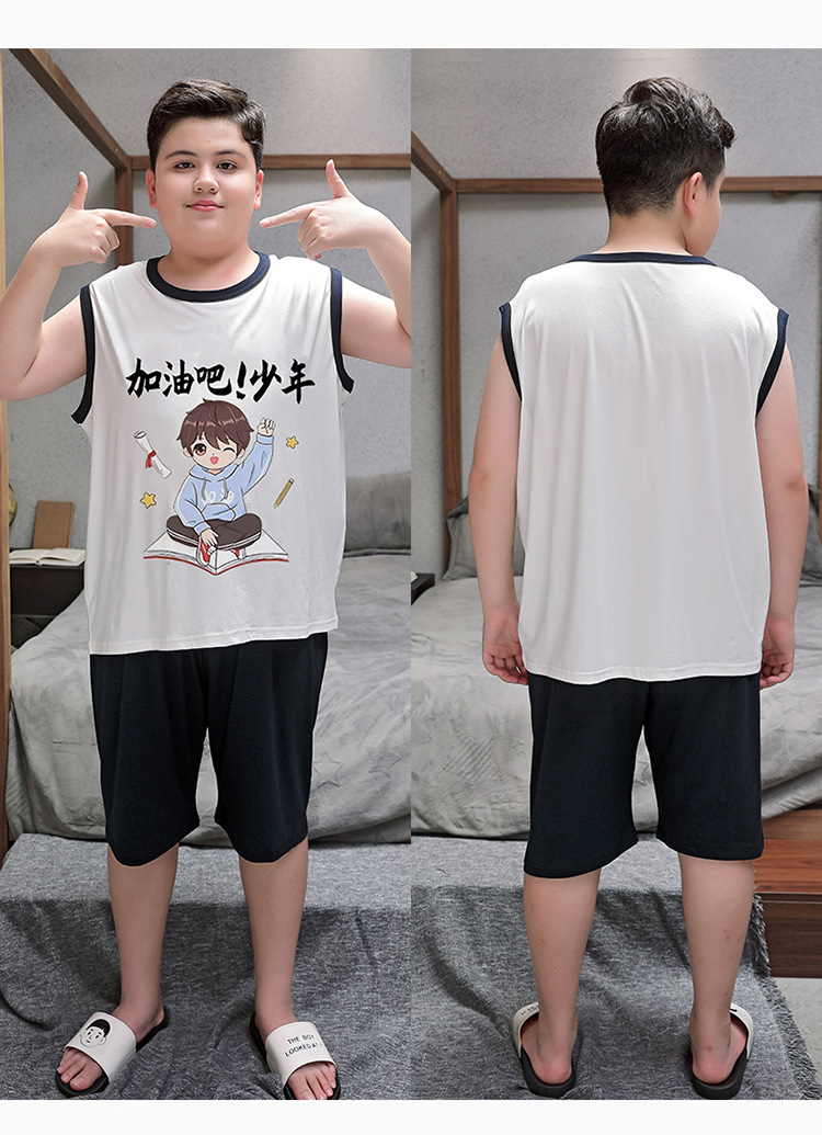 어린이 모달 잠옷 2025 새로운 조끼 반바지 플러스 사이즈 소년 여름 느슨한 에어컨 양복스토어 가기