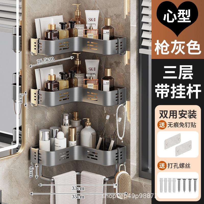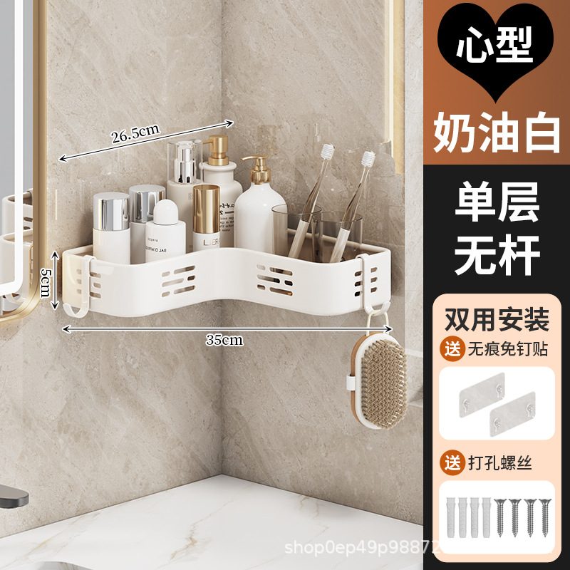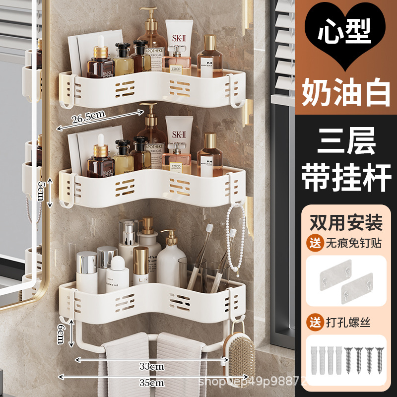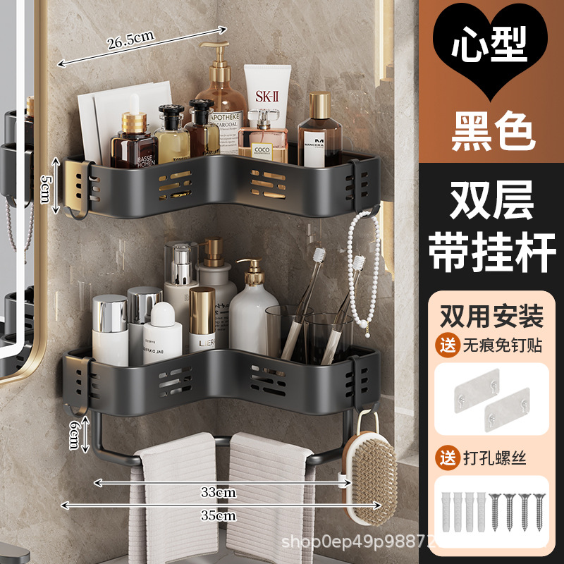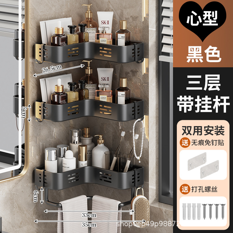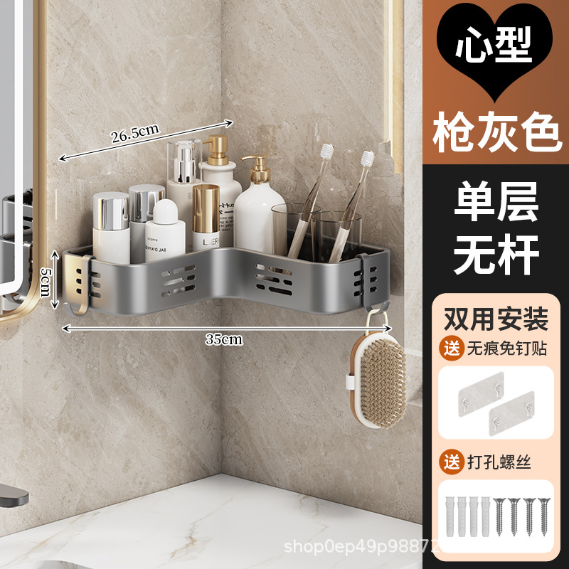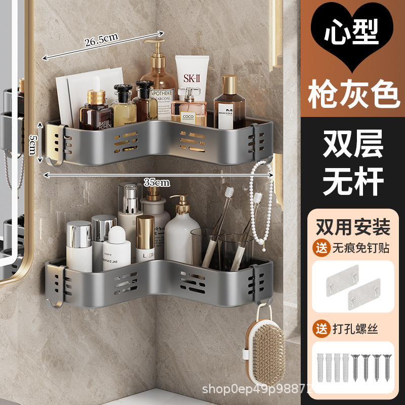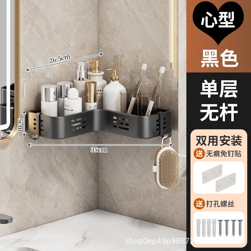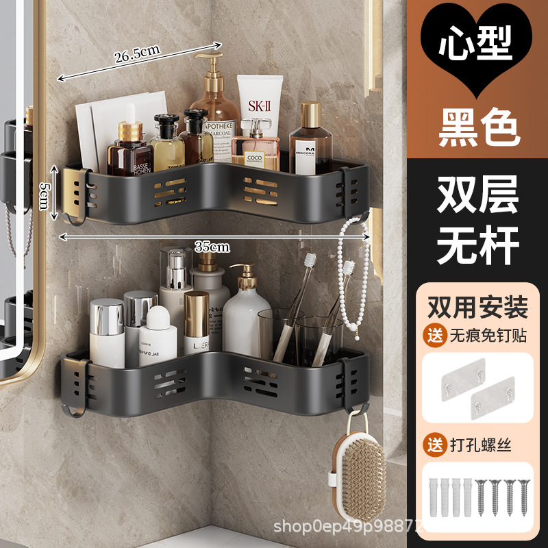 욕실 벽걸이형 삼각형 선반, 펀치 없는 다층 수납 하트 모양 코너 선반