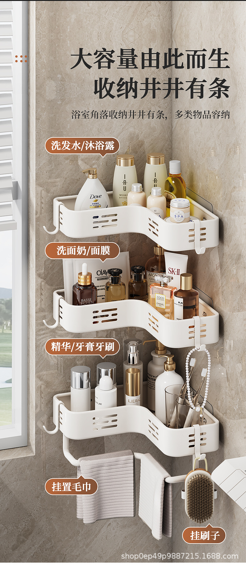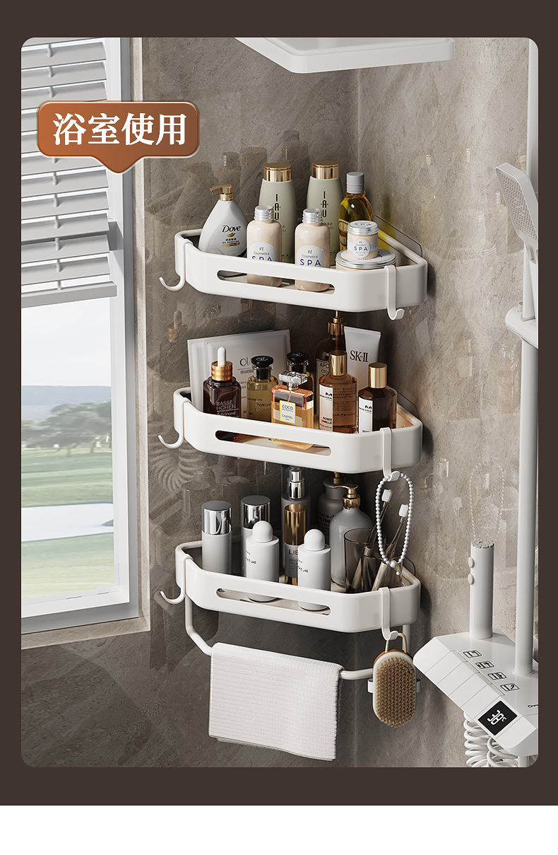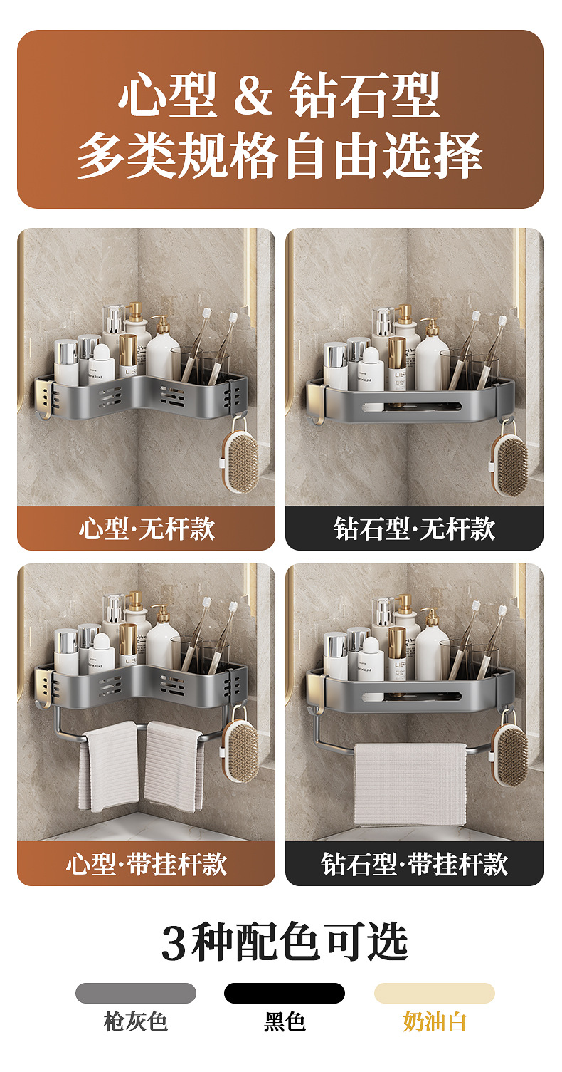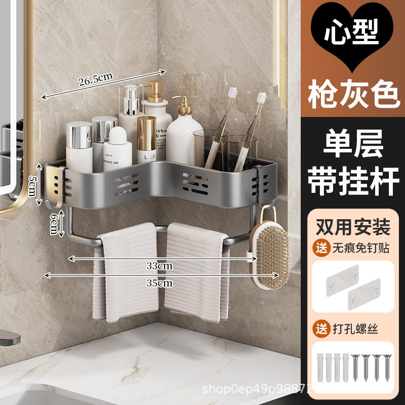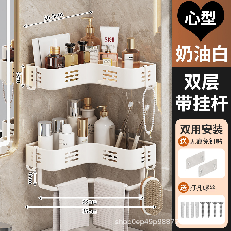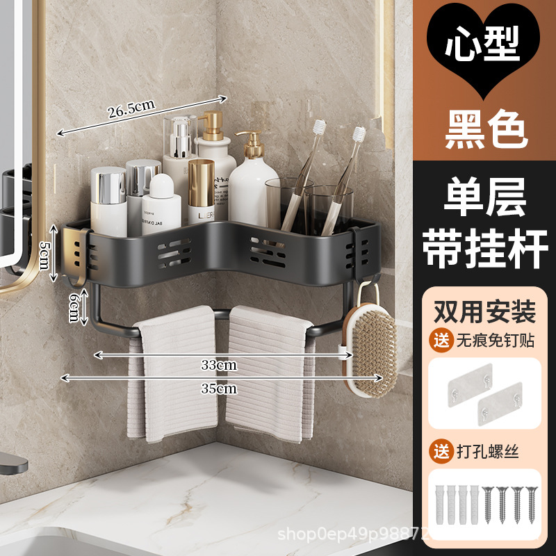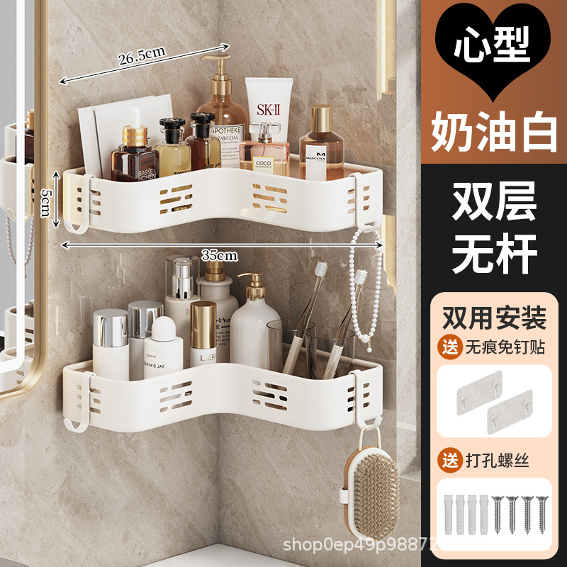 욕실 벽걸이형 삼각형 선반, 펀치 없는 다층 수납 하트 모양 코너 선반
