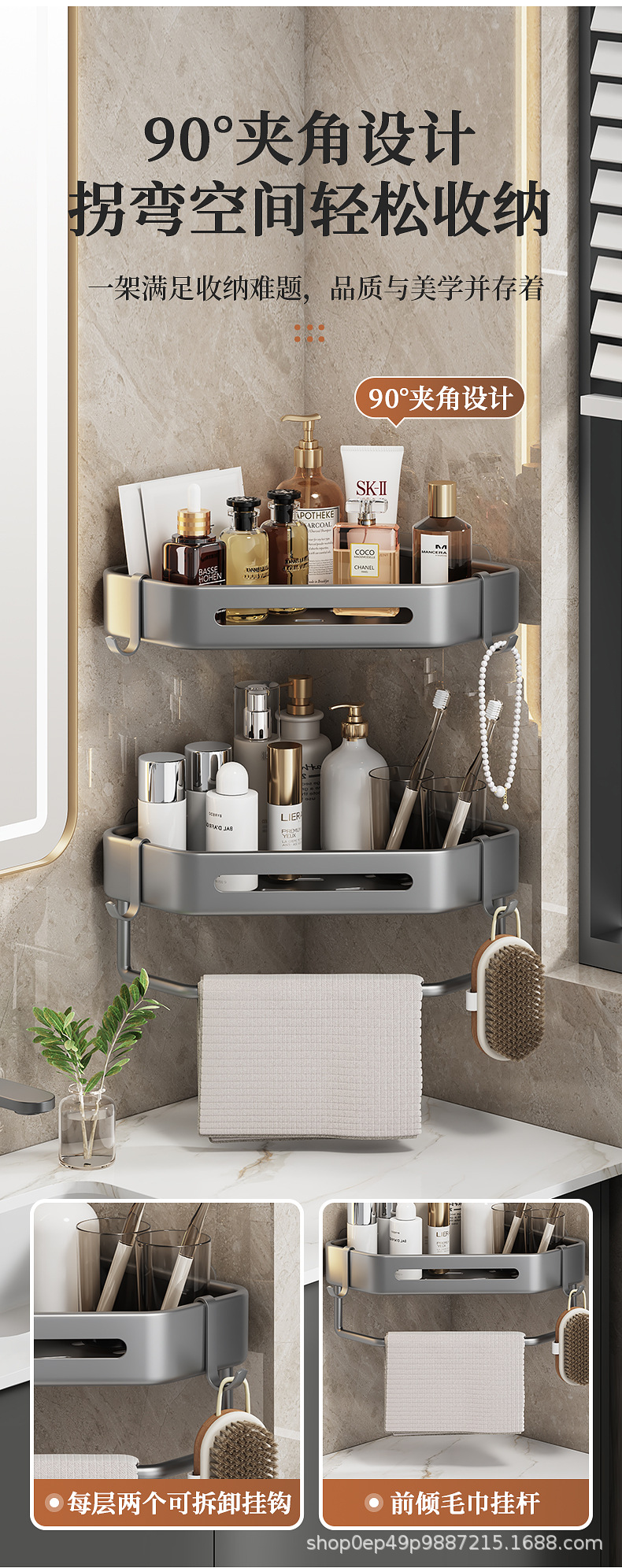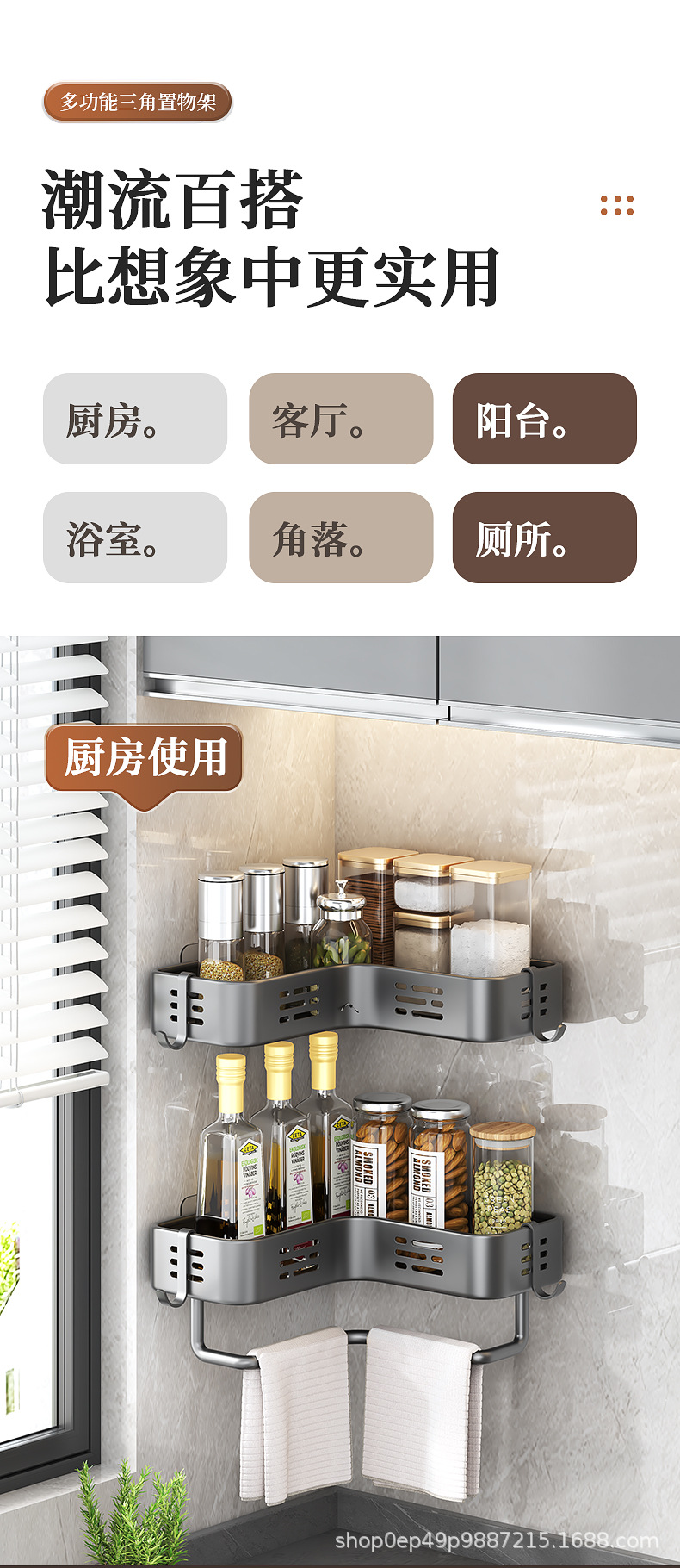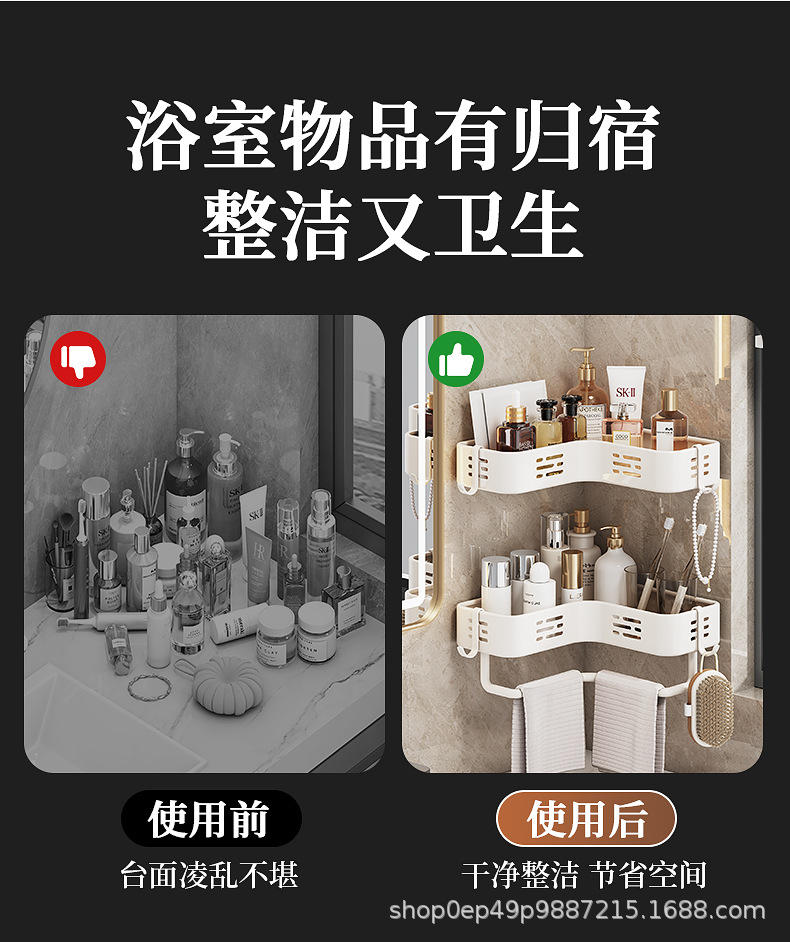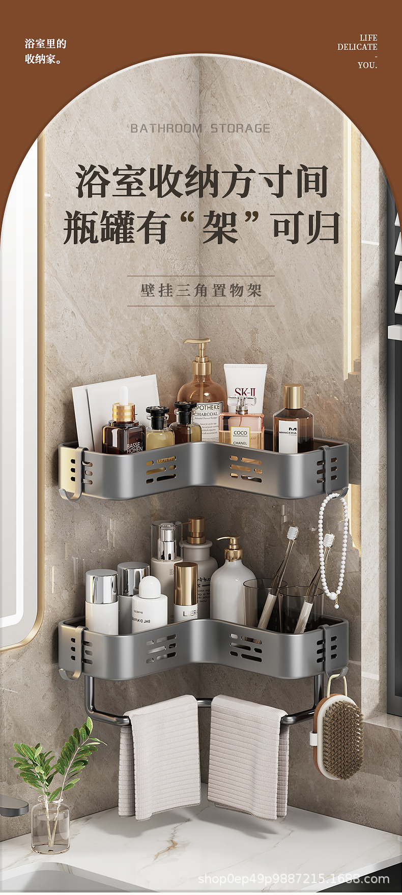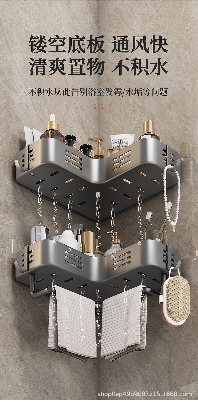 욕실 벽걸이형 삼각형 선반, 펀치 없는 다층 수납 하트 모양 코너 선반