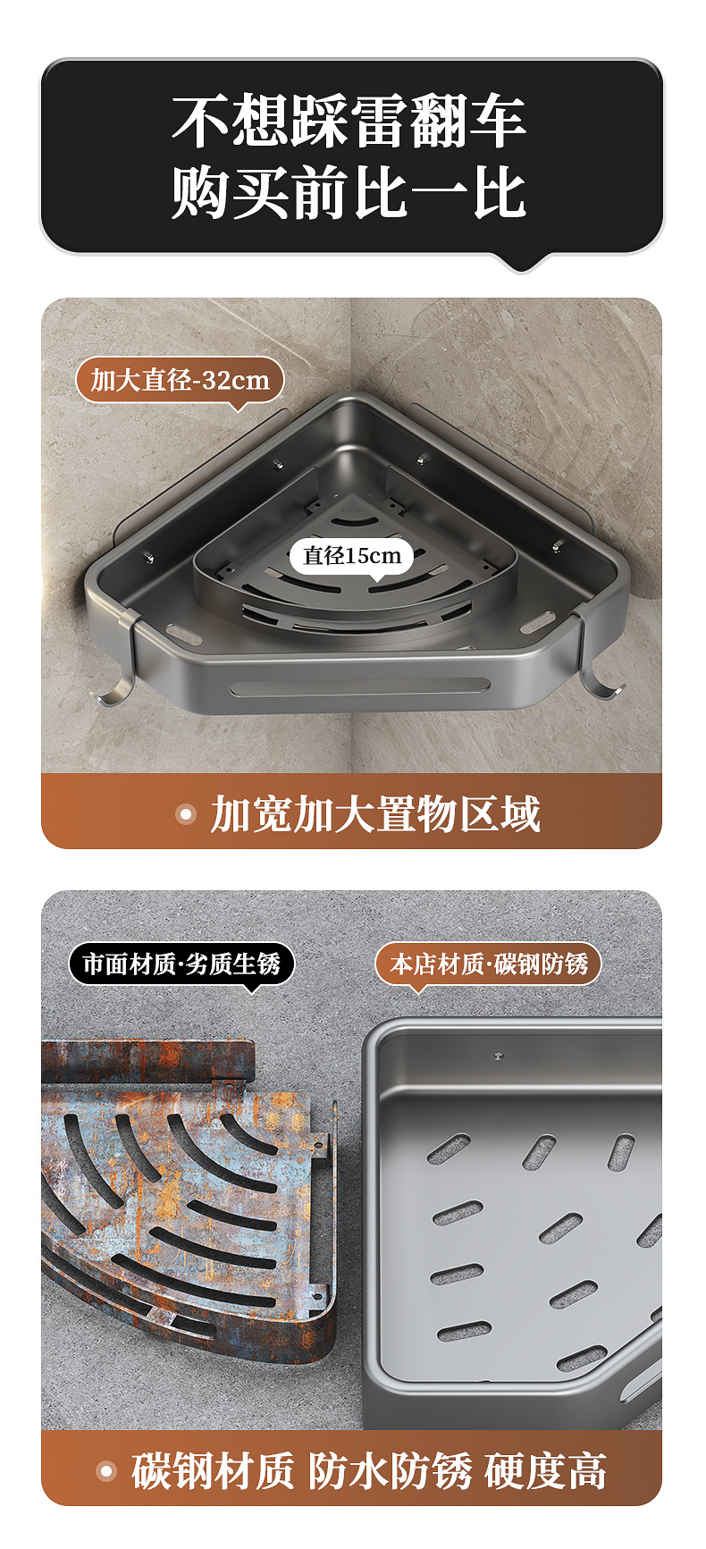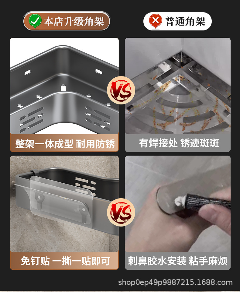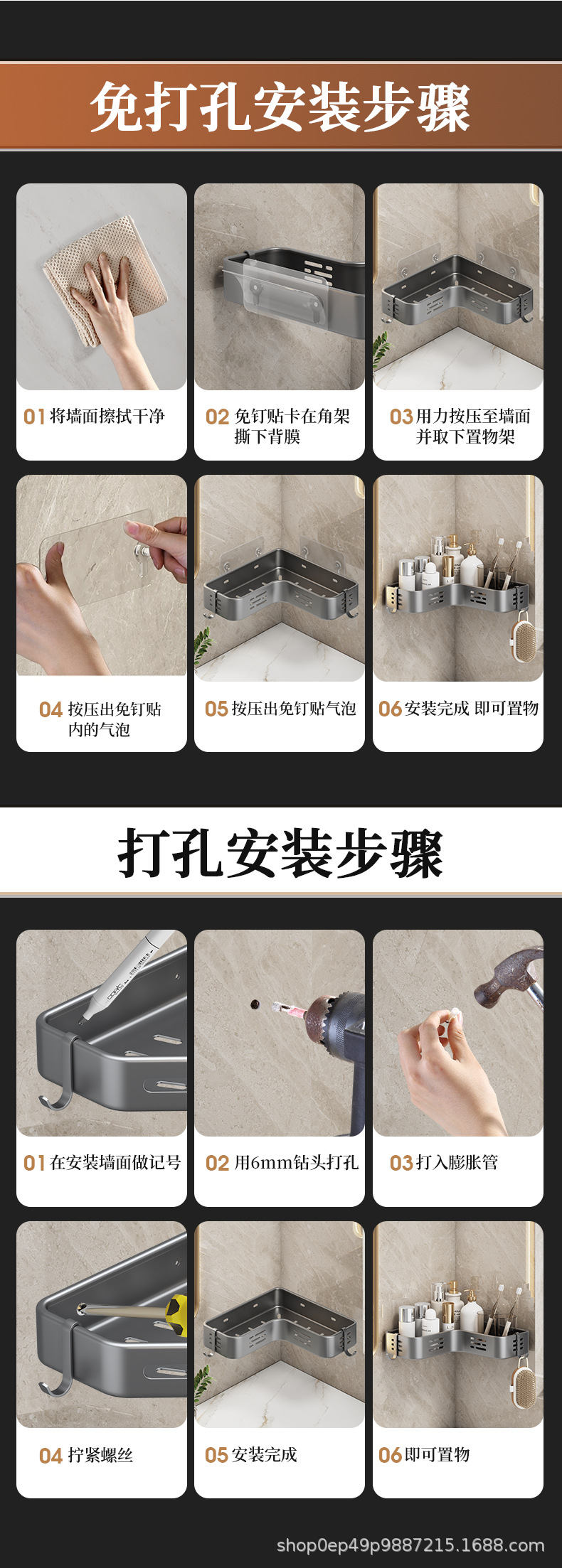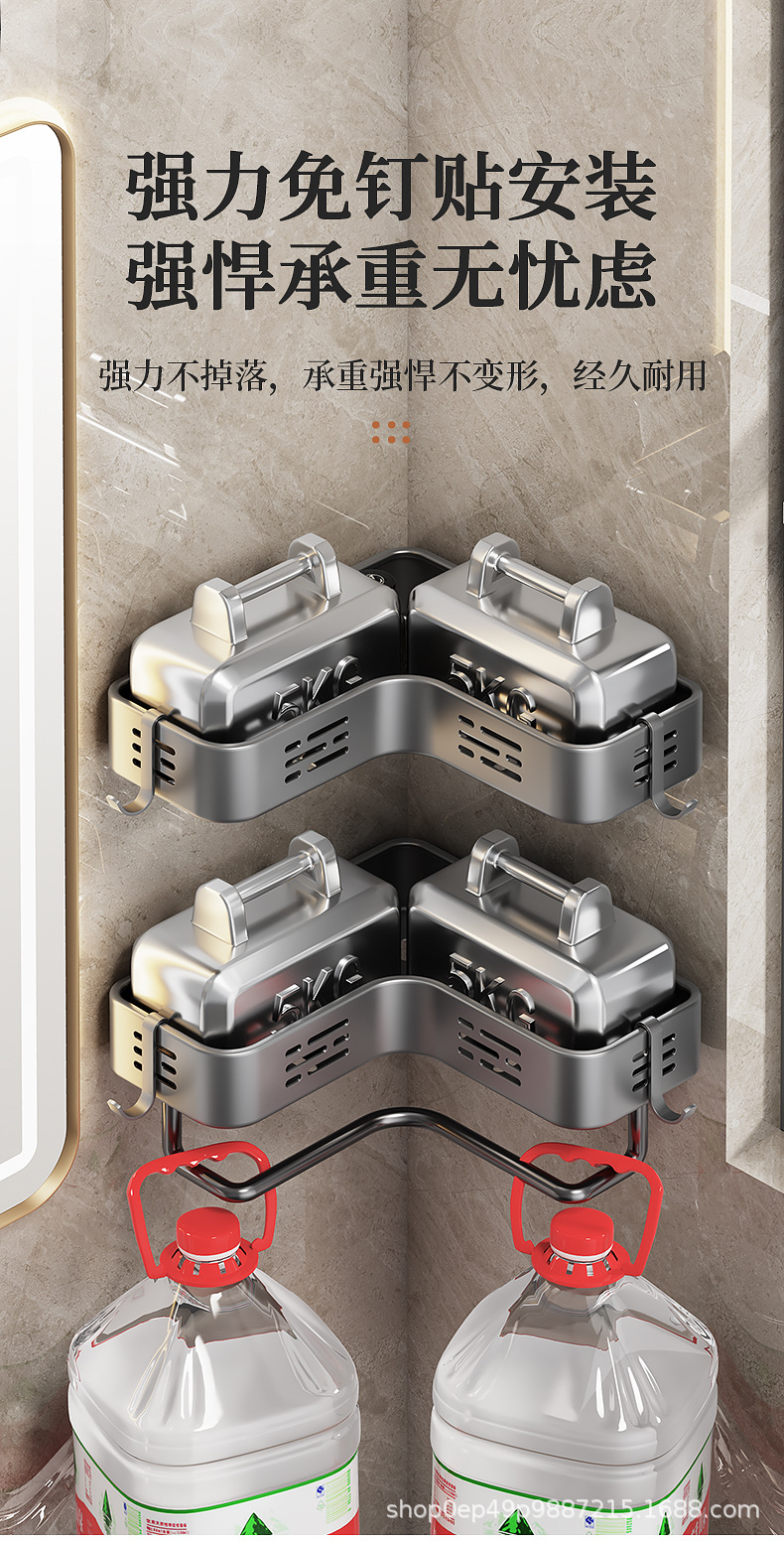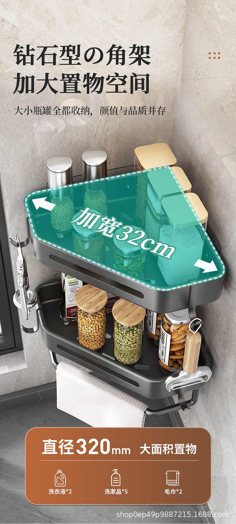 욕실 벽걸이형 삼각형 선반, 펀치 없는 다층 수납 하트 모양 코너 선반