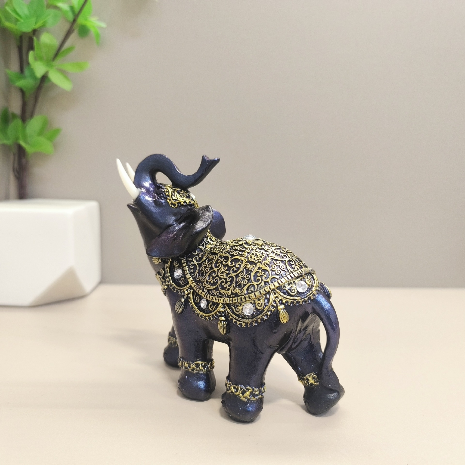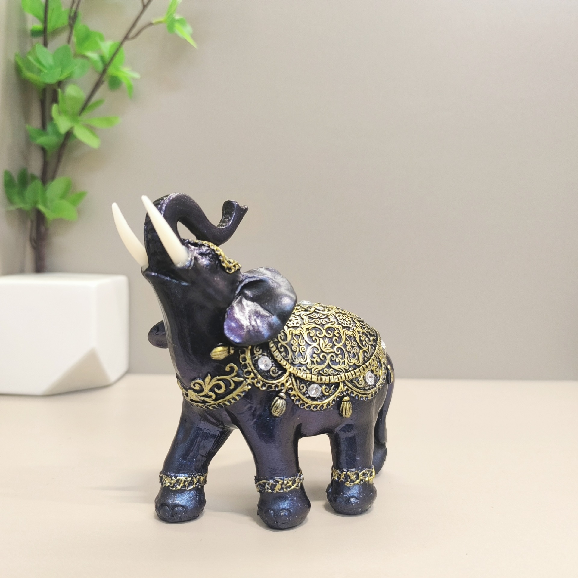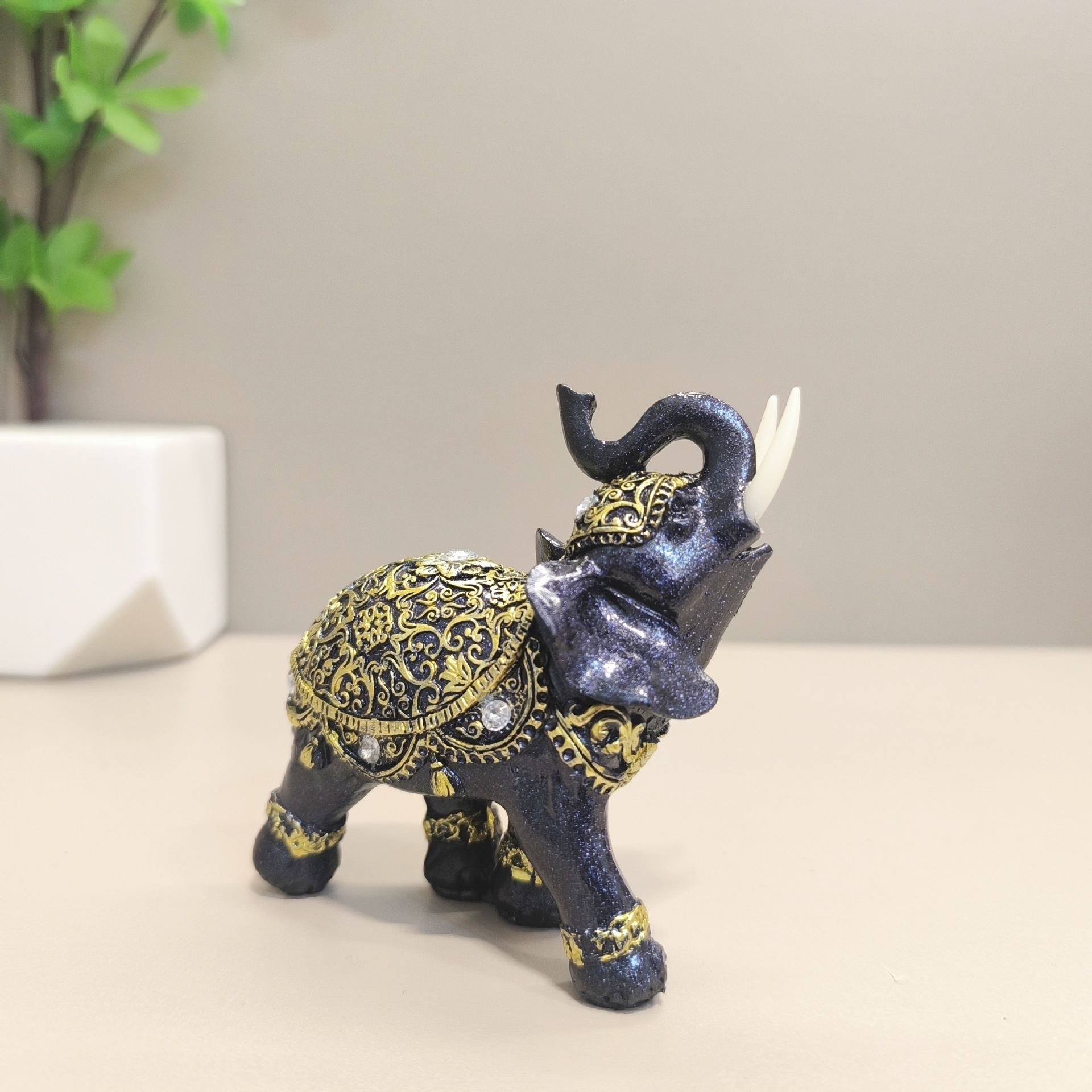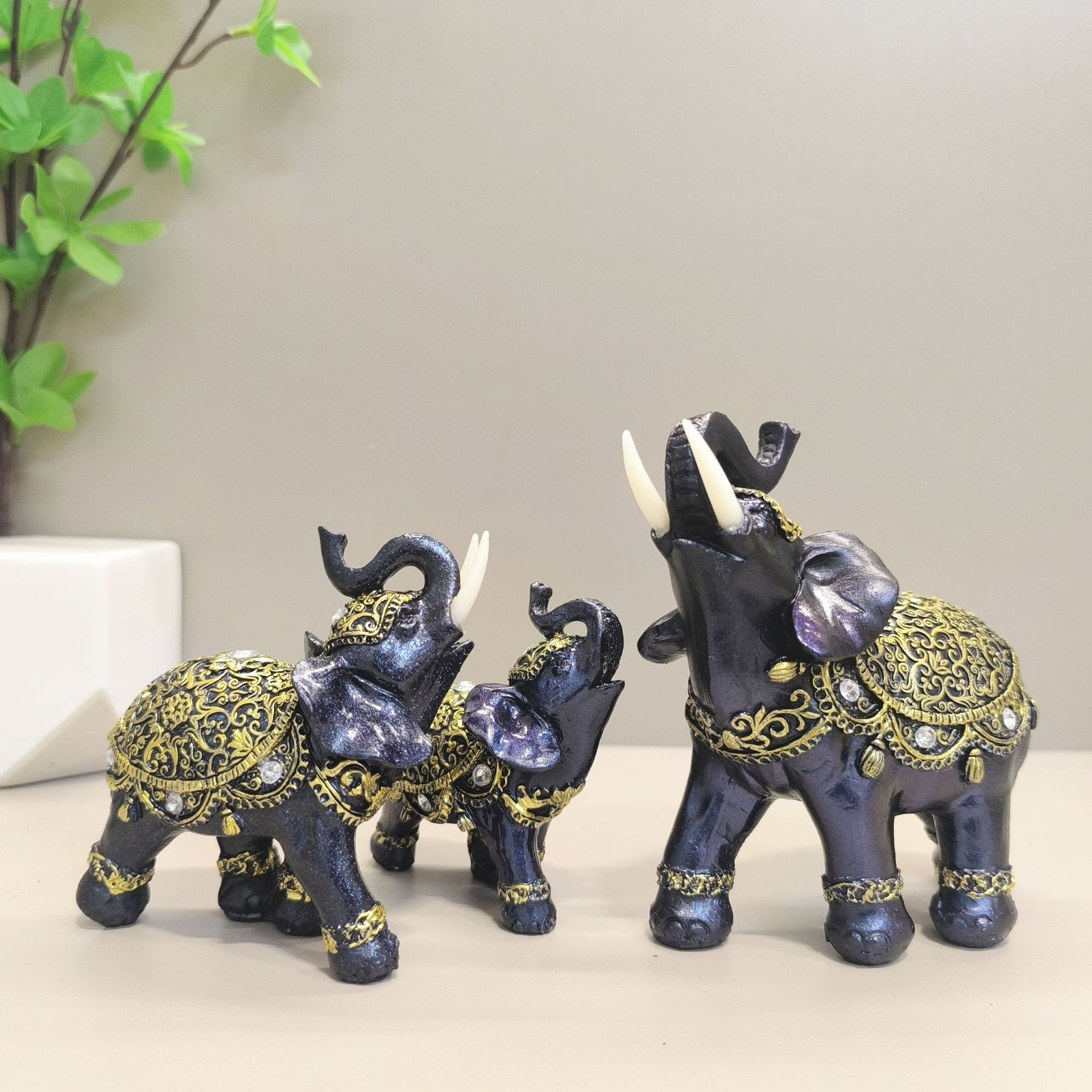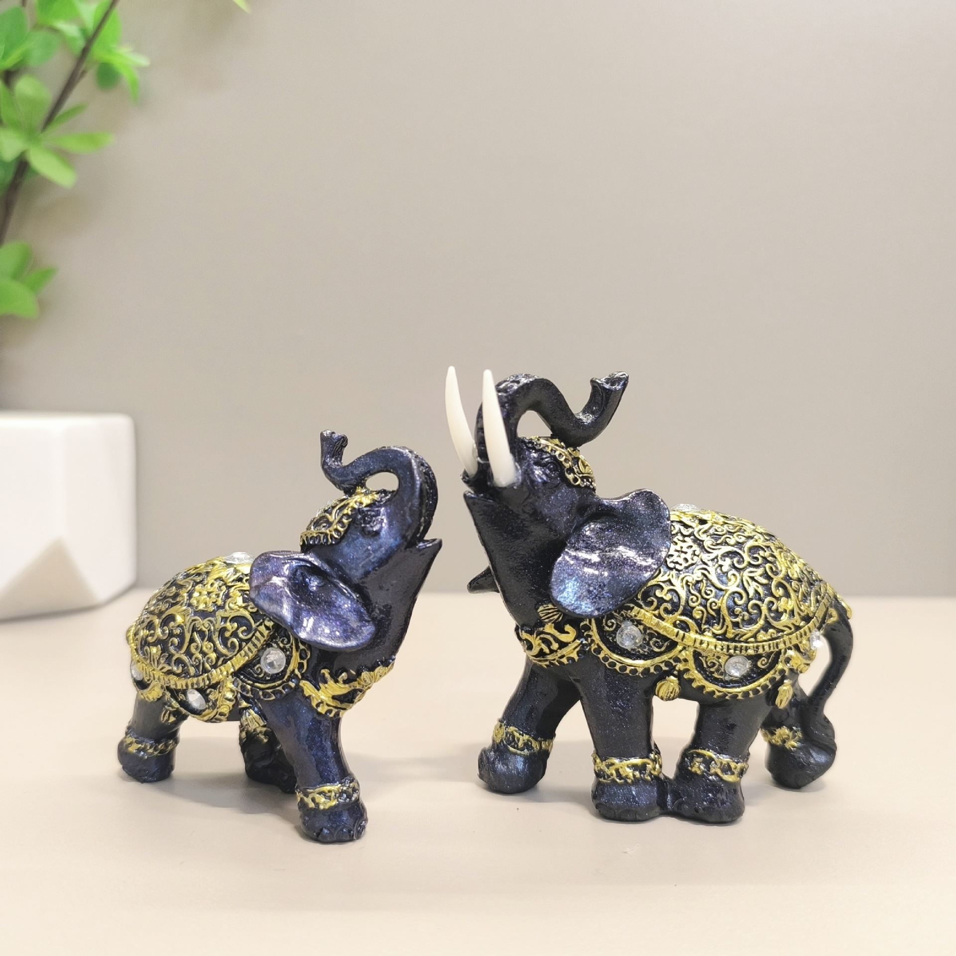 유럽 스타일 코끼리 수지 공예 장식품 황금 코끼리 크리 에이 티브 홈 장식 사무실 거실 코끼리 장식품