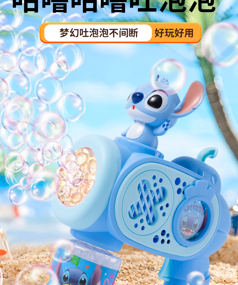 디즈니 스티치 버블 머신 2025 새로운 어린이와 소녀 완전 자동 전기 버블 건 유아용 휴대용스토어 가기
