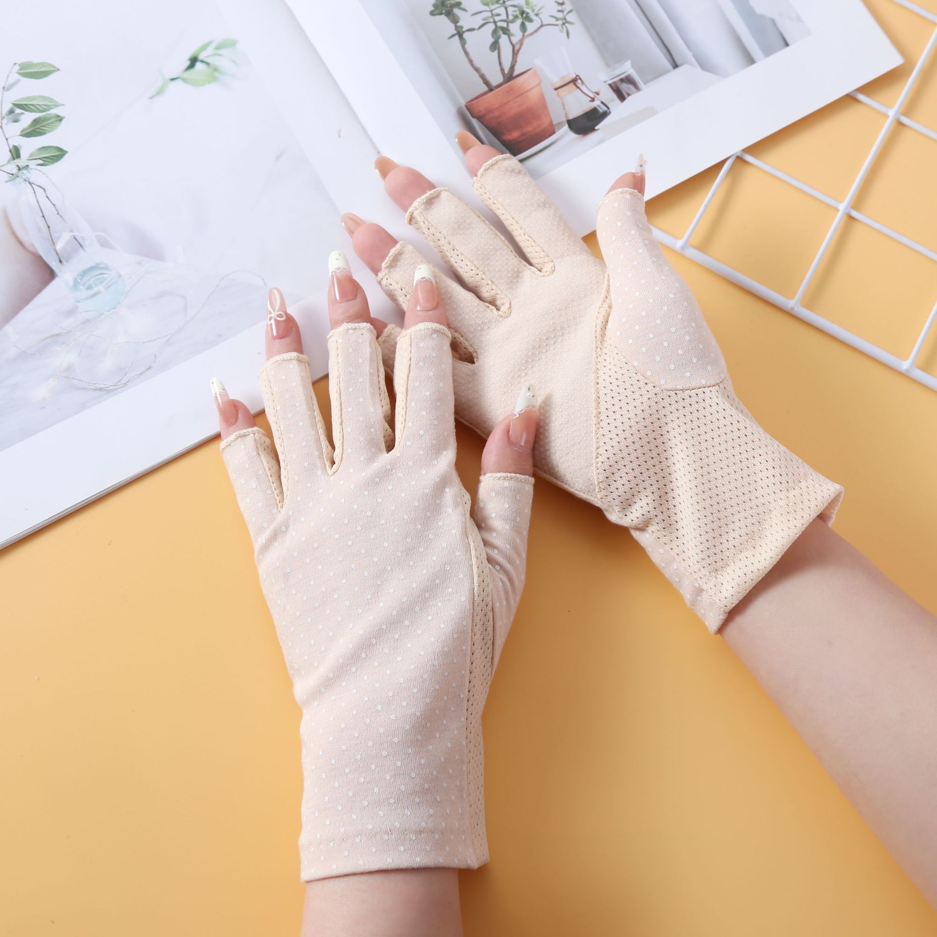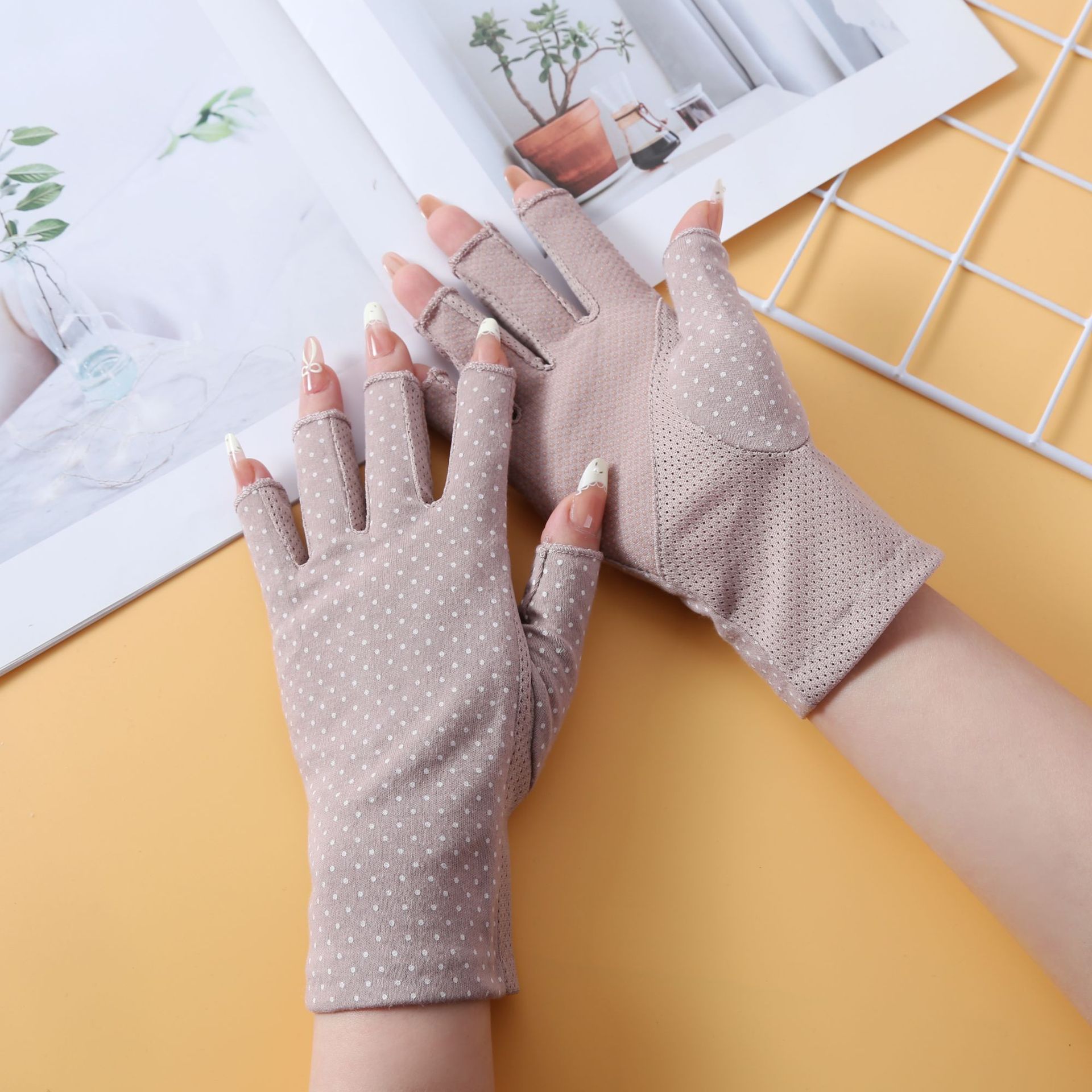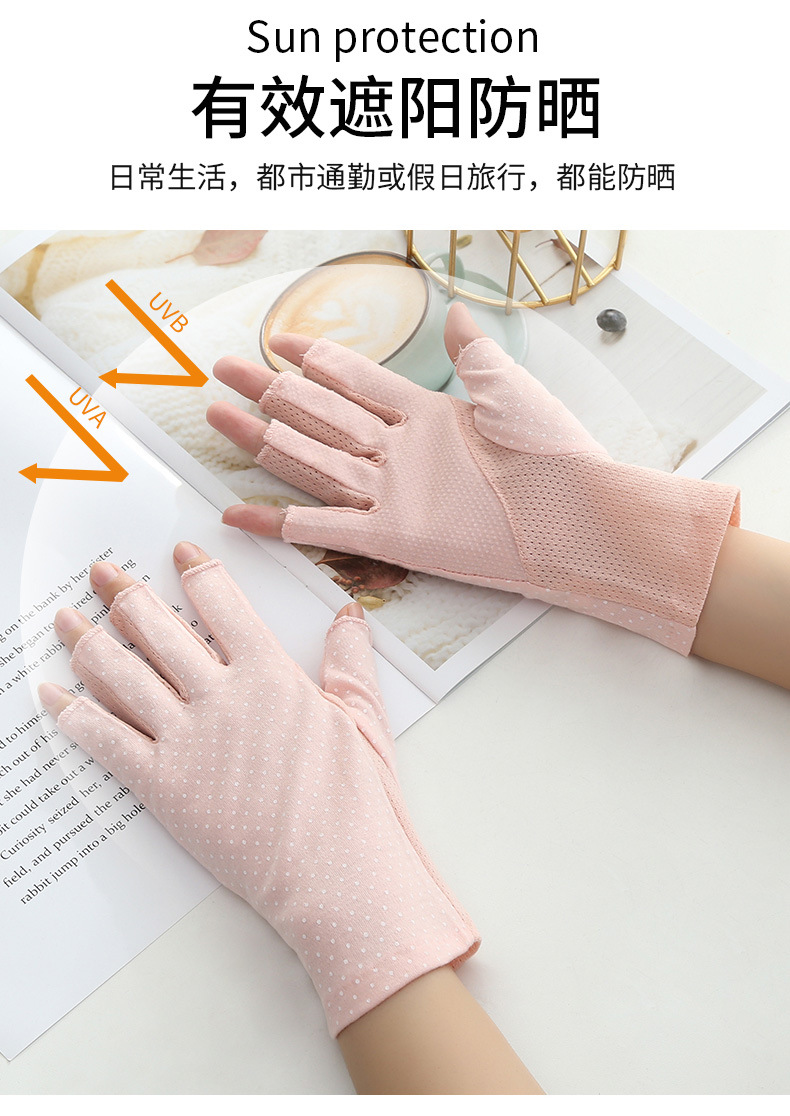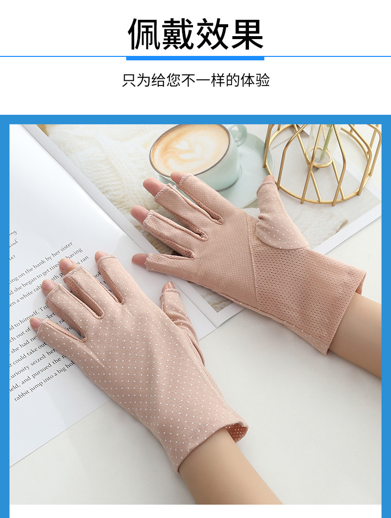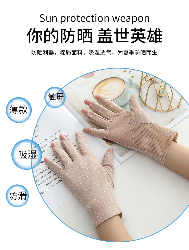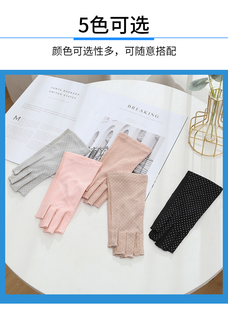 여름용 자외선 차단 장갑, 남성용 및 여성용 얇은 운전용 자외선 차단 장갑, 물방울 무늬 미끄럼 방지 반 손가락 순면 장갑, 국경 간 대외 무역스토어 가기