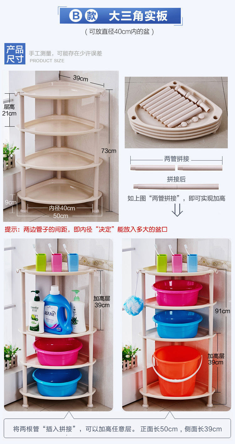 욕실 선반, 욕실 세면대 선반, 삼각형 플라스틱 선반, 주방 다층 수납 선반, 바닥형스토어 가기