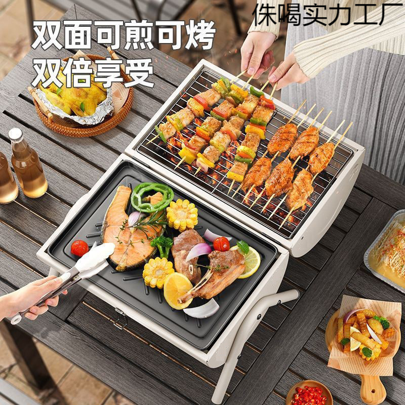 바베큐 그릴 바베큐 그릴 야외 휴대용 다기능 굴뚝 양면 가정용 스토브 캠핑 바베큐 숯