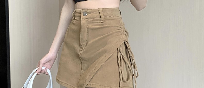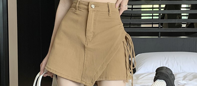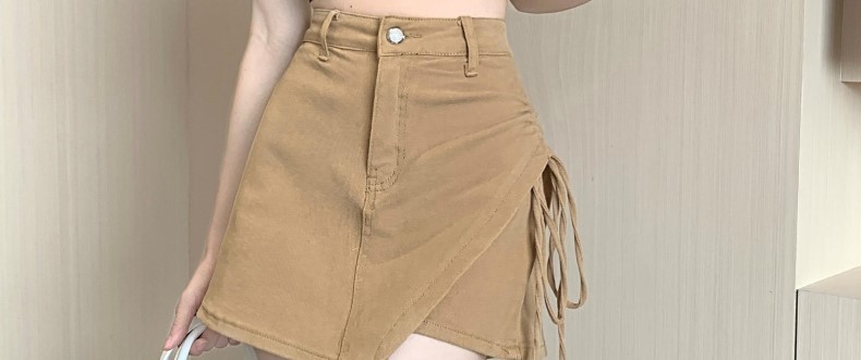 하이 웨이스트 불규칙 데님 힙 스커트 2025 여름 신작 드로스트링 슬리밍 a 라인 여성 반바지 틈새 스커트스토어 가기
