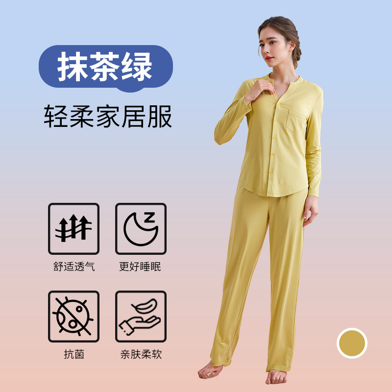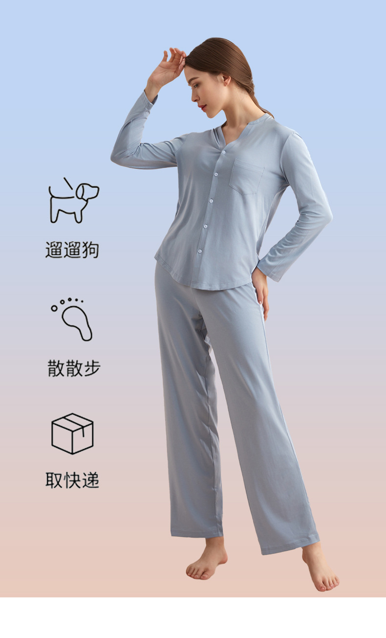 봄, 가을 여성용 항균 긴팔 긴바지 고급 얇은 가디건 홈웨어 세트, 외출복으로도 착용 가능스토어 가기