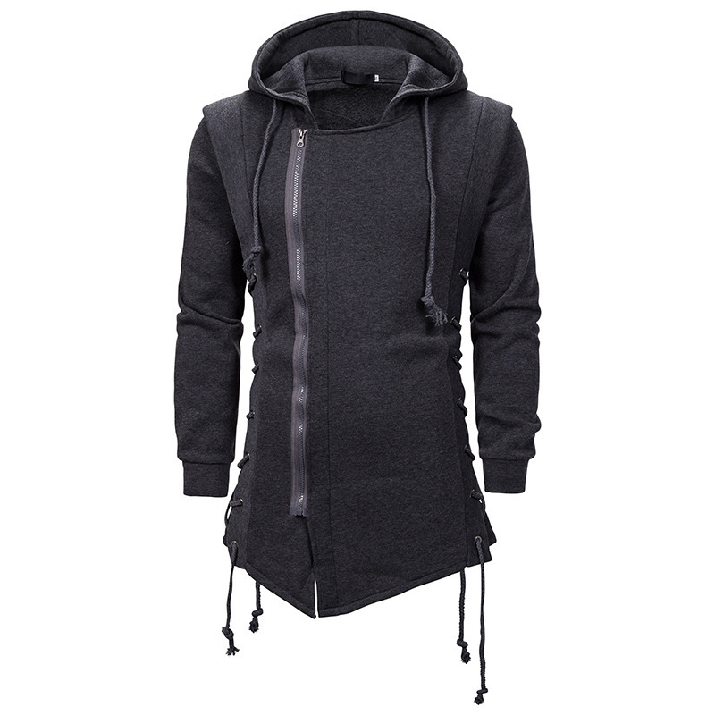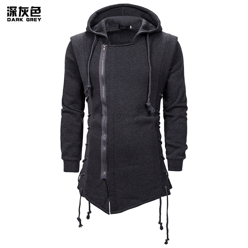 대외 무역 아마존 다크 후드 루즈 스웨트 유럽 사이즈 남성용 대각선 지퍼 솔리드 컬러 패션 스웨트 재킷