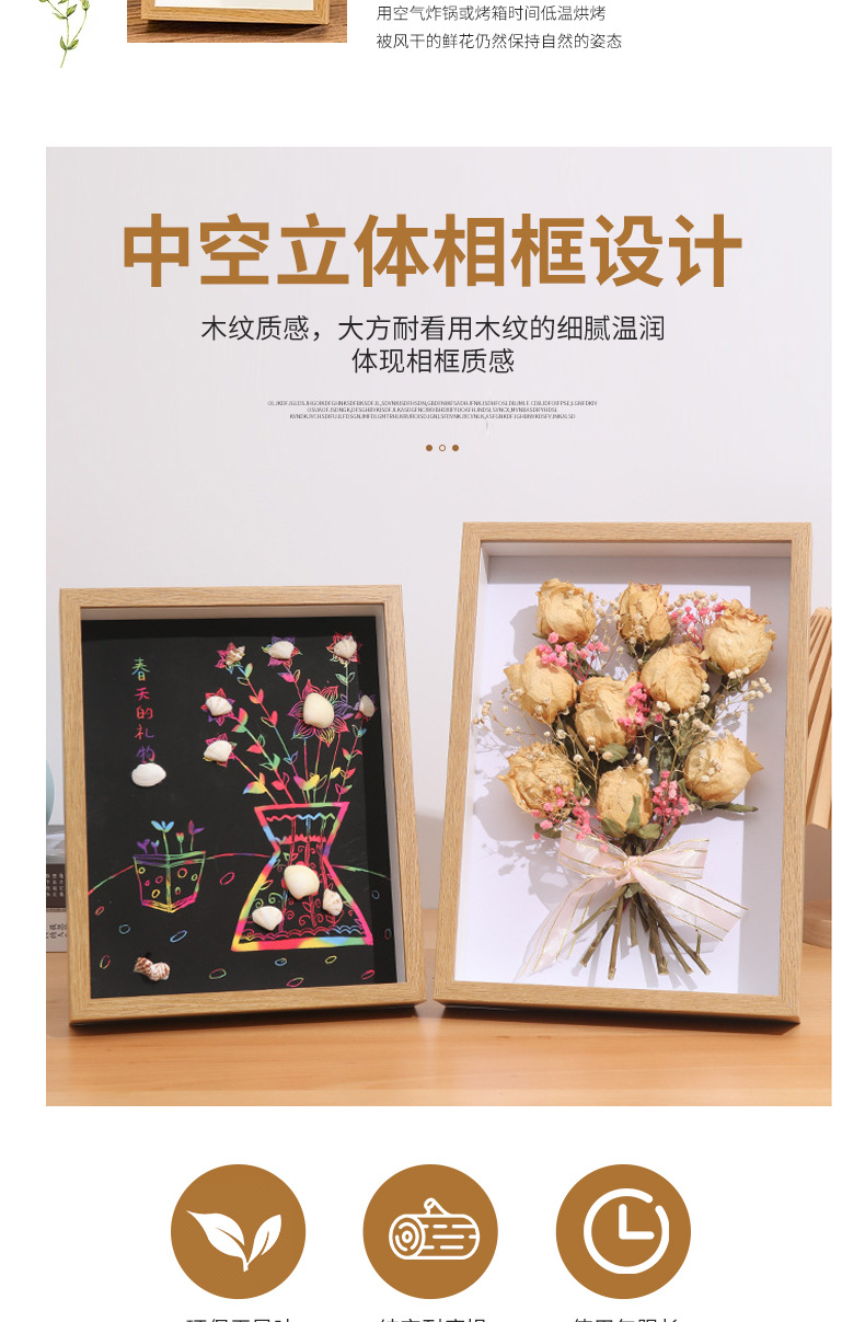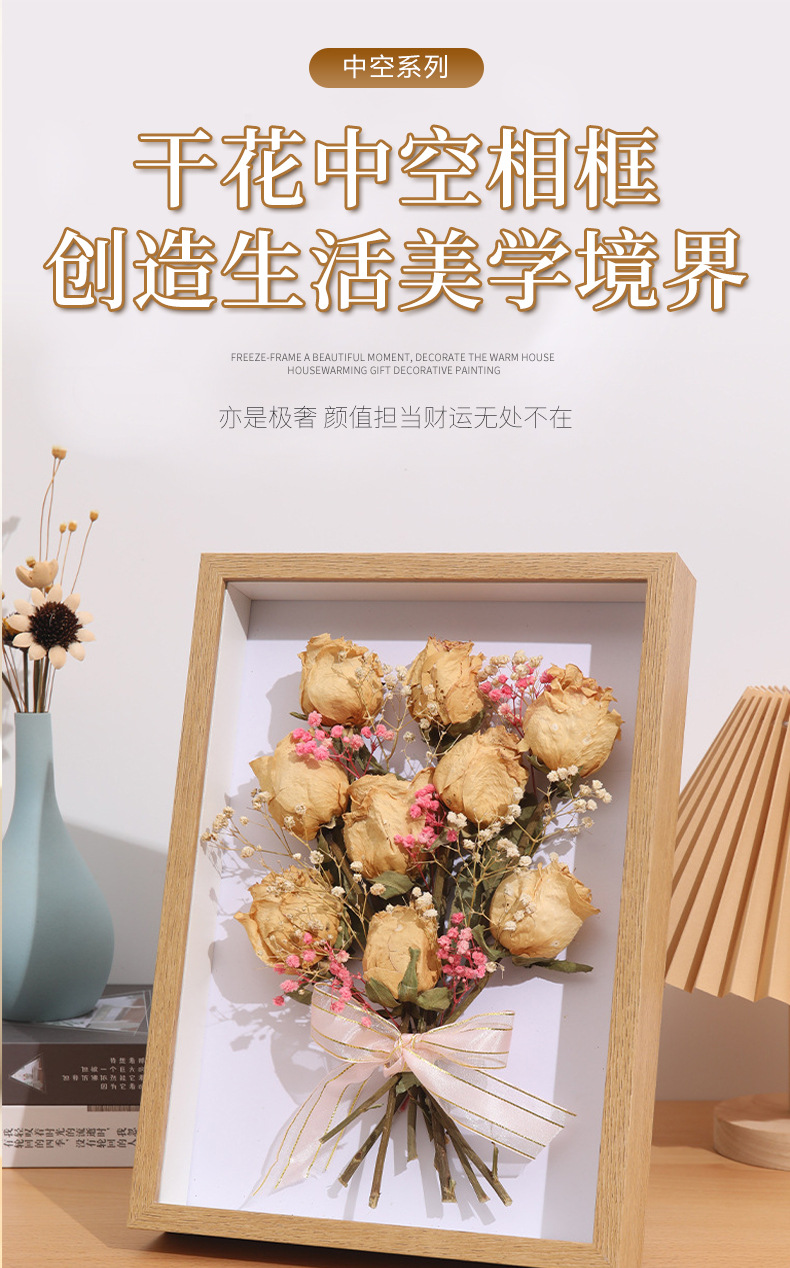 중공 나무 액자 DIY 드라이플라워 디스플레이 프레임 드라이 로즈 영구꽃 표본 프레임 액자 입체 장식