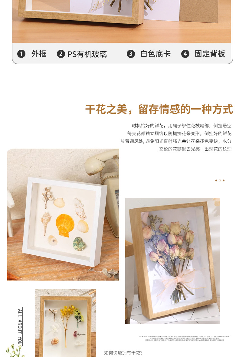 중공 나무 액자 DIY 드라이플라워 디스플레이 프레임 드라이 로즈 영구꽃 표본 프레임 액자 입체 장식스토어 가기
