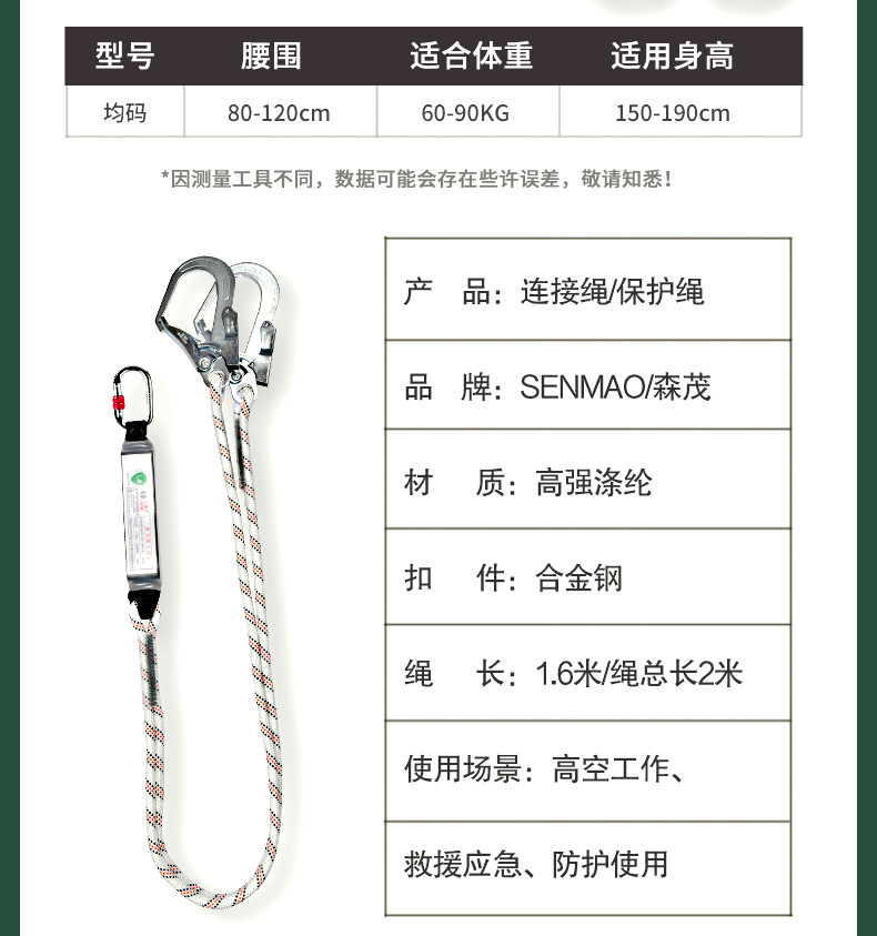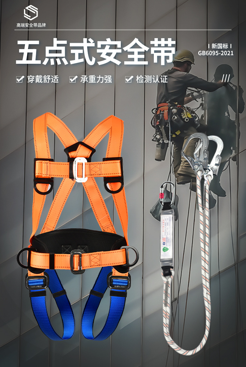 더블 대형 후크가 있는 고공 작업용 탄성 로프 낙하 방지 버퍼 백 로프 전기 기사 안전 벨트스토어 가기