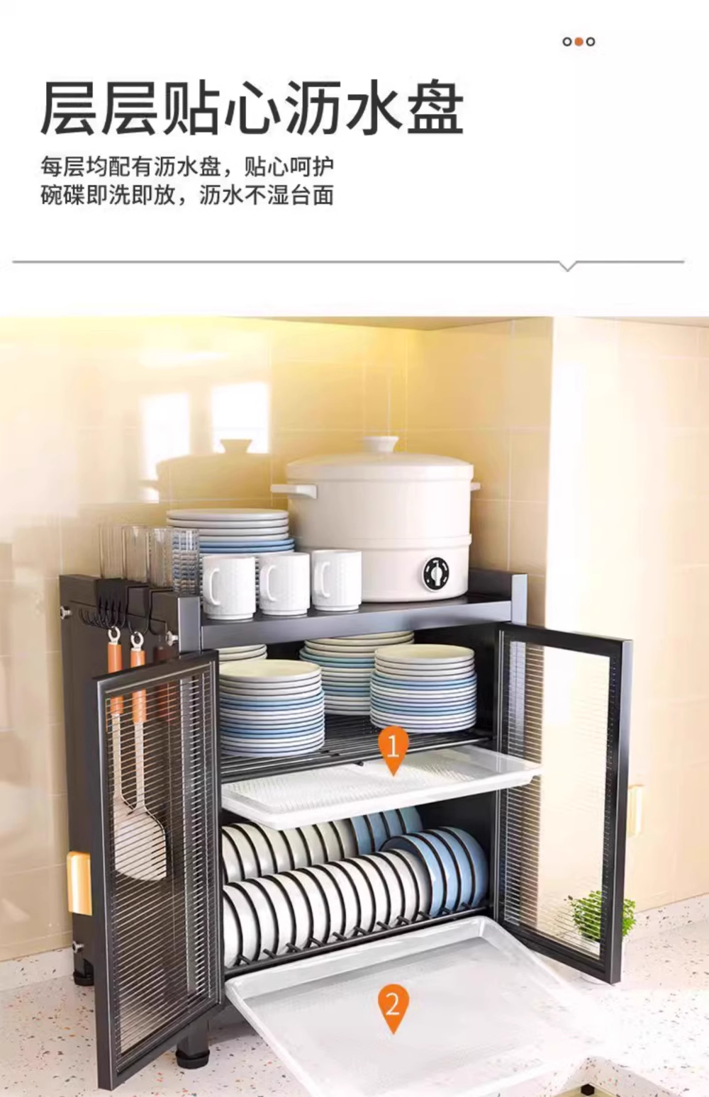 다기능 조리대 식기 배수구, 방진 접시, 접시, 젓가락, 찬장, 주방 수납 선반, 다층 가정용 수납 상자