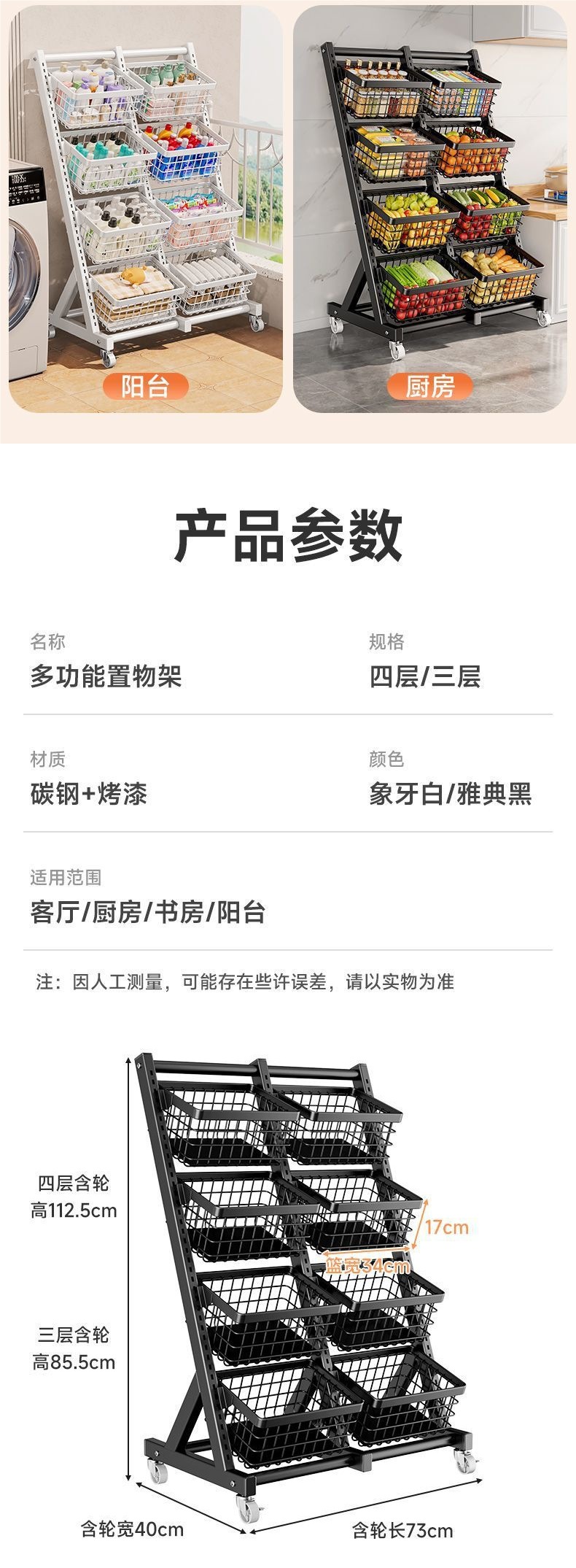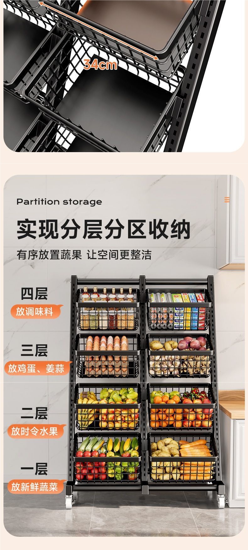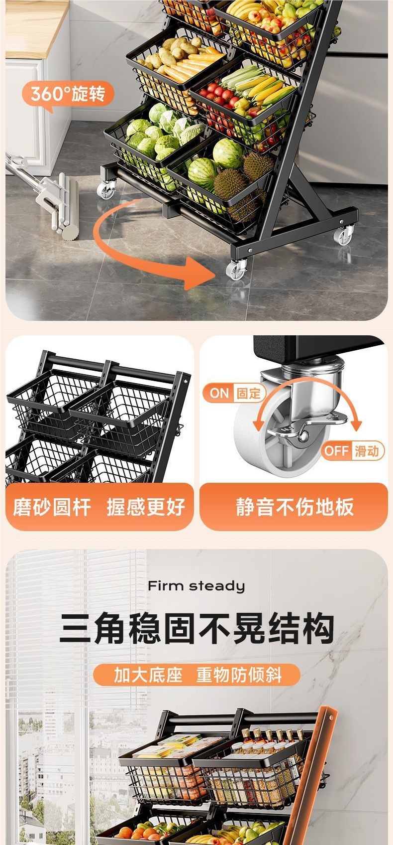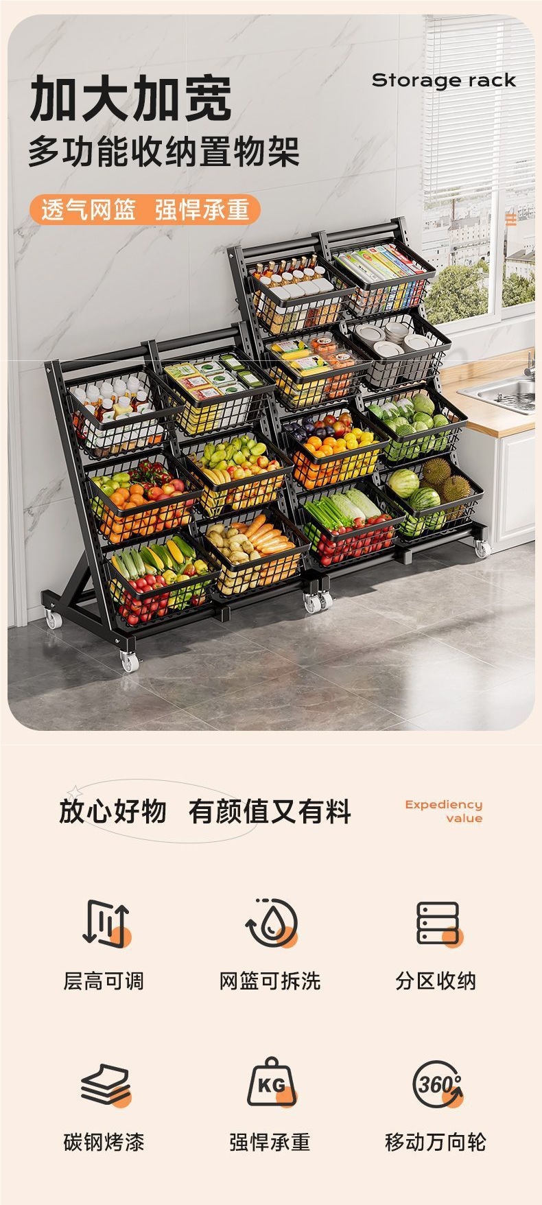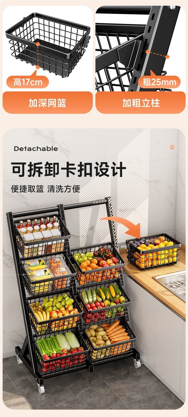 주방 야채 바구니 보관 랙 과일 및 야채 보관을위한 다층 바닥에서 이동식 가정용 다기능 트롤리