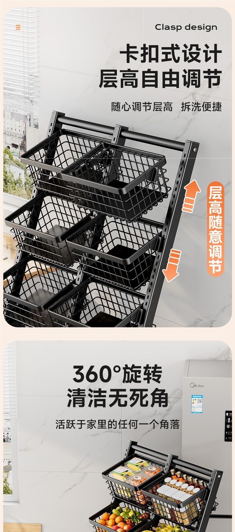 주방 야채 바구니 보관 랙 과일 및 야채 보관을위한 다층 바닥에서 이동식 가정용 다기능 트롤리스토어 가기