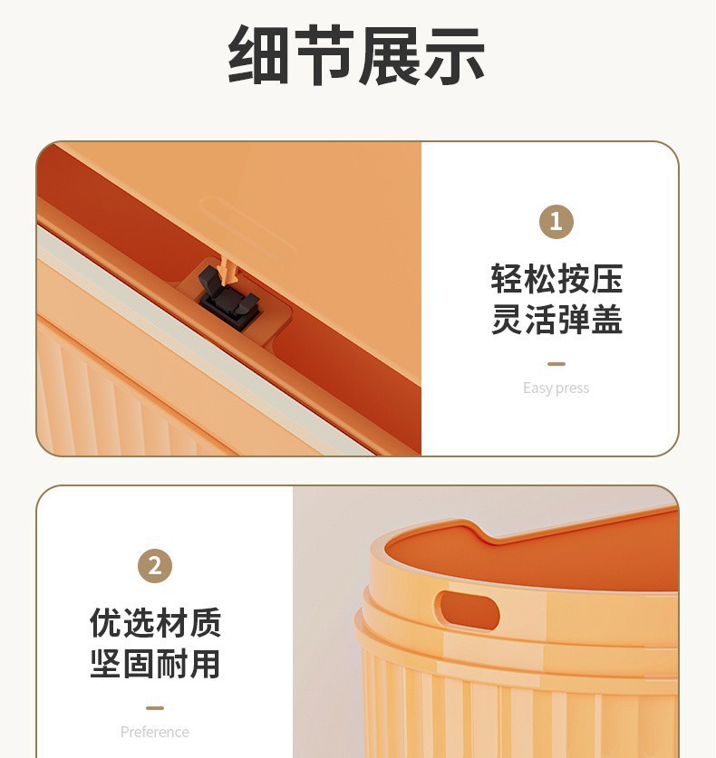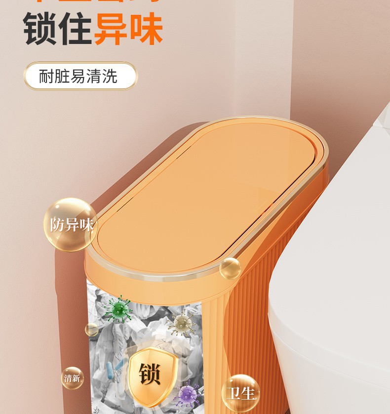 욕실용 쓰레기통, 가정용 고급형 가벼운 고급형 푸시형 뚜껑이 있는 대용량 화장실 좁은 틈새 배송스토어 가기